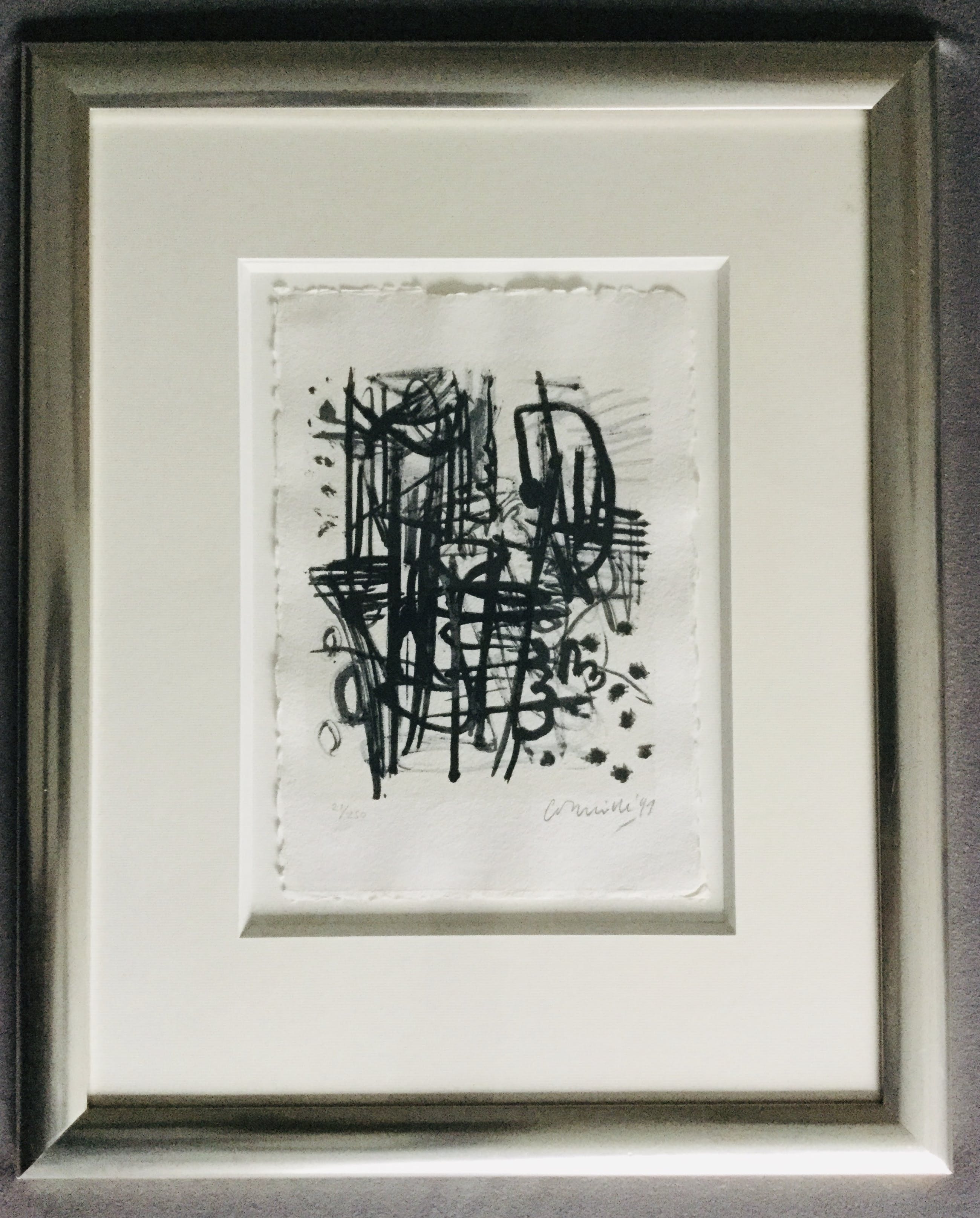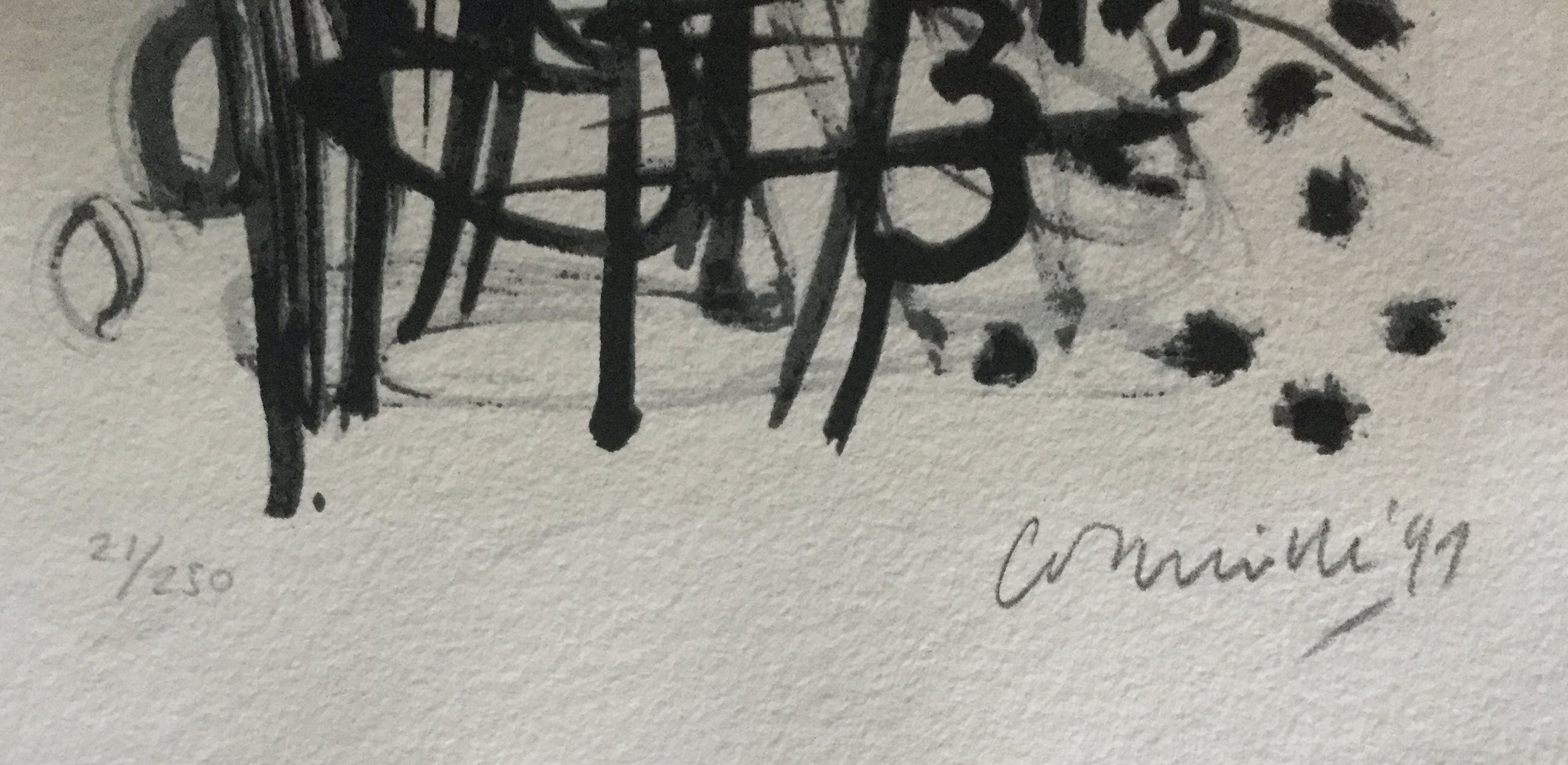 Mooie zeefdruk (op geschept papier) in zwart wit van Corneille.
