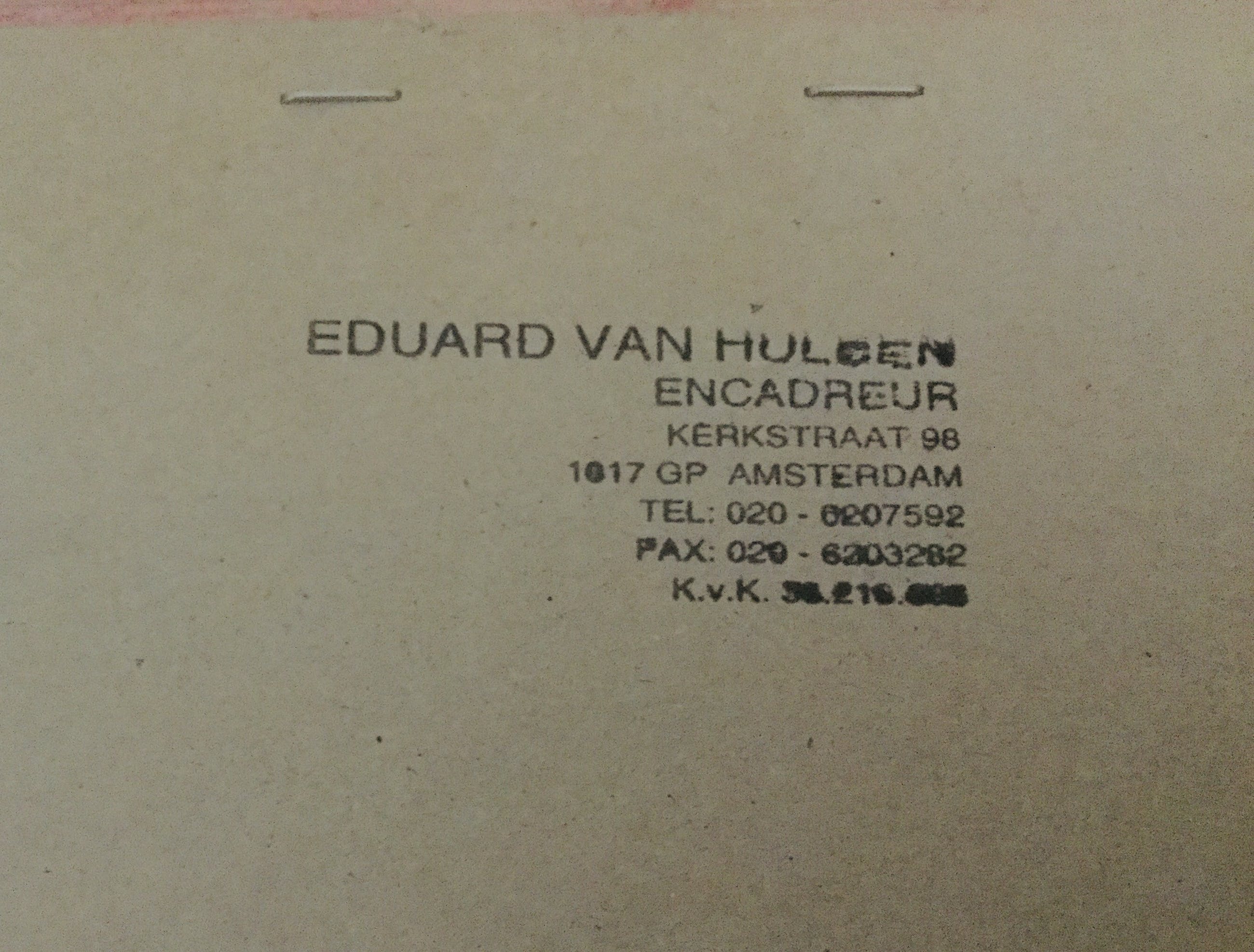 Aangeboden met lijst: Ja, zilveren lijst van 3,5 cm breed met verdiept passe partout professioneel ingelijst. Kan zo aan de muur. Lichte gebruikersschade zie foto.