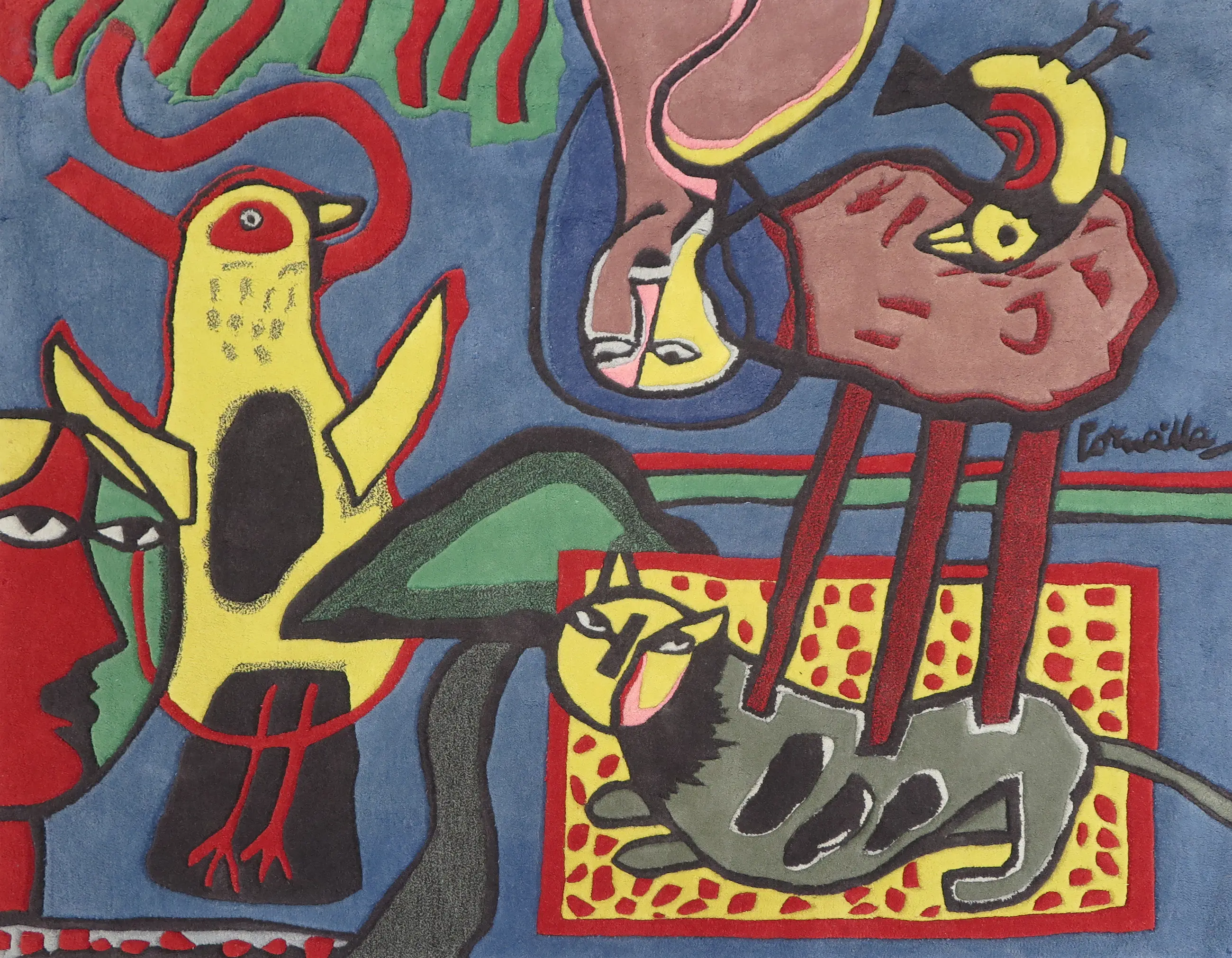 Groot vloerkleed van zuiver scheerwol (uit Nieuw-Zeeland) en met de hand vervaardigd in India. In gelimiteerde oplage van 100 exemplaren.
