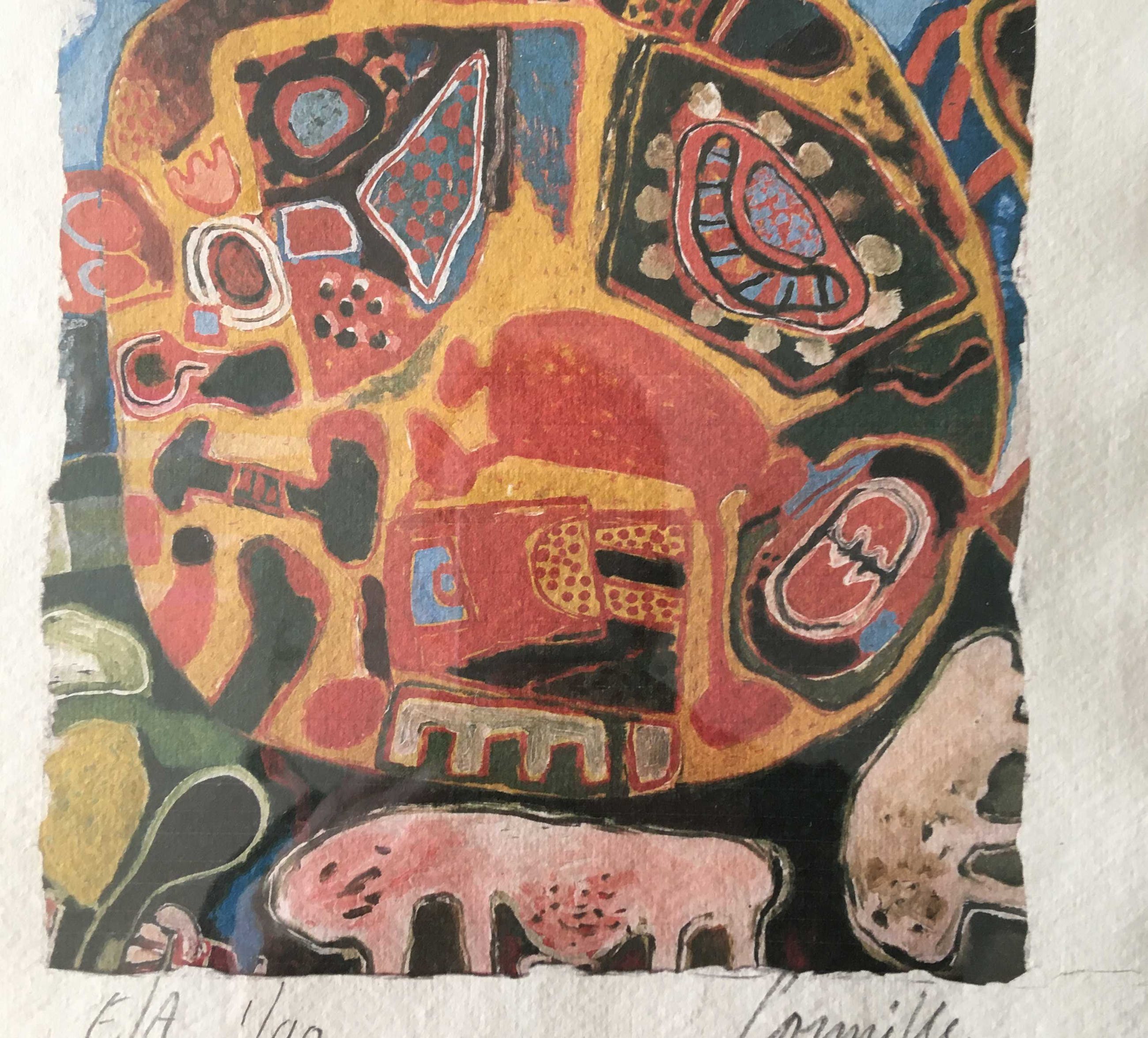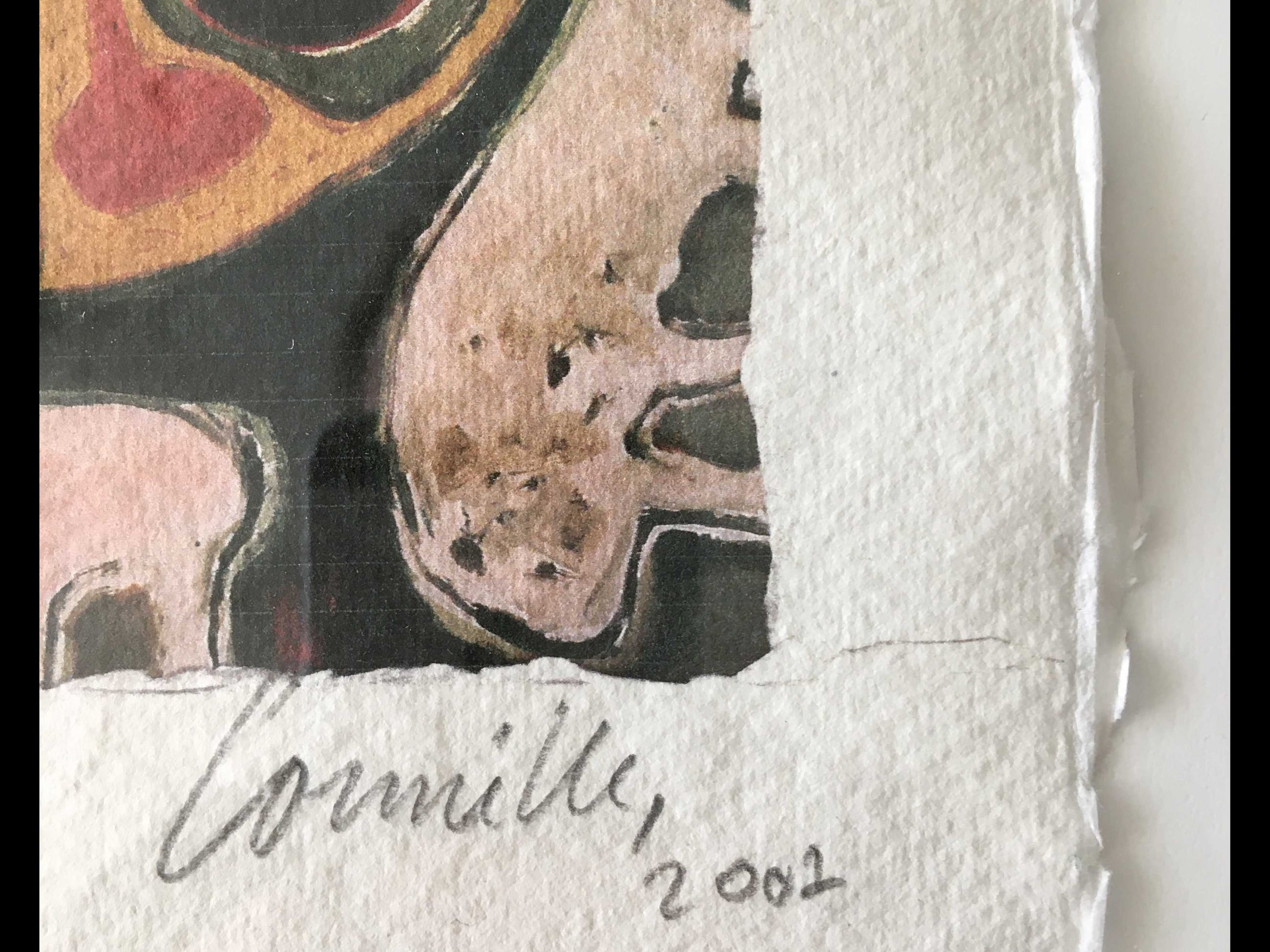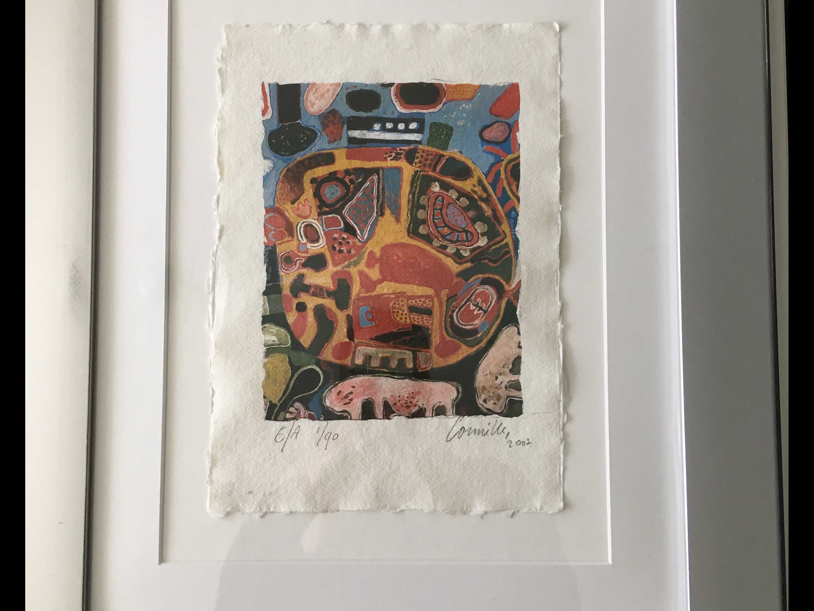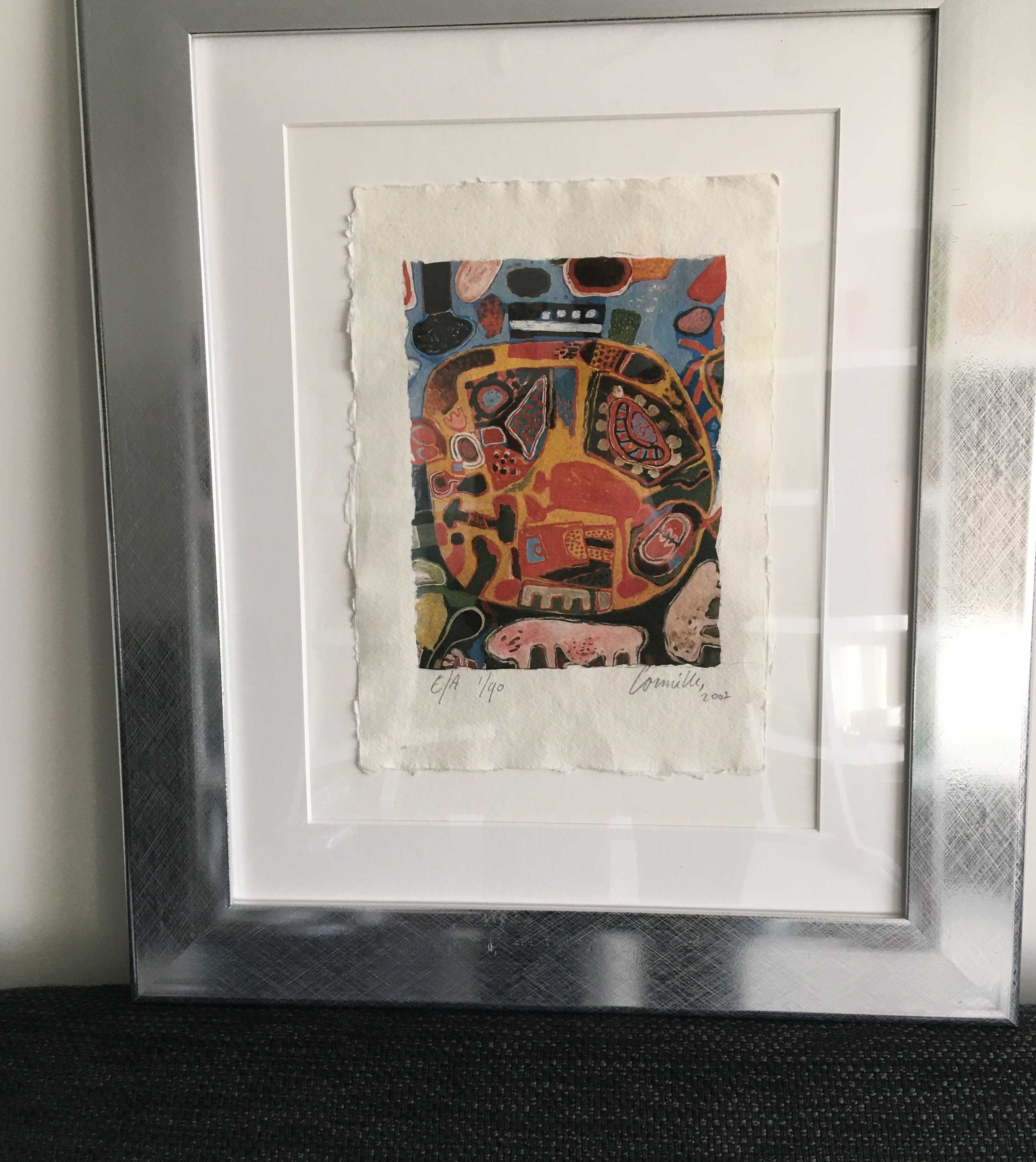 Bijzonder kleurrijke zeefdruk in kleinere oplage uit 2002. Hand genummerd en gesigneerd in potlood door de meester. Dit werk komt extra mooi uit door de fraaie manier van inlijsten, wat een extra effect geeft. Het werk is zeer gedetailleerd en kan zo aan een passende muur.