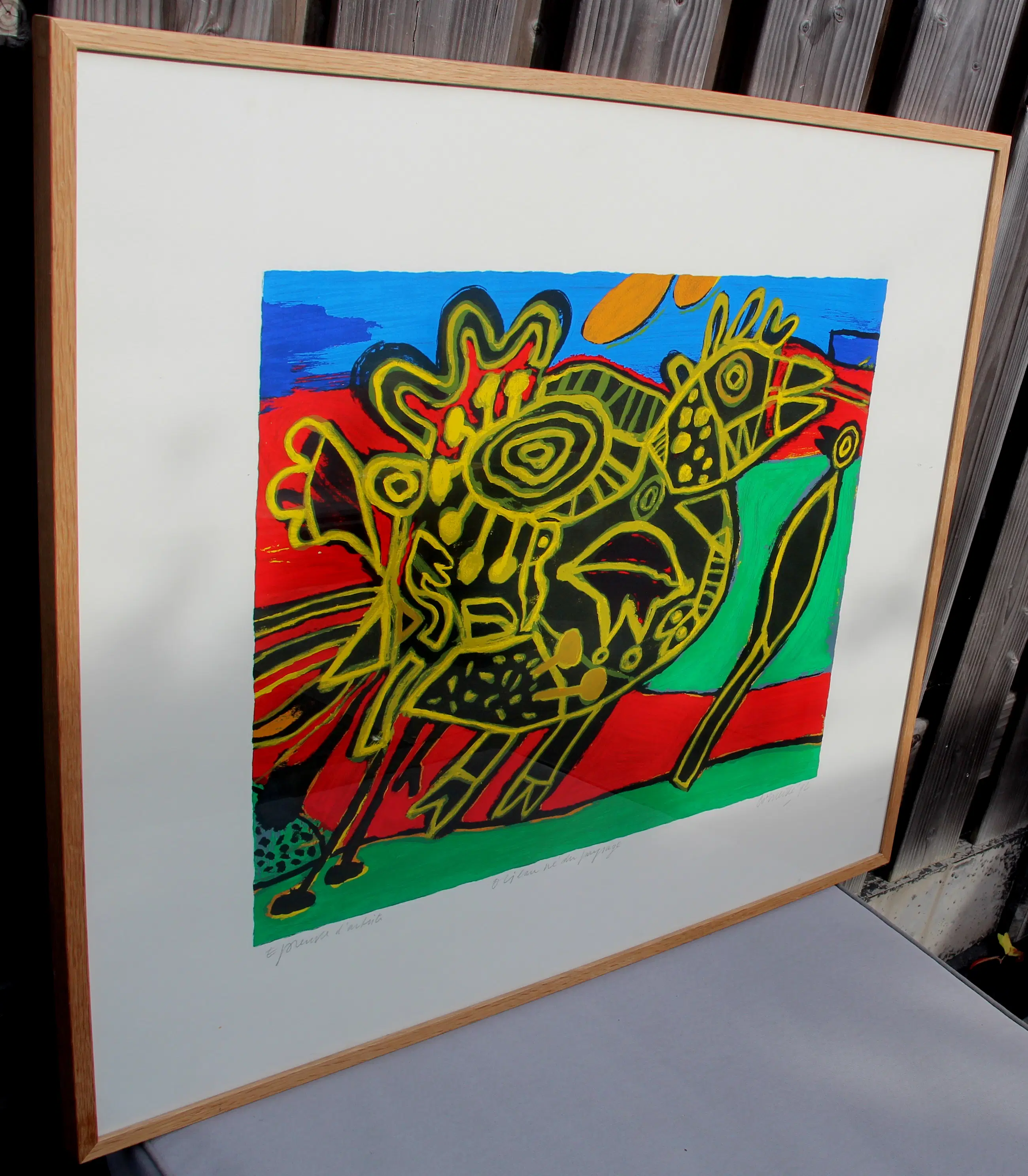 Corneille - Ingelijste zeefdruk: Oiseau né du paysage - 1992