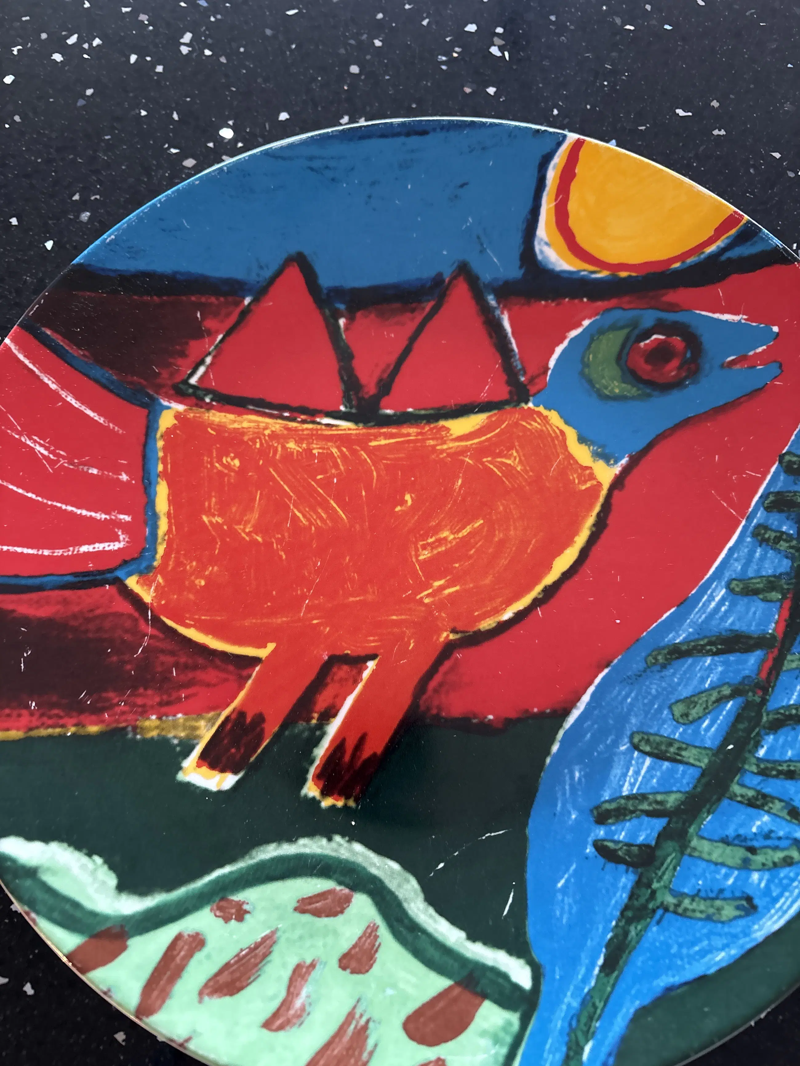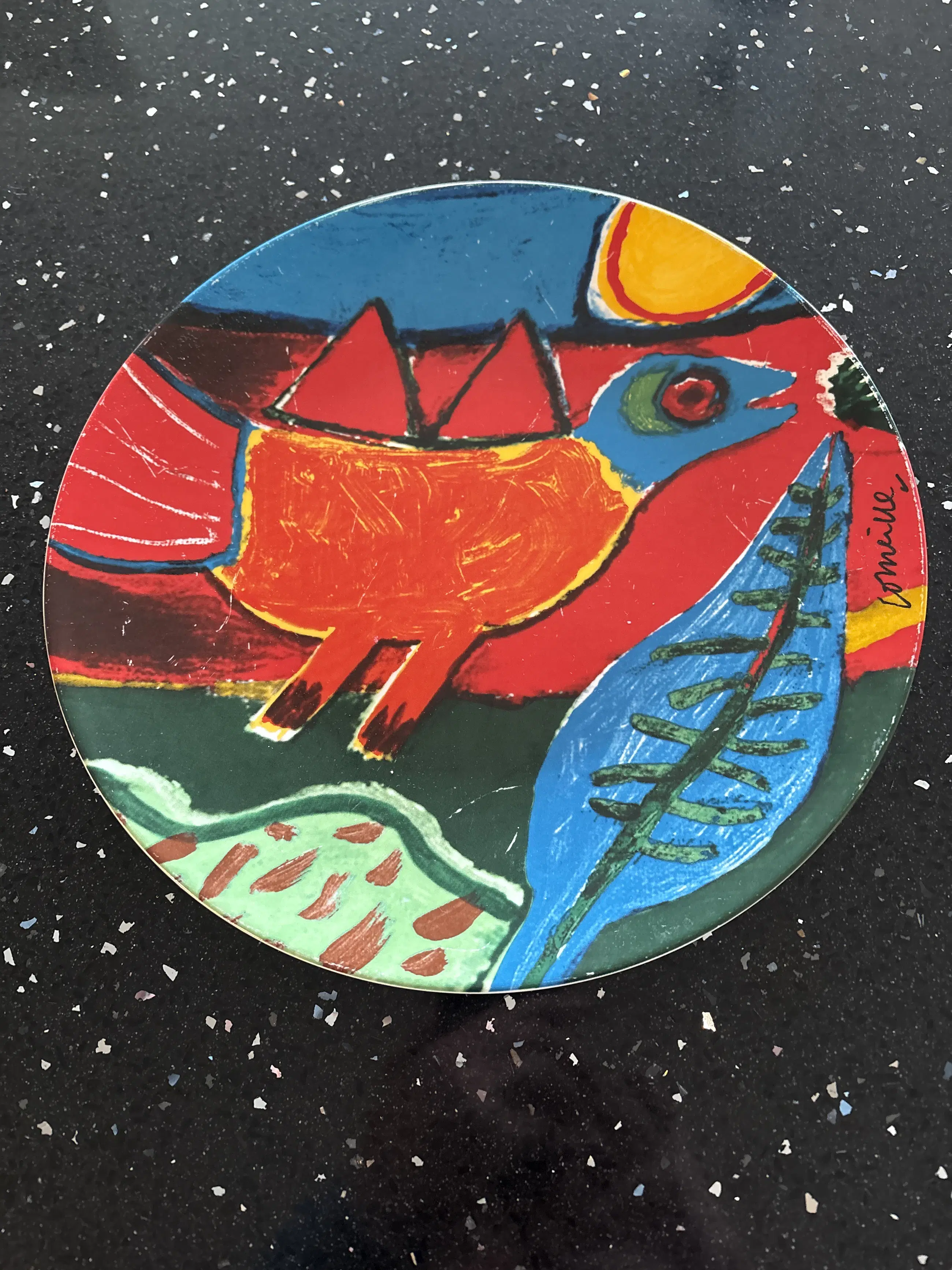 Fraaie kleurrijke schaal van Corneille. Zowel op de bovenkant als op de onderkant gesigneerd met Corneille.