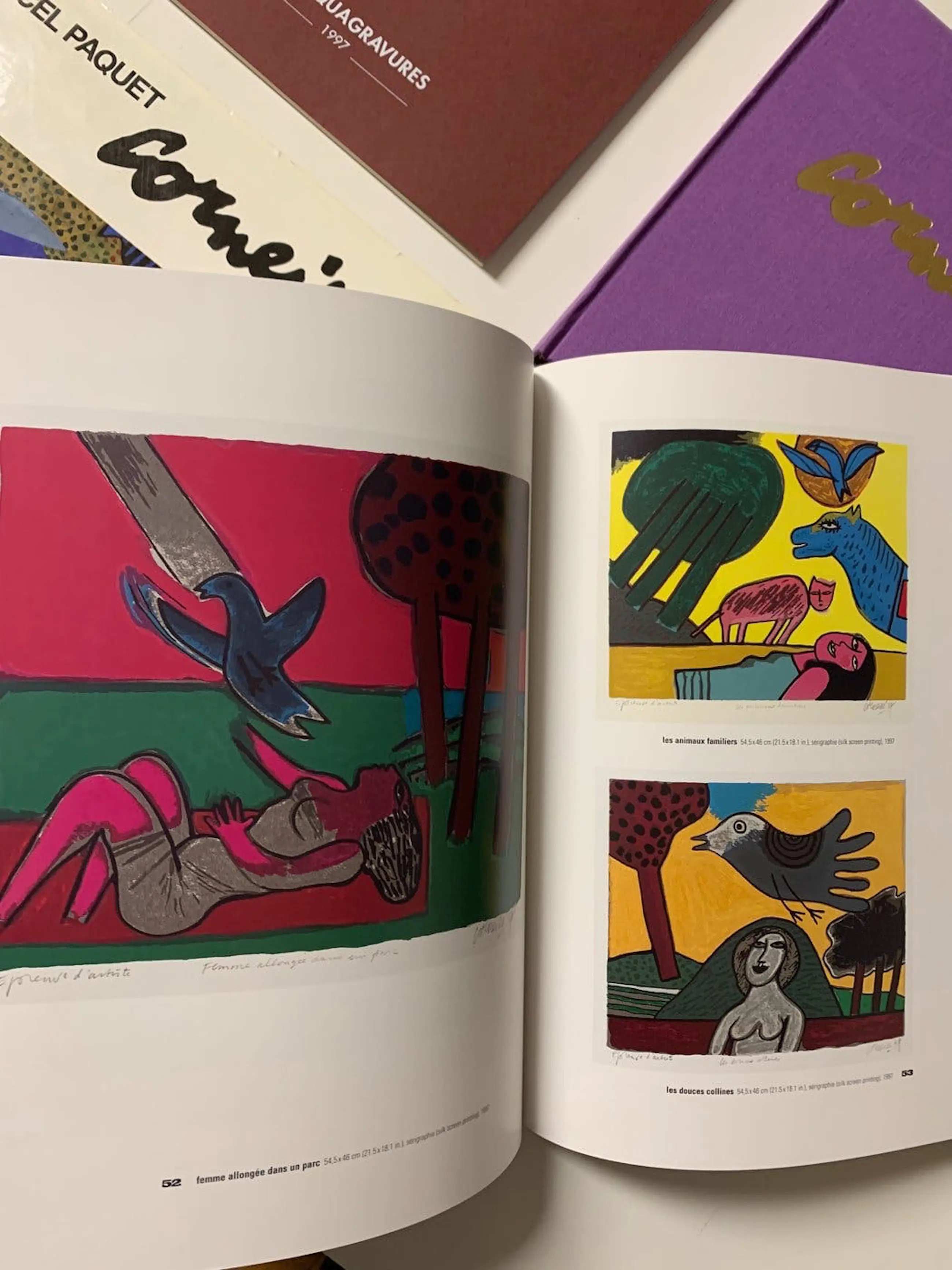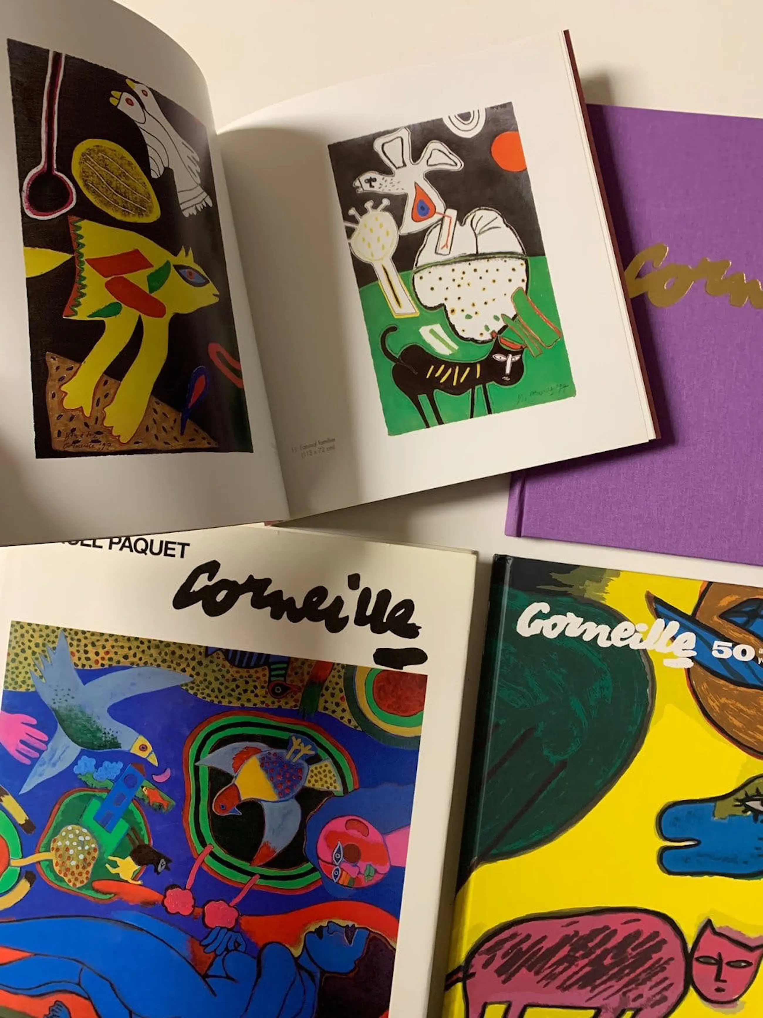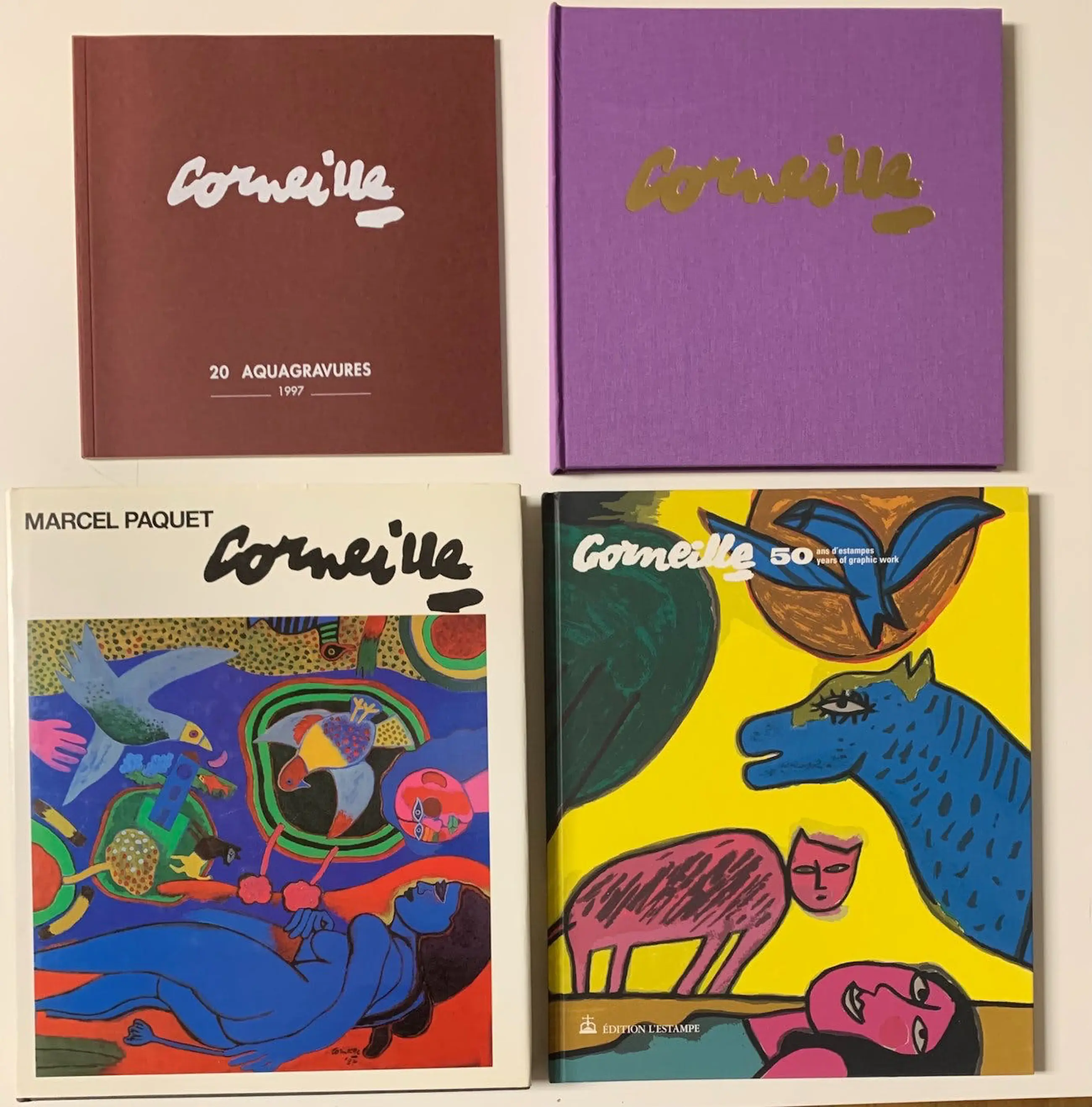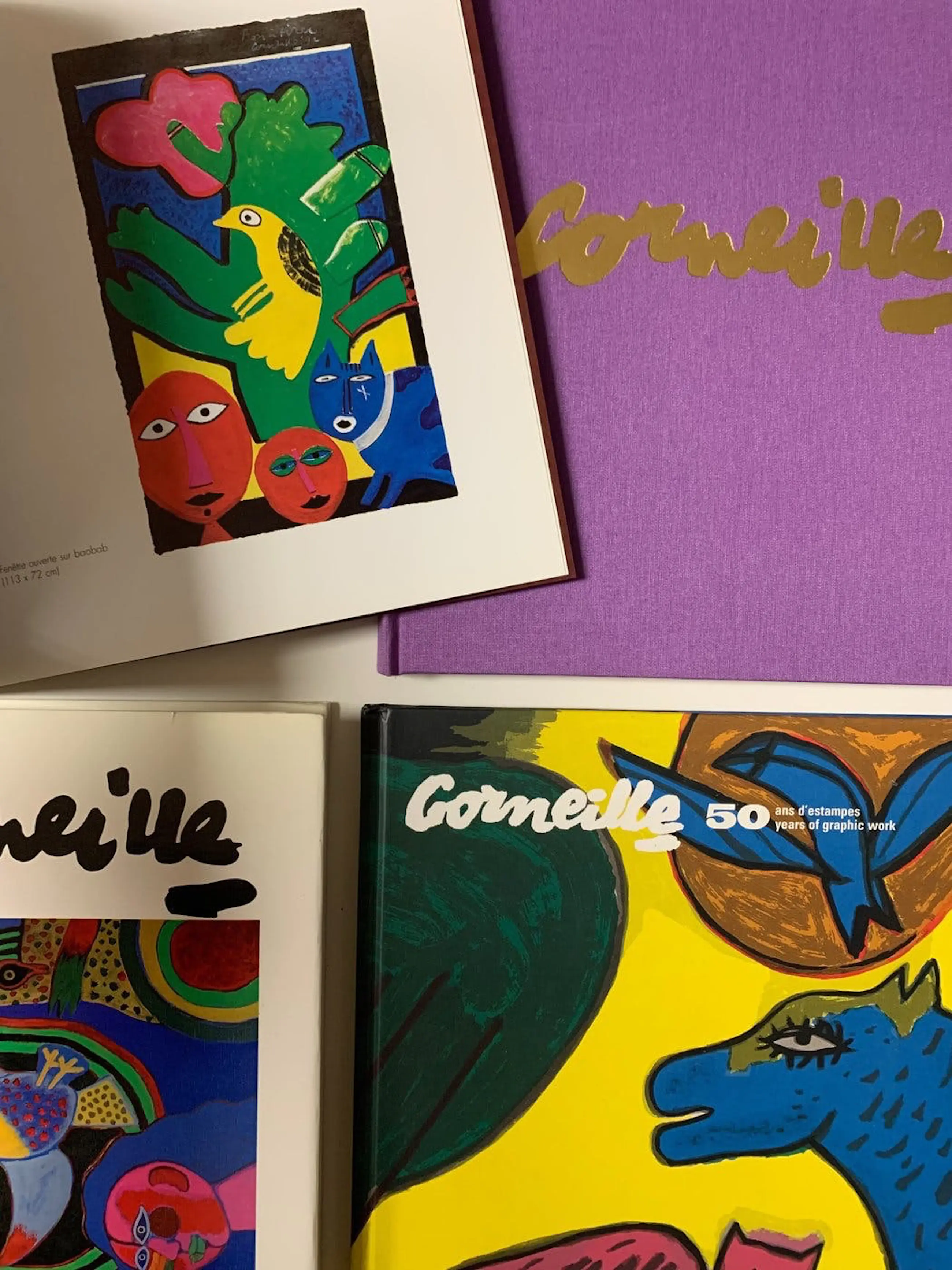 Set van 4 boeken over Guillaume Corneille die tegenwoordig moeilijk te vinden zijn, om het universum vol kleuren en vreugde van de schilder te betreden: