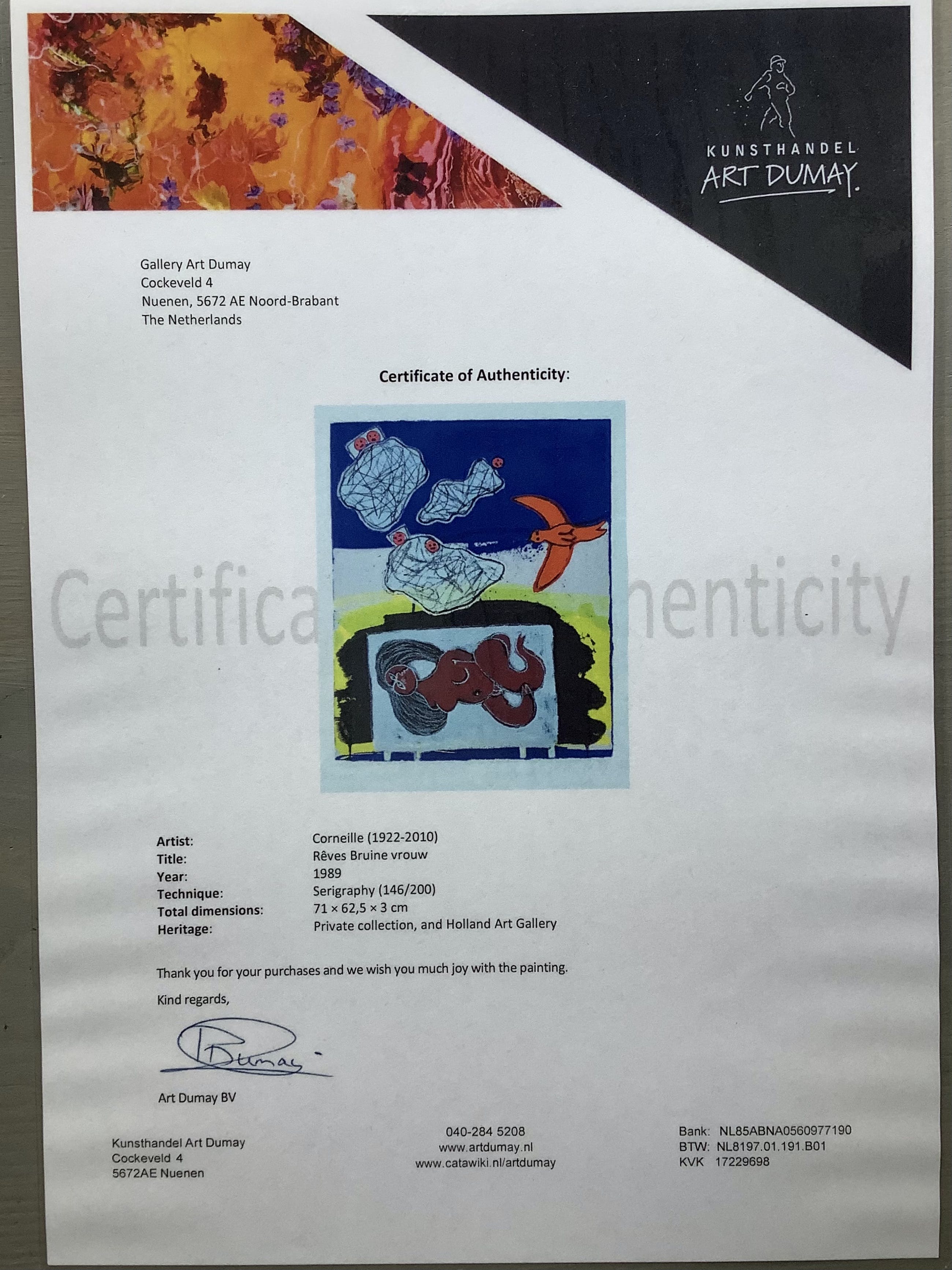 Is onderdeel van serie van 6 zeefdrukken gemaakt door Corneille in 1989. Zie Foto's uit naslagwerk van Corneille.