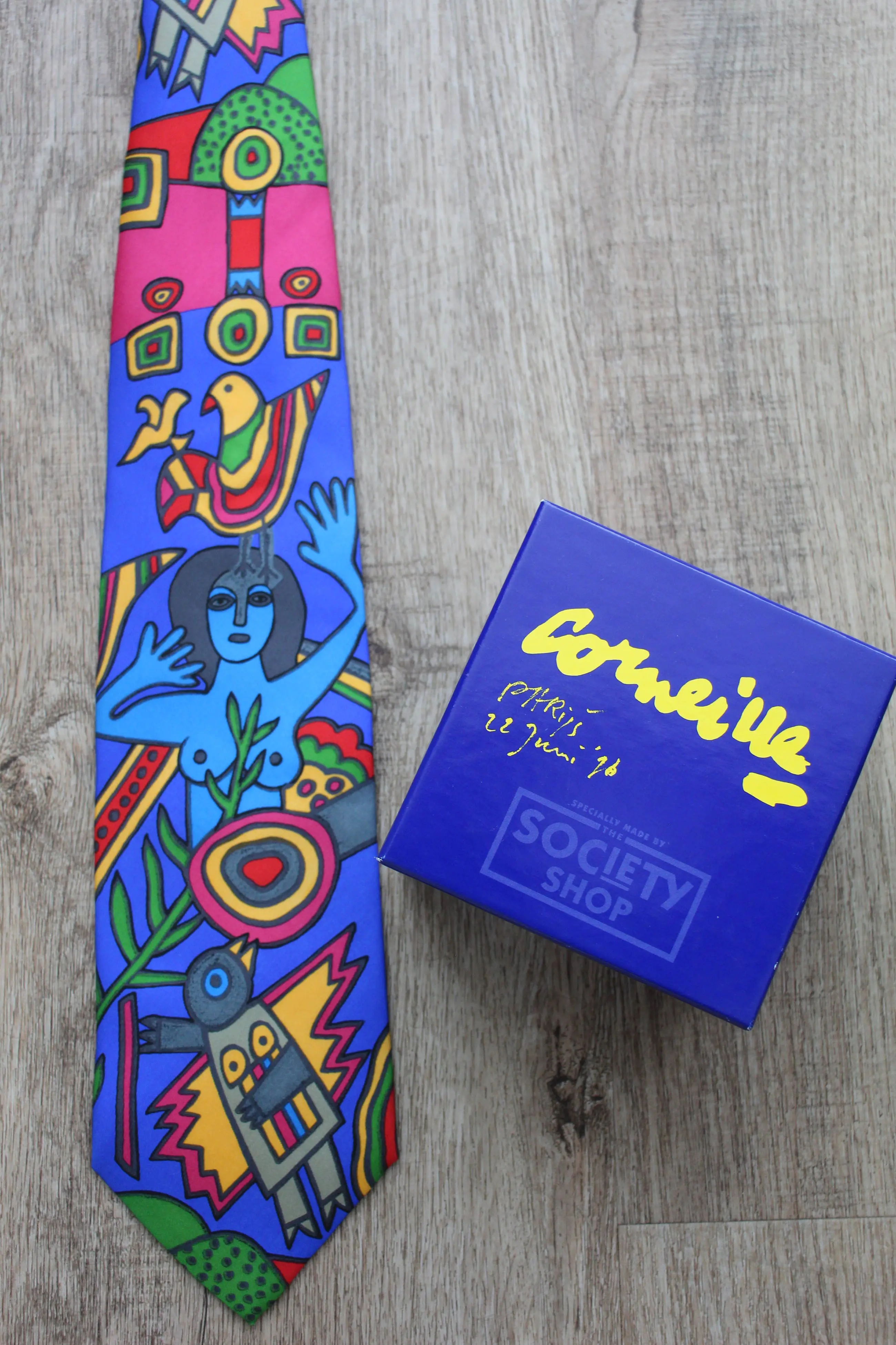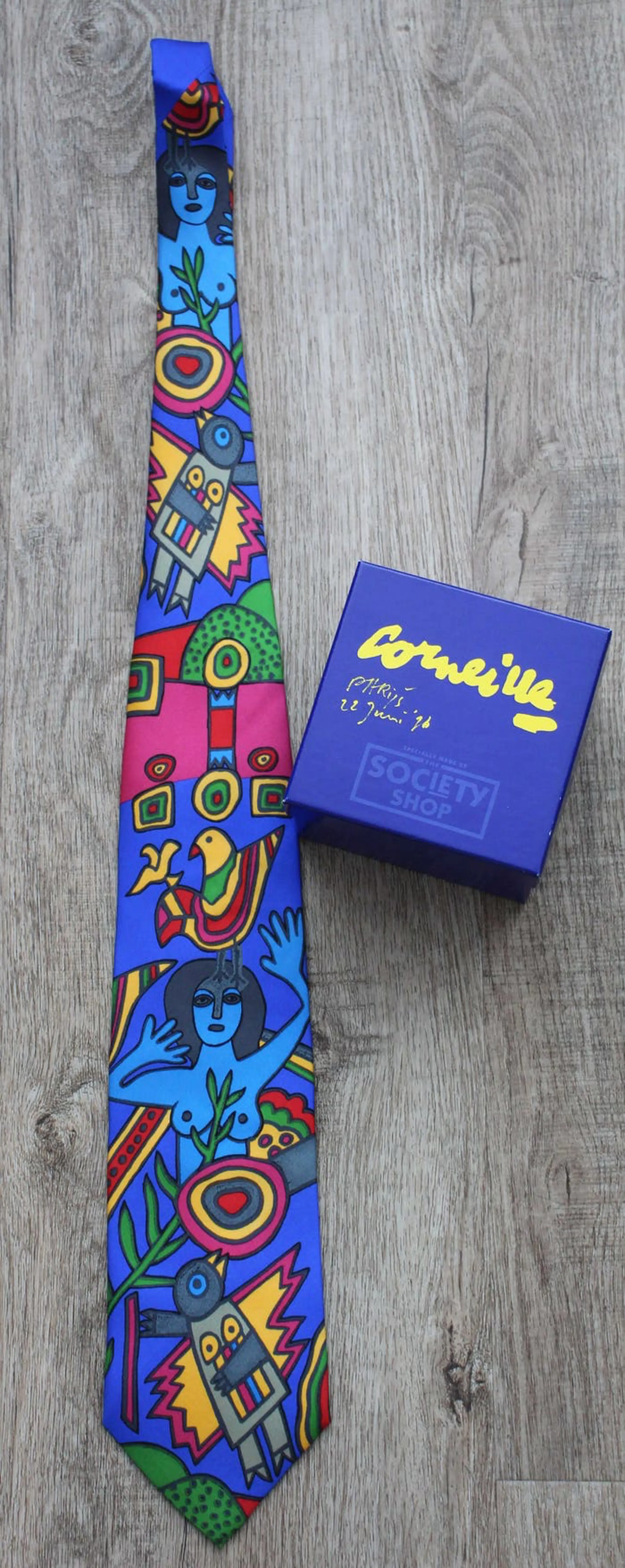 Gesigneerde stropdas van Corneille. Jaar: 1996(Parijs). Afmetingen stropdas: H140 cm x b8 cm. Dit is de gehele lengte van de stropdas. De breedte is bij het breedste stuk 10 cm.