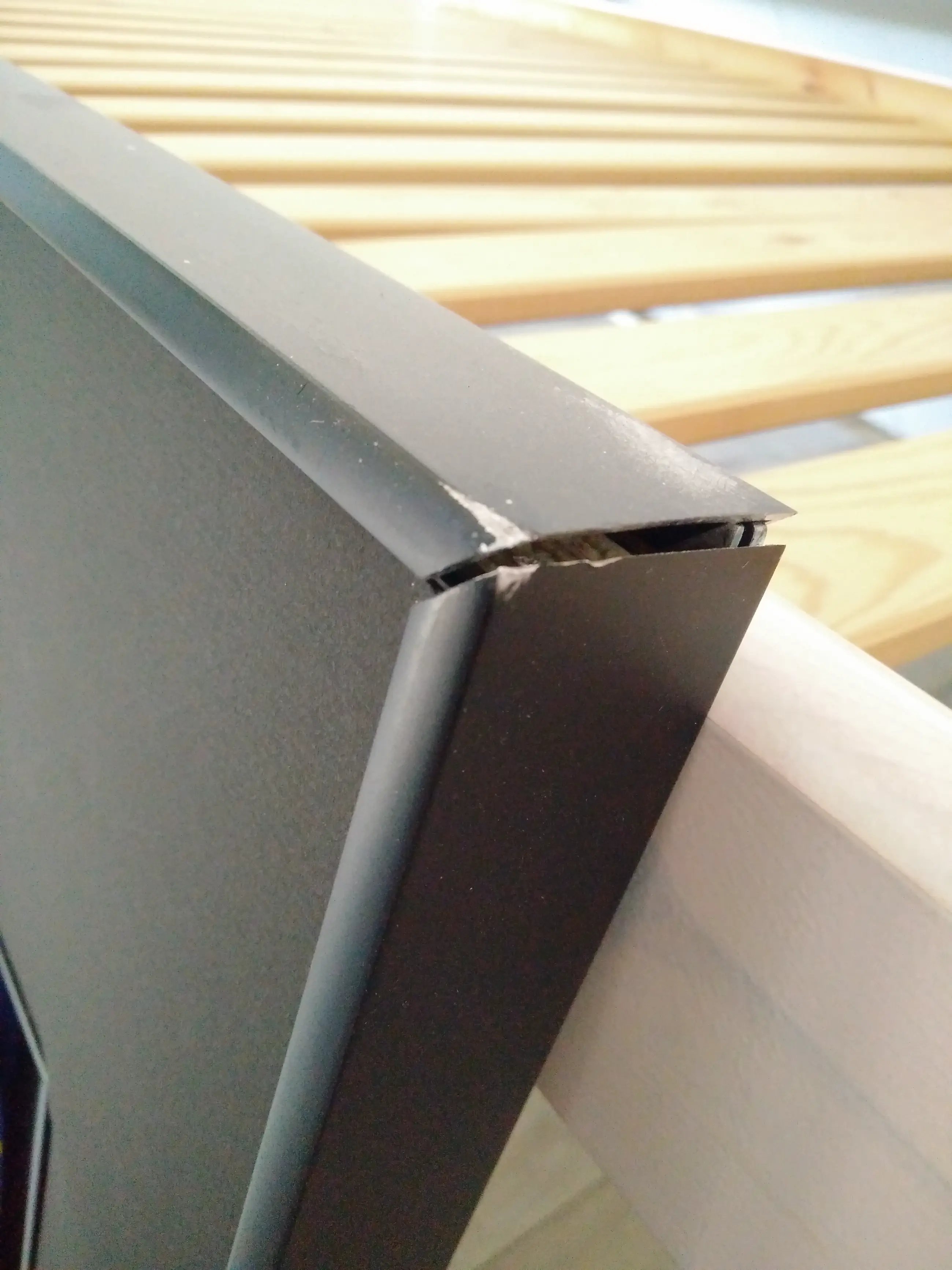 Het glas van de lijst is gesneuveld en de lijst is op 1 hoek beschadigd. Items zijn onbeschadigd.