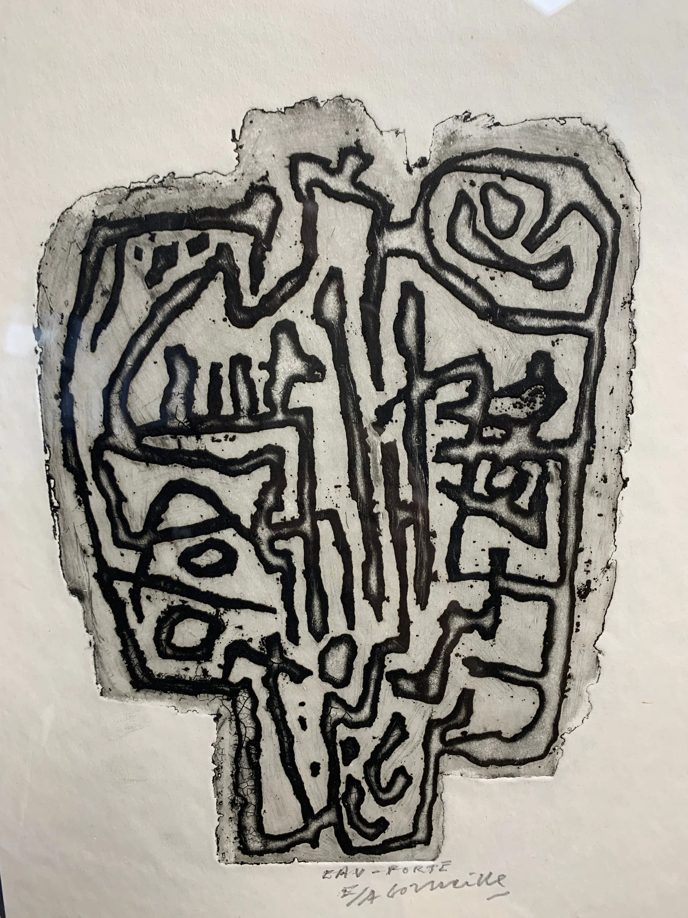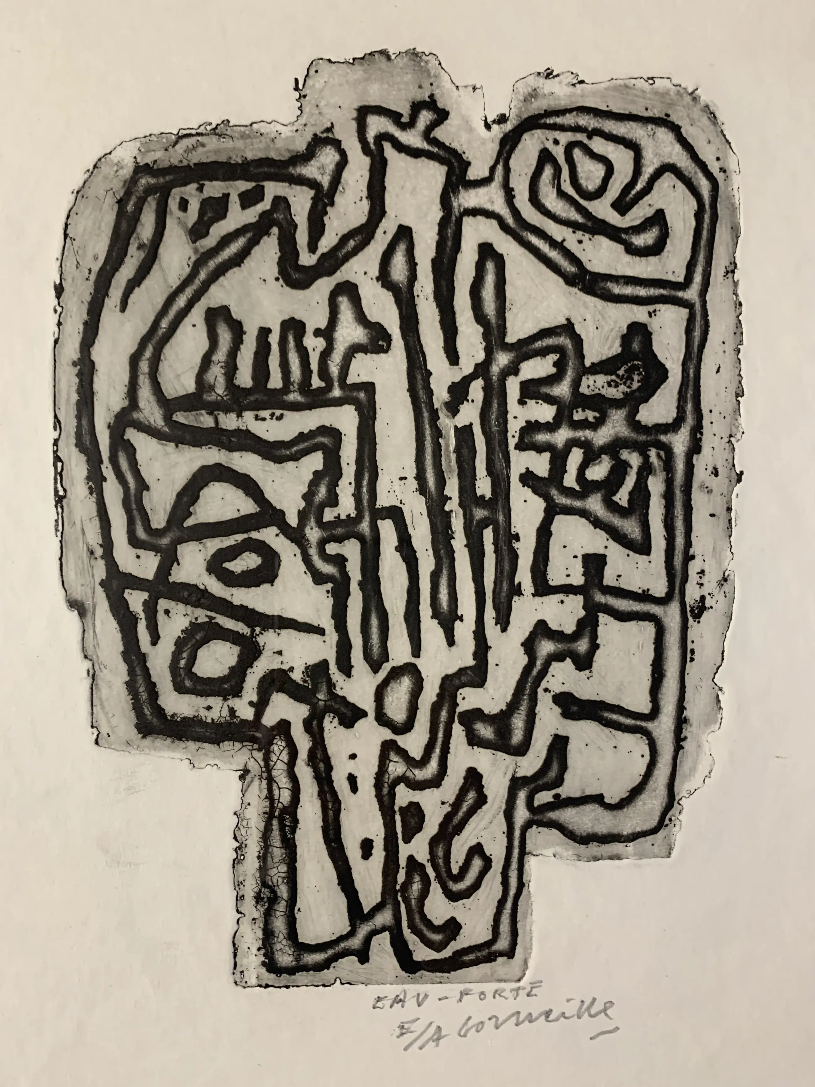 Deze verwijzing naar voorouderlijke en primitieve culturen blaast de abstractie van Cobra-kunstenaars nieuw leven in, een nieuwe bron van levende kunst. Guillaume Corneille was een van de stichtende leden van de groep, samen met Karel Appel, Asger Jorn, Dotremont, Constant, Joseph Noiret en Alechinsky.