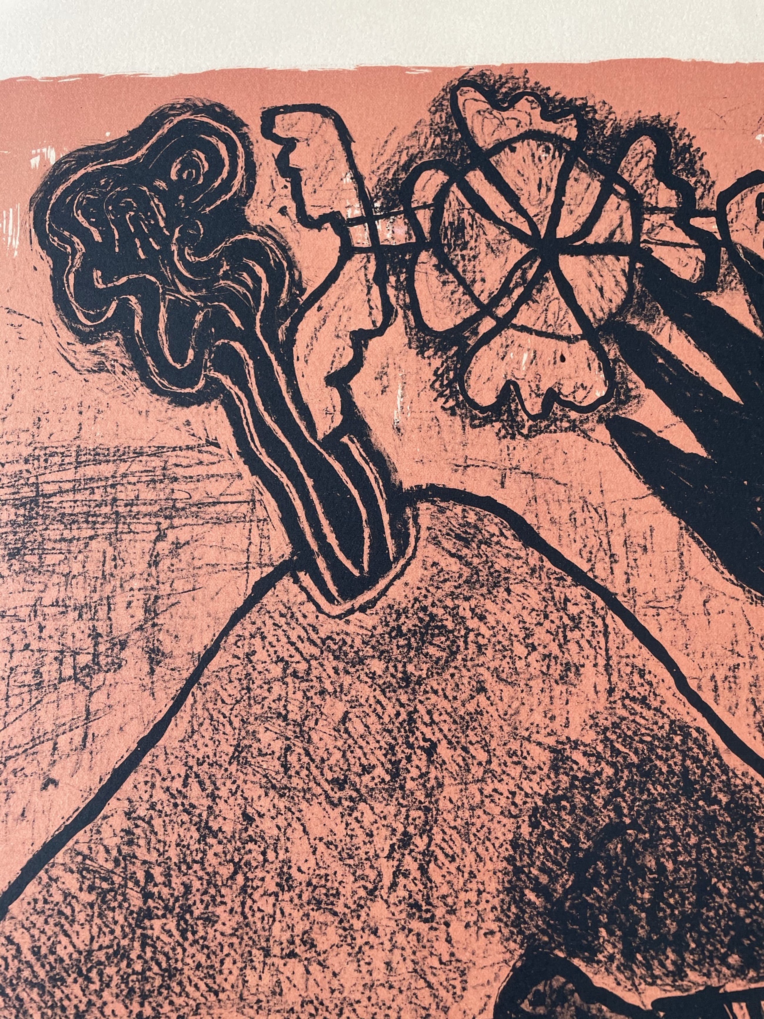 Grote Litho van Corneille uit 1972 getiteld "Terre Mexicane". Met de hand genummerd in potlood, nr. 188 van 190 en hand gesigneerd. Litho is nooit ingelijst geweest en in prima staat. Bijzonder groot formaat en mooie voorstelling in typerende kleurstelling.