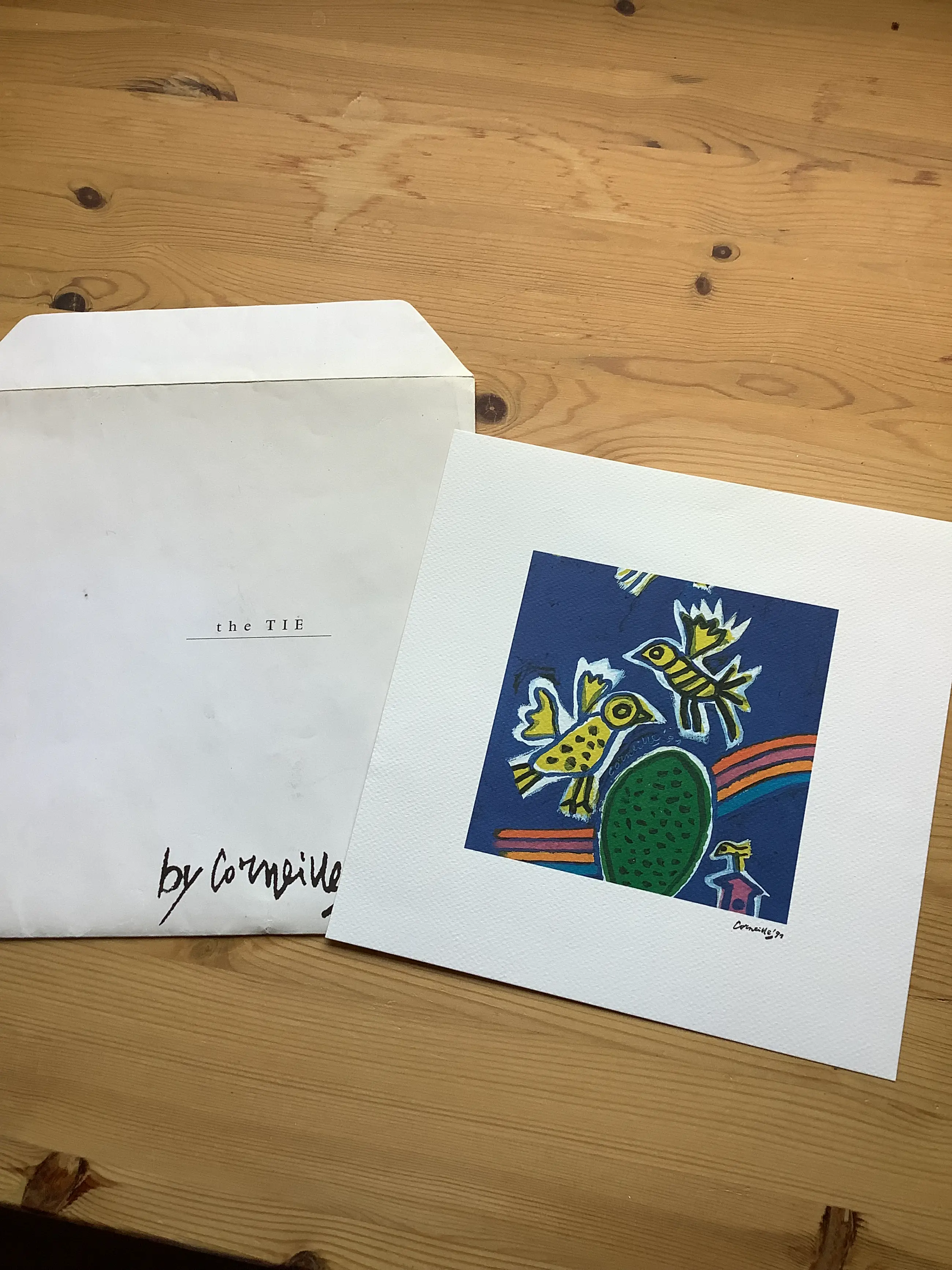 Leuke kleine zeefdruk van Corneillemet originele envelop Titel: the Tie 1991 Gesigneerd in druk
