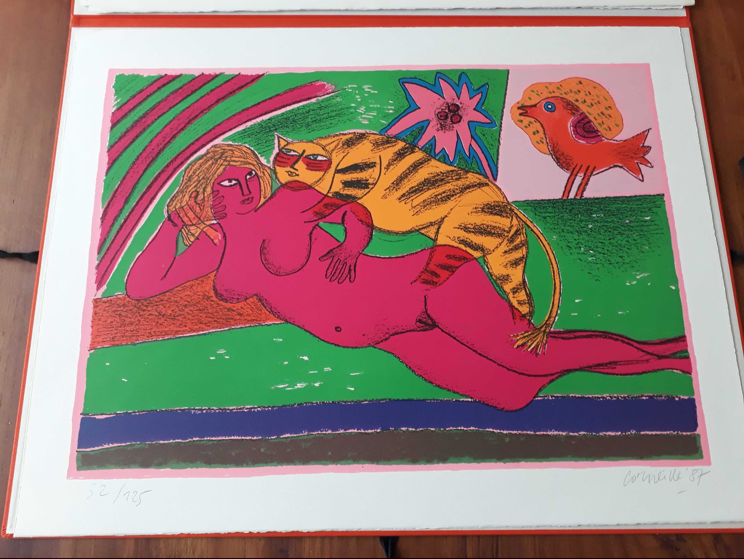 In nieuwstaat verkerende complete portofolio Tigres Amoureux uit 1987. Editie:Troisieme serie. Uitgave:Galerie Moderne-Silkeborg-Denemarken Oplagenummer:32/125 Bevat 4 prachtige zeefdrukken. Uiteraard potlood gesigneerd gedateerd genummerd. Absolute nieuwstaat. Werken zijn nooit ingelijst geweest.