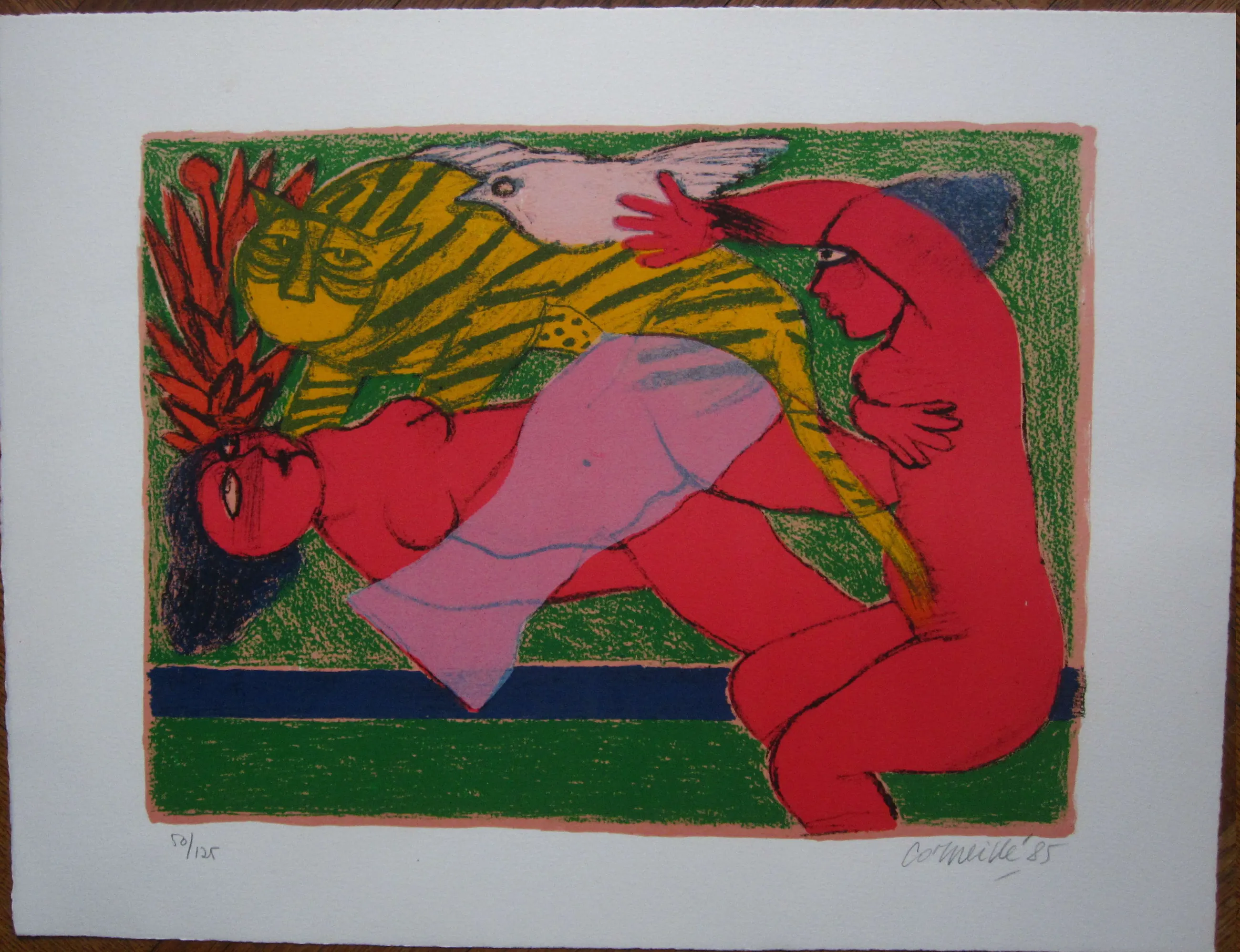 Corneille,Tigres Amoureux Zeefdruk beeldfomaat 28.5 X 38 cm.