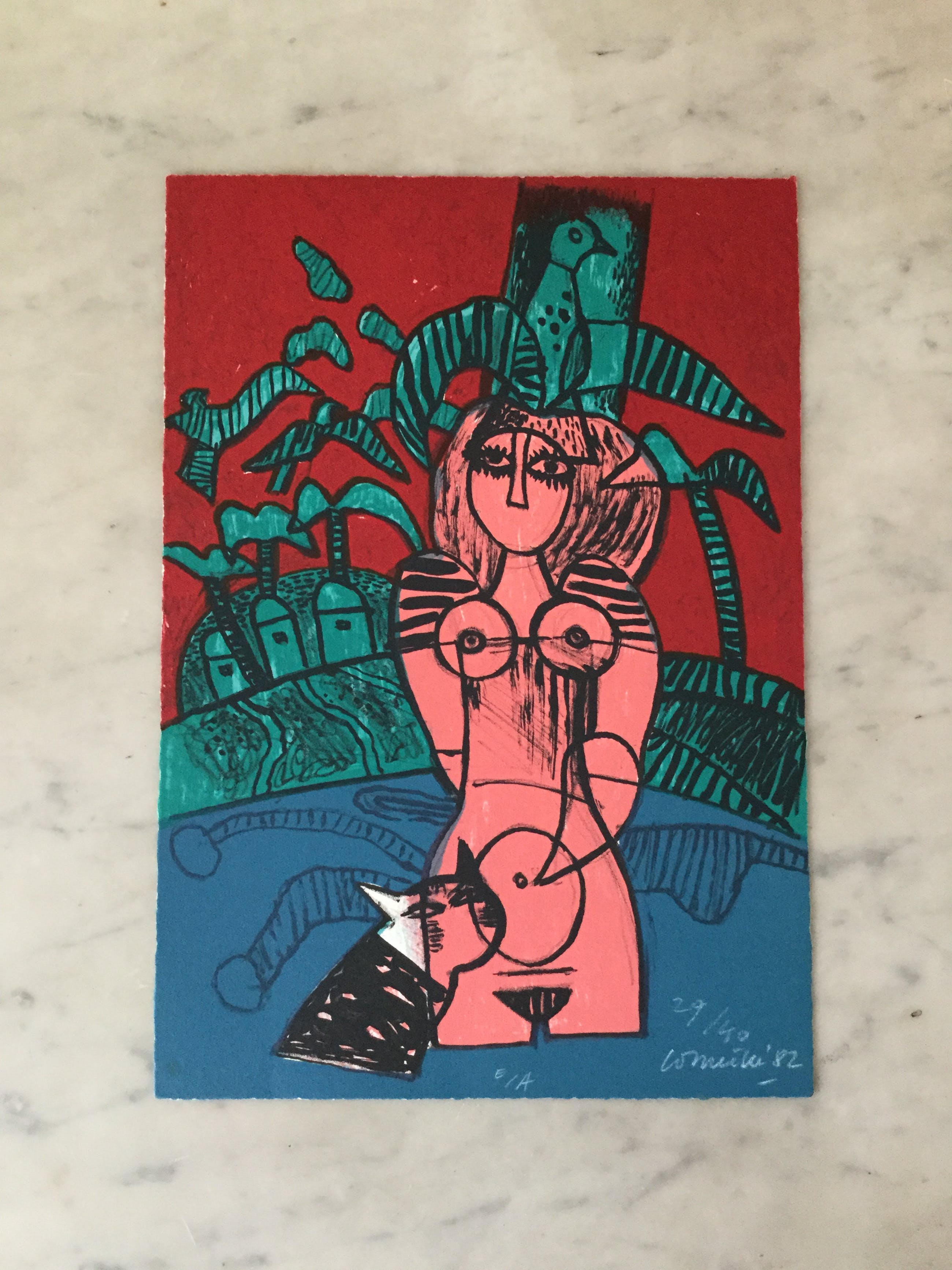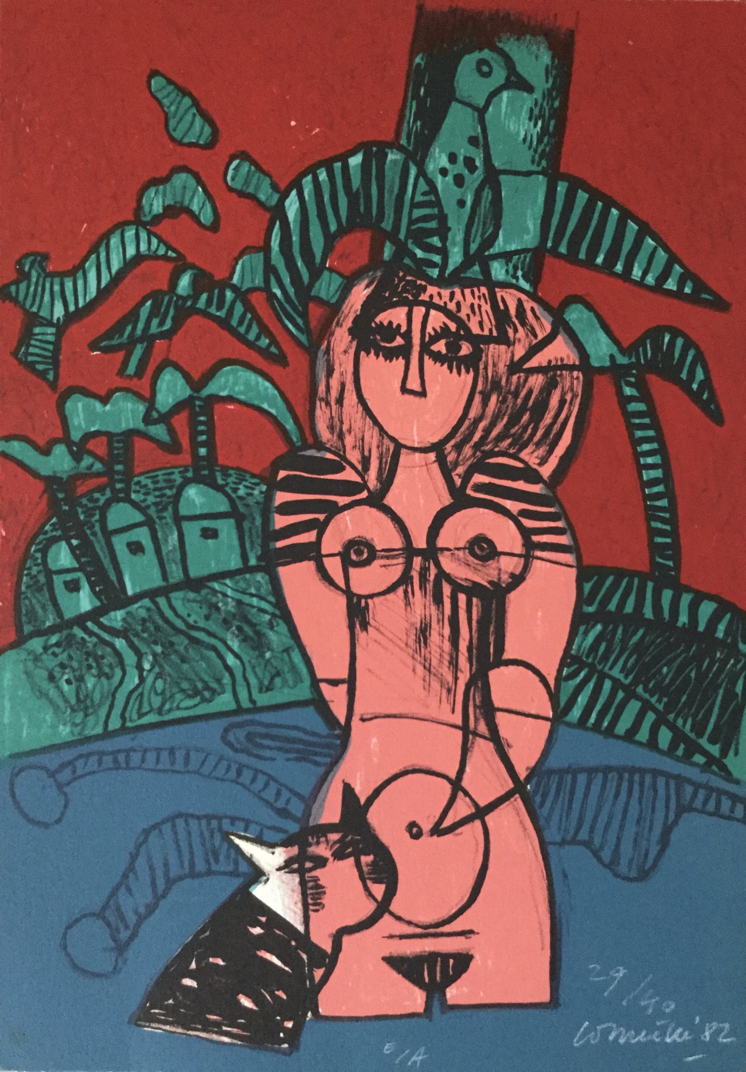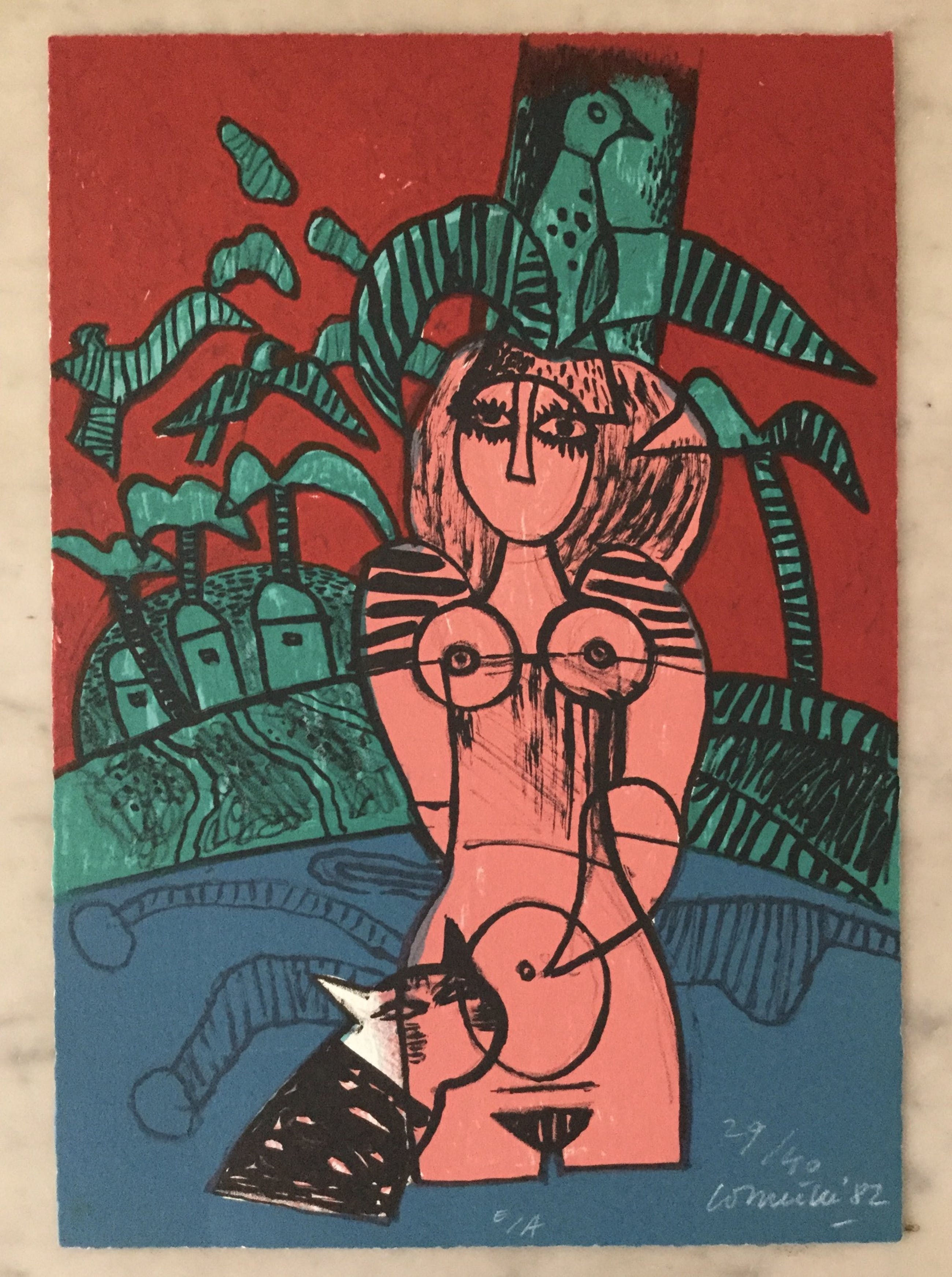 In mooie staat verkerende zeefdruk van Corneille uit 1982. Gelimiteerde oplage van 40 stuks. 33 x 23 cm
