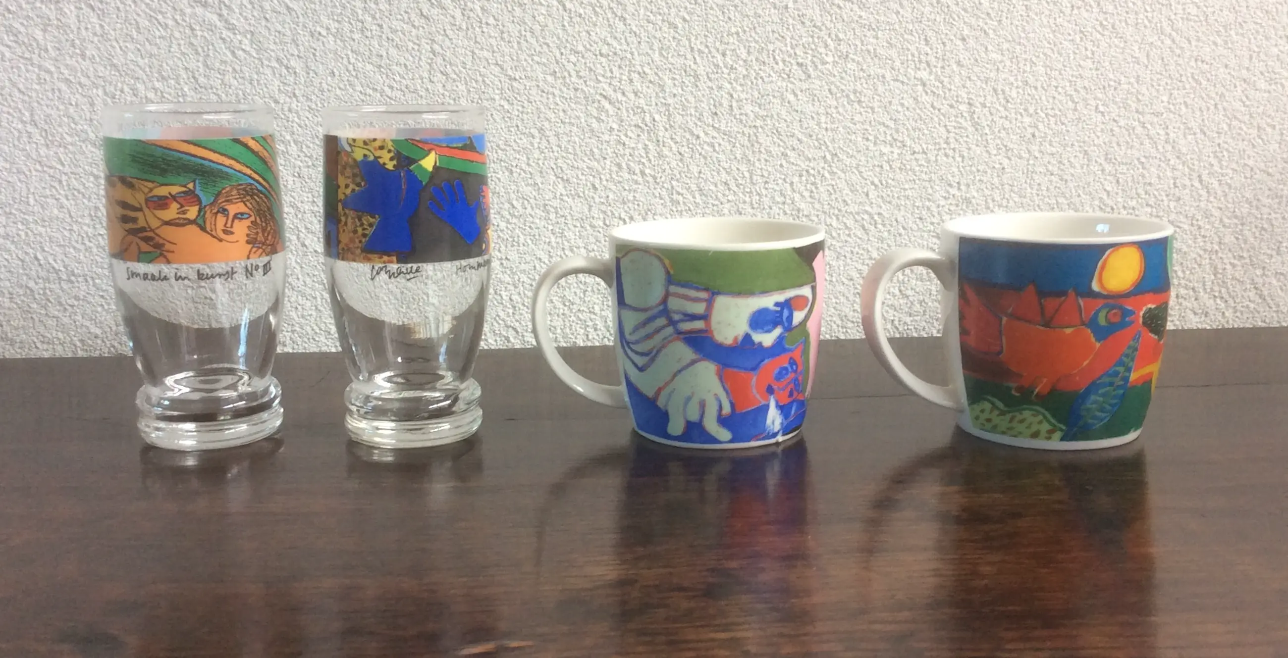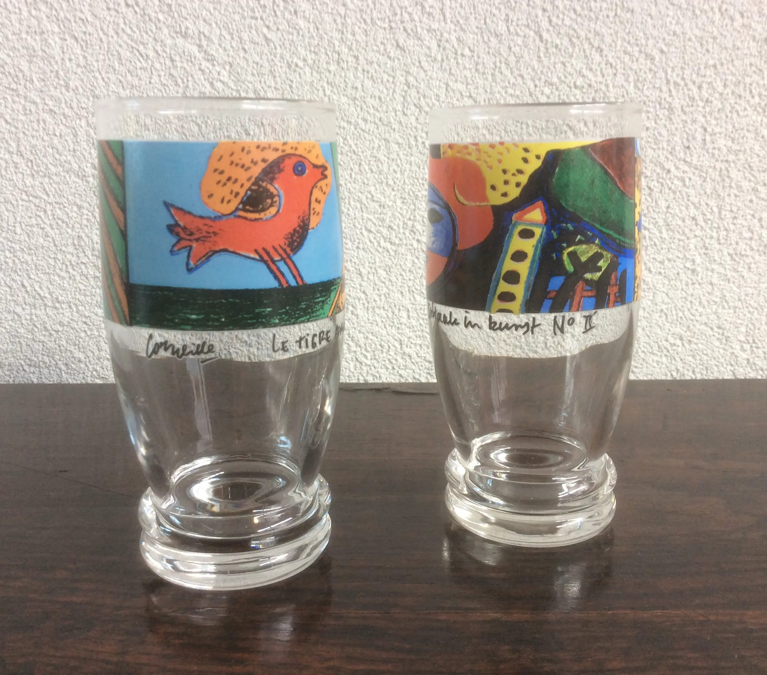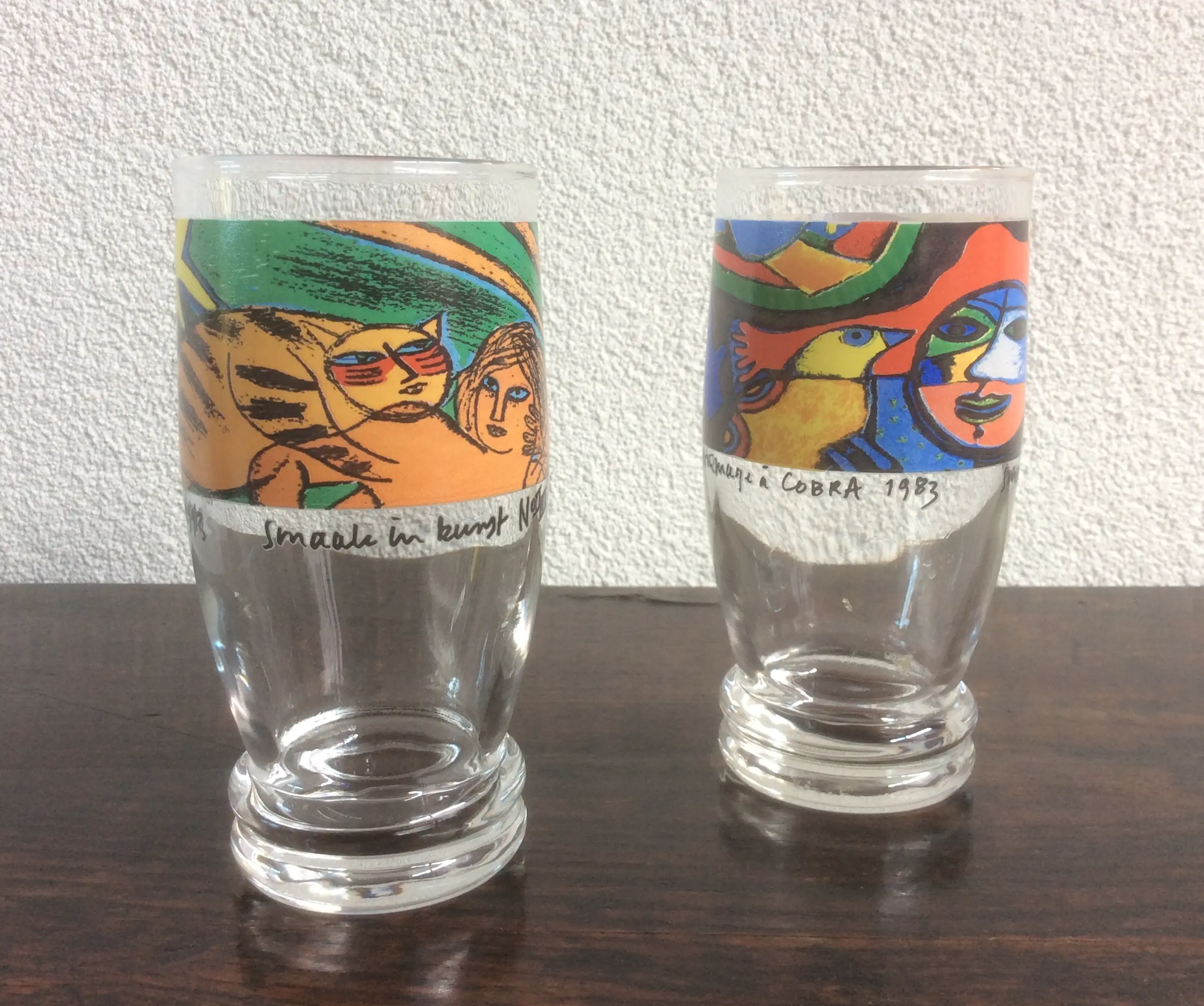 Twee glazen uit de serie Smaak in kunst. Hoogte 13 cm en gesigneerd.