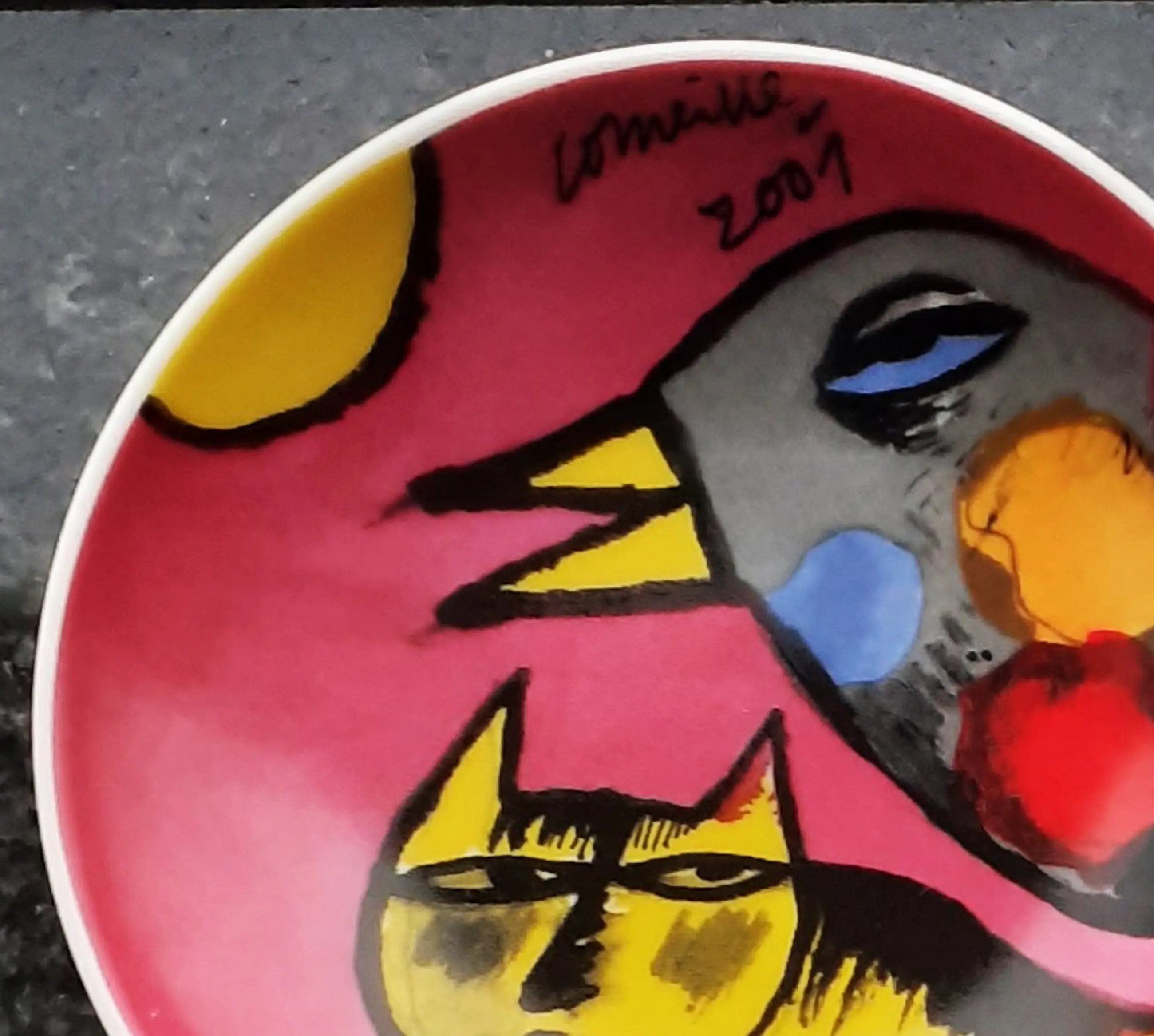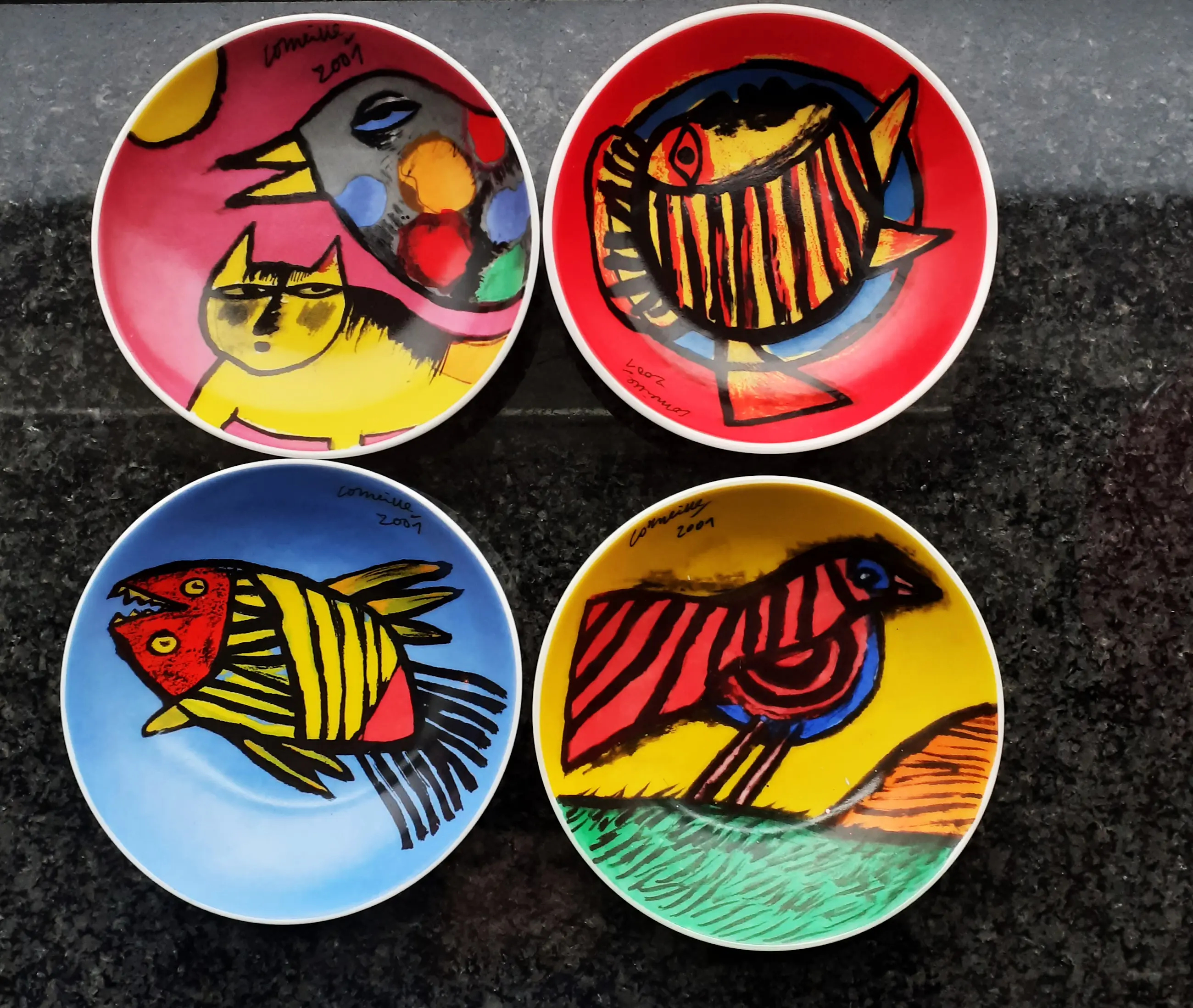 Vier verschillende kleurrijke schaaltjes ontwerp Corneille uit 2001