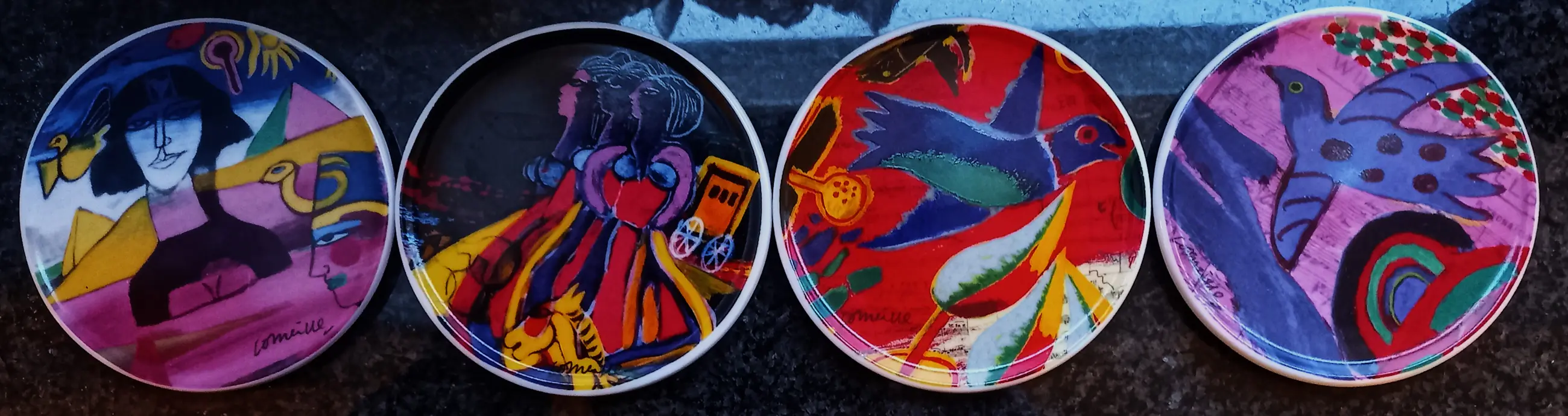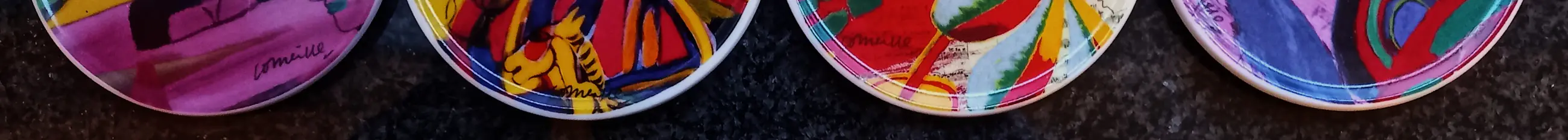Fraaie, kleurrijke onderzetters met de zo kenmerkende motieven van Corneille