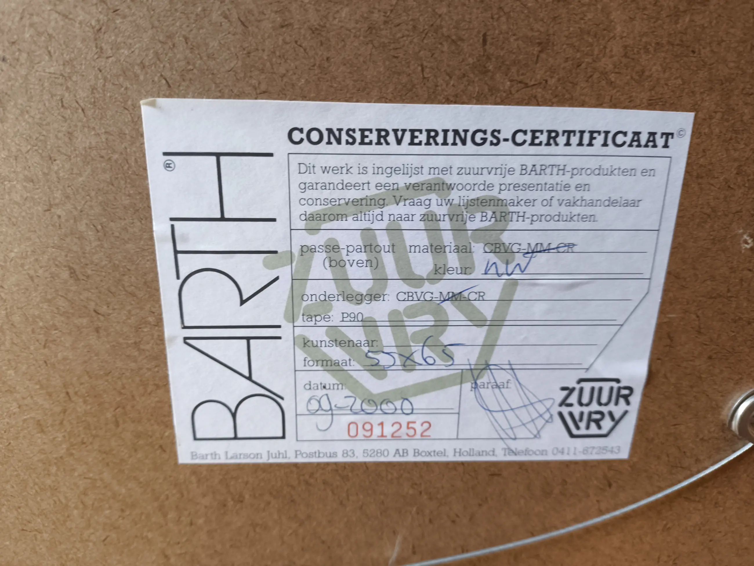Het werk is af te halen op locatie. Als koper dient u zelf verpakkingsmateriaal mee te nemen. De locatie is: Rouveen, Nederland