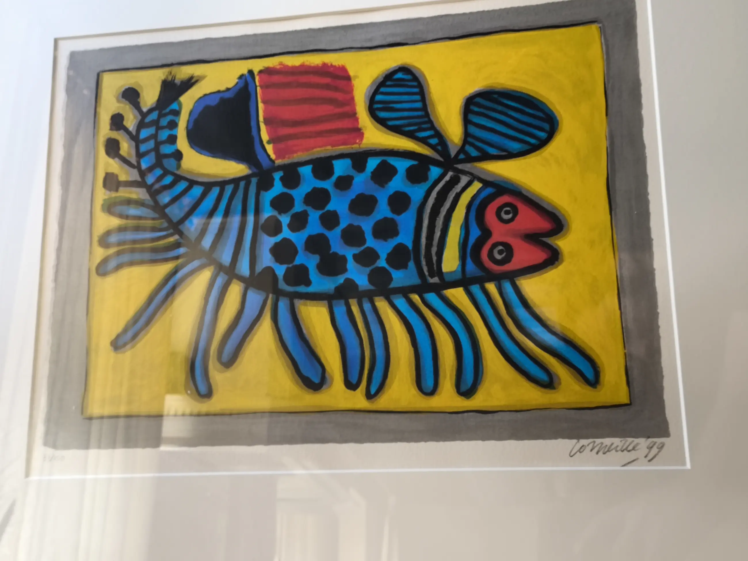 Corneille vrolijke vis gesigneerd zeefdruk met Barth concerverings cerificaat