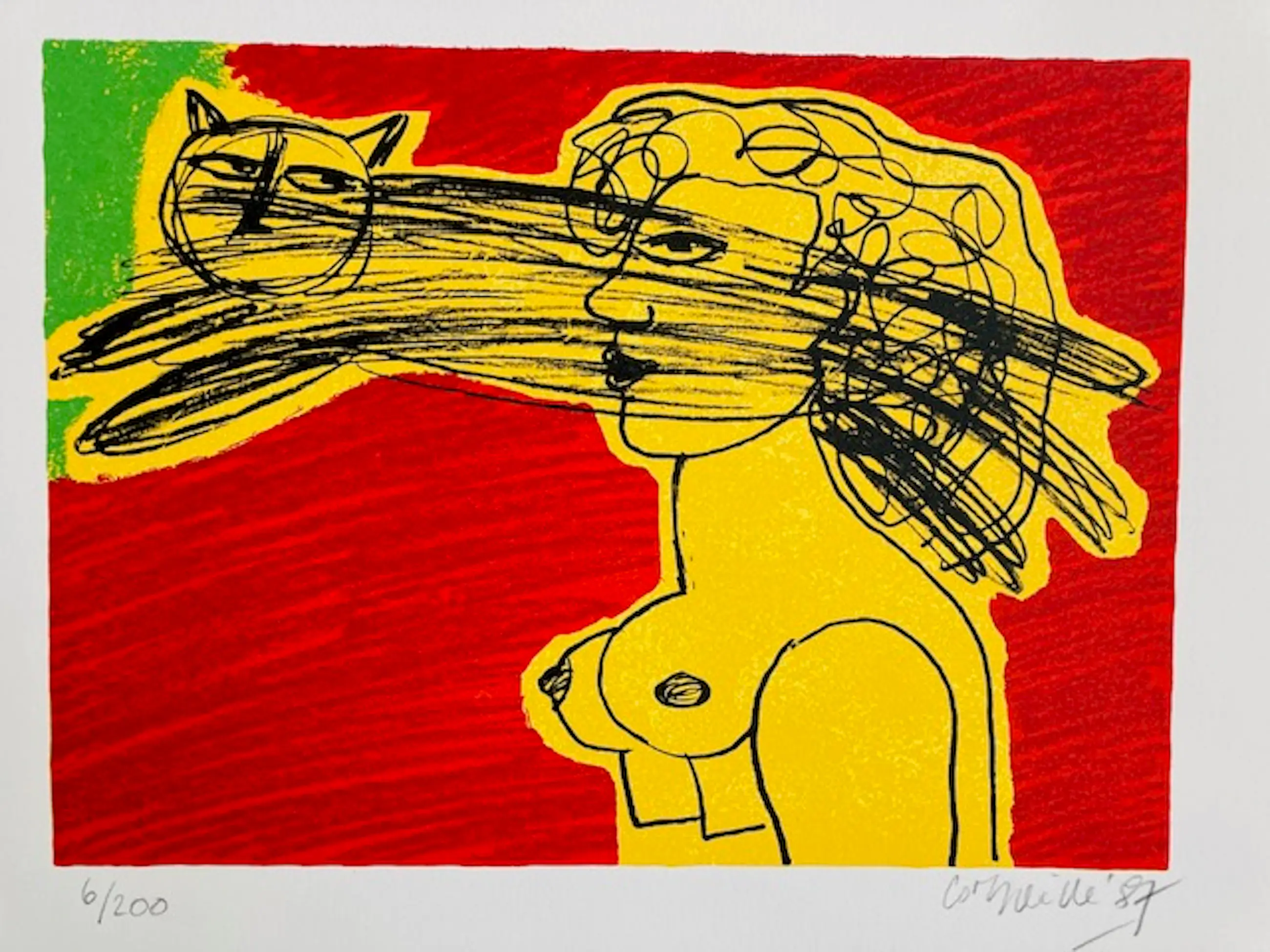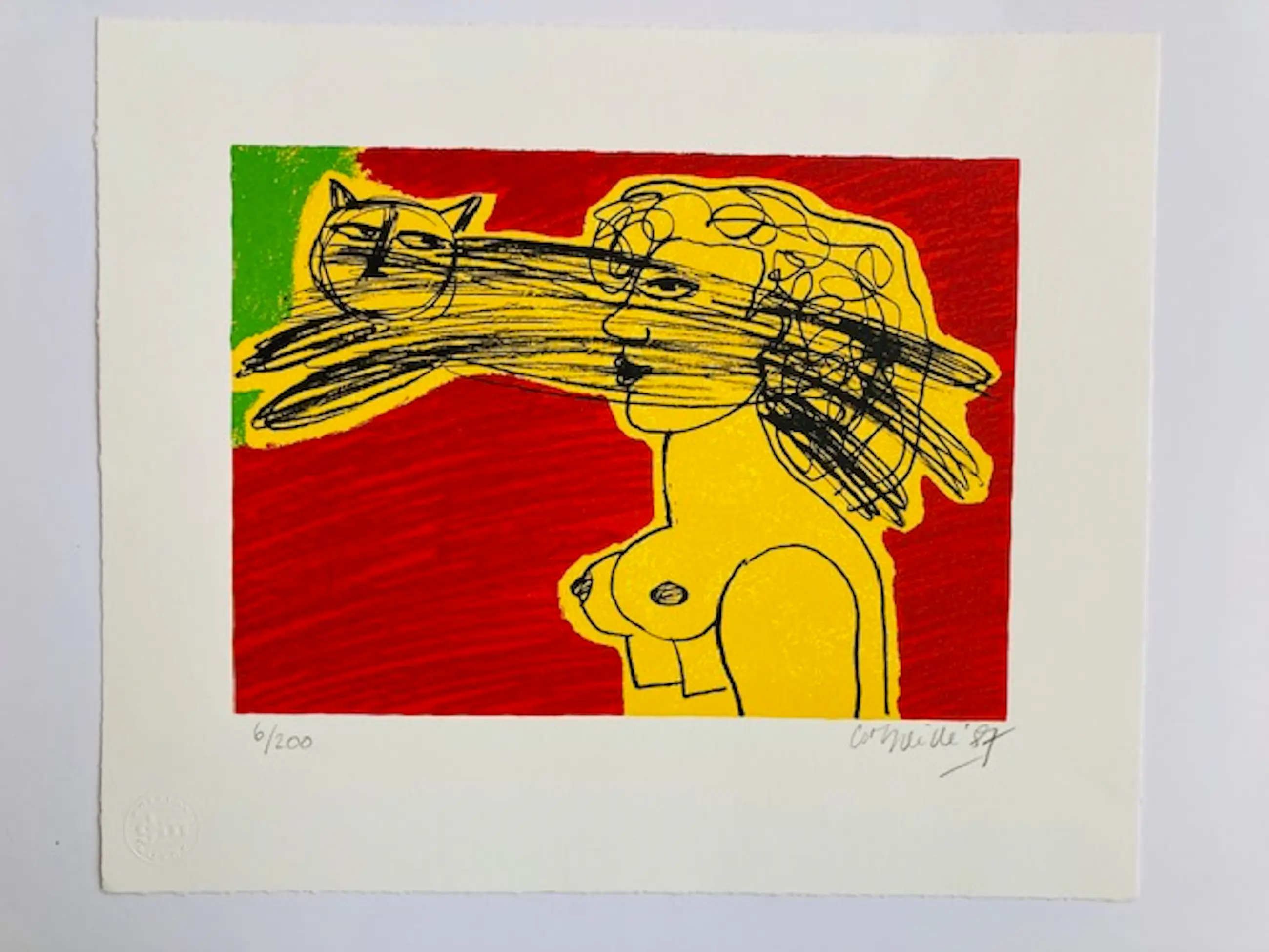 Fraai gedrukte litho in nieuwstaat van Corneille. Uit een oplage van 200 stuks. het werk is genummerd en gesigneerd.
