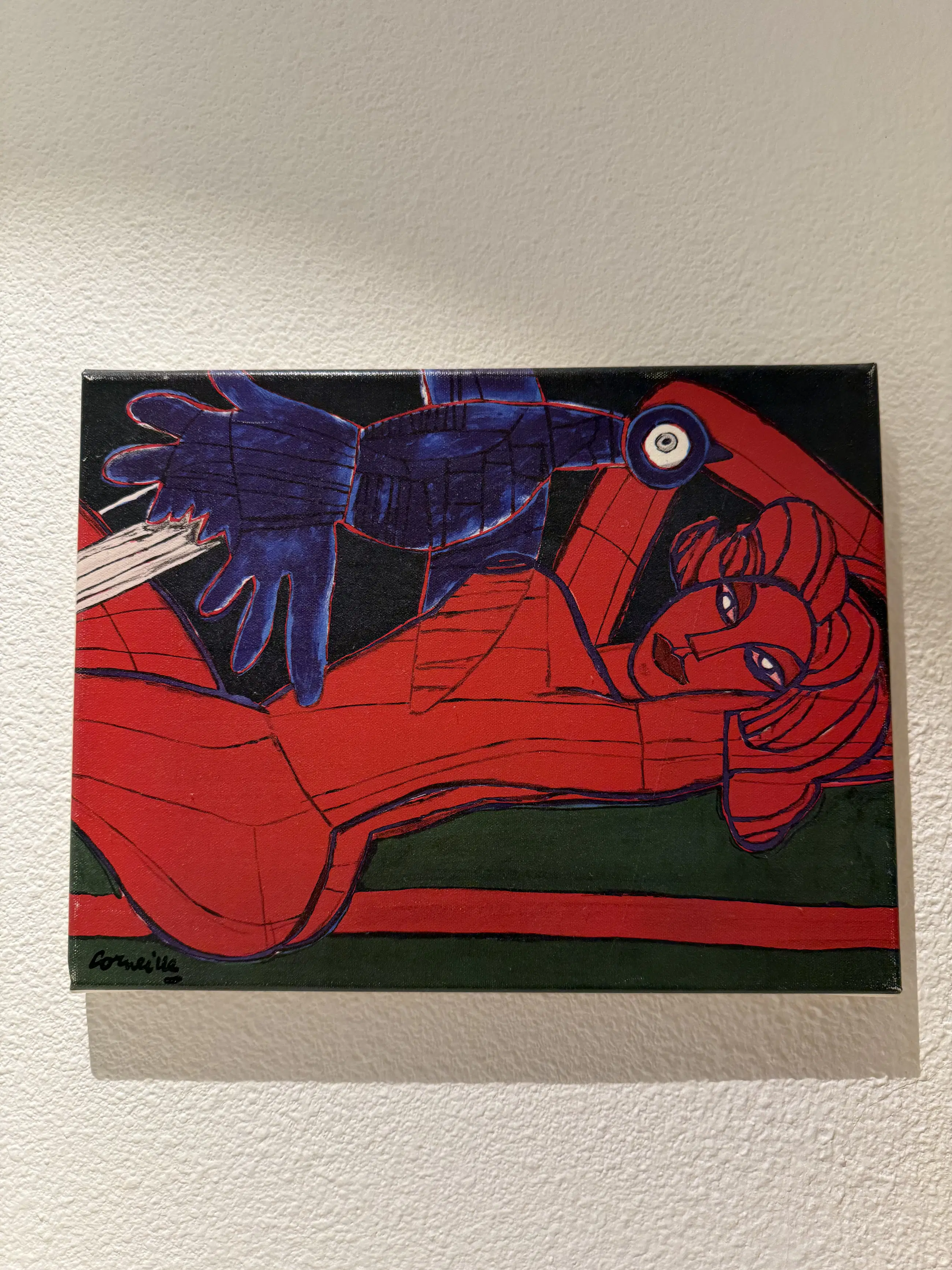Schilderij Corneille - Vrouw met vogel. Zeefdruk op textiel.