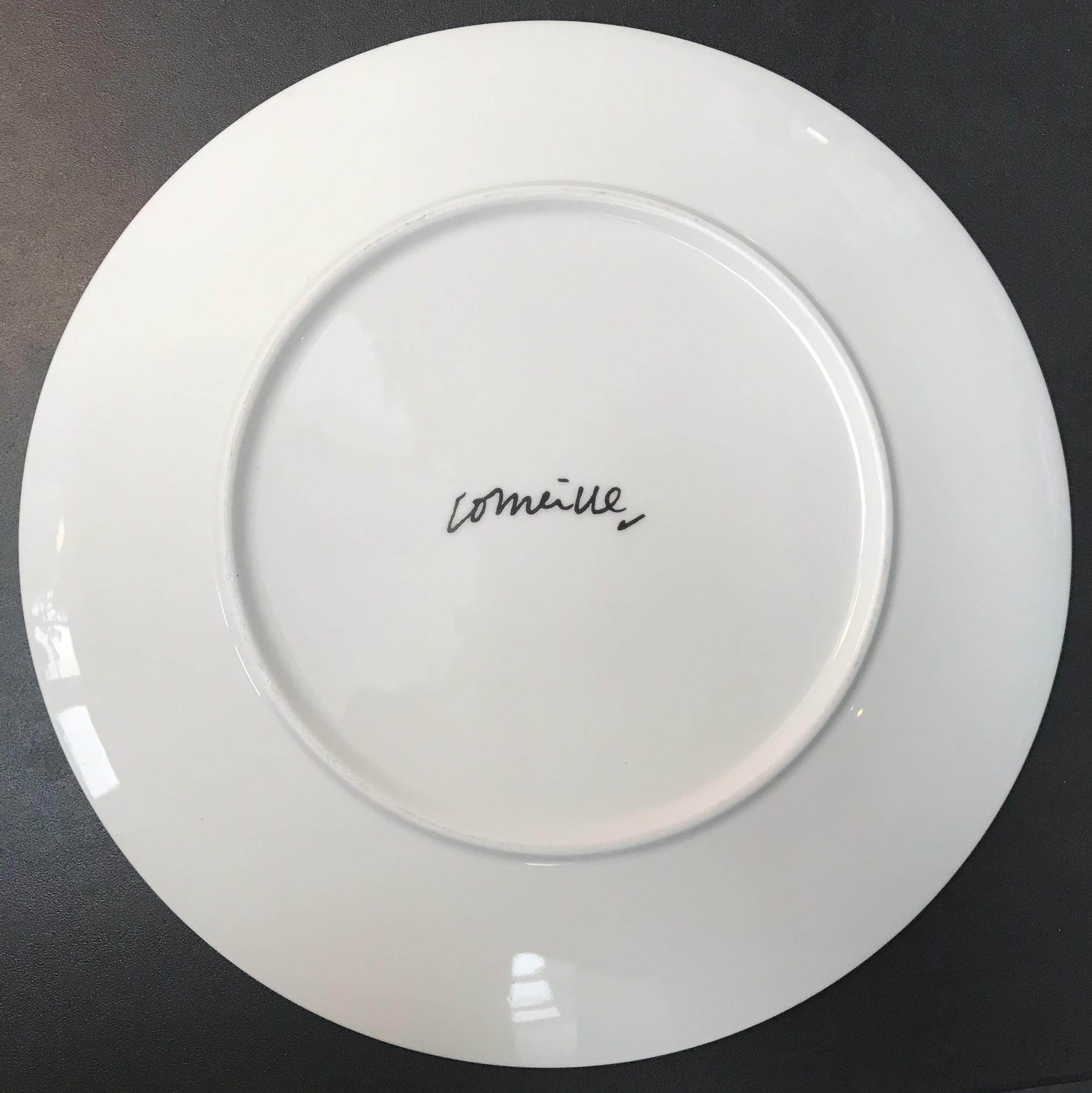 Keramieken bord van Corneille. Afbeelding en signatuur (voor en achterzijde) in sjabloon aangebracht. Doorsnede 30 cm.