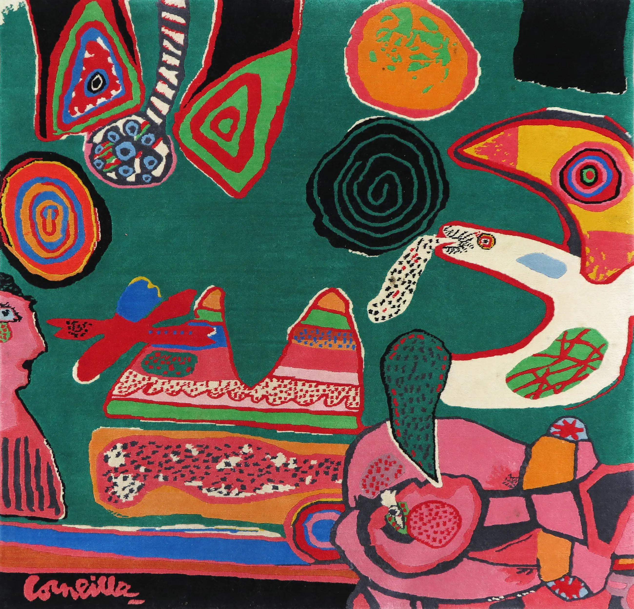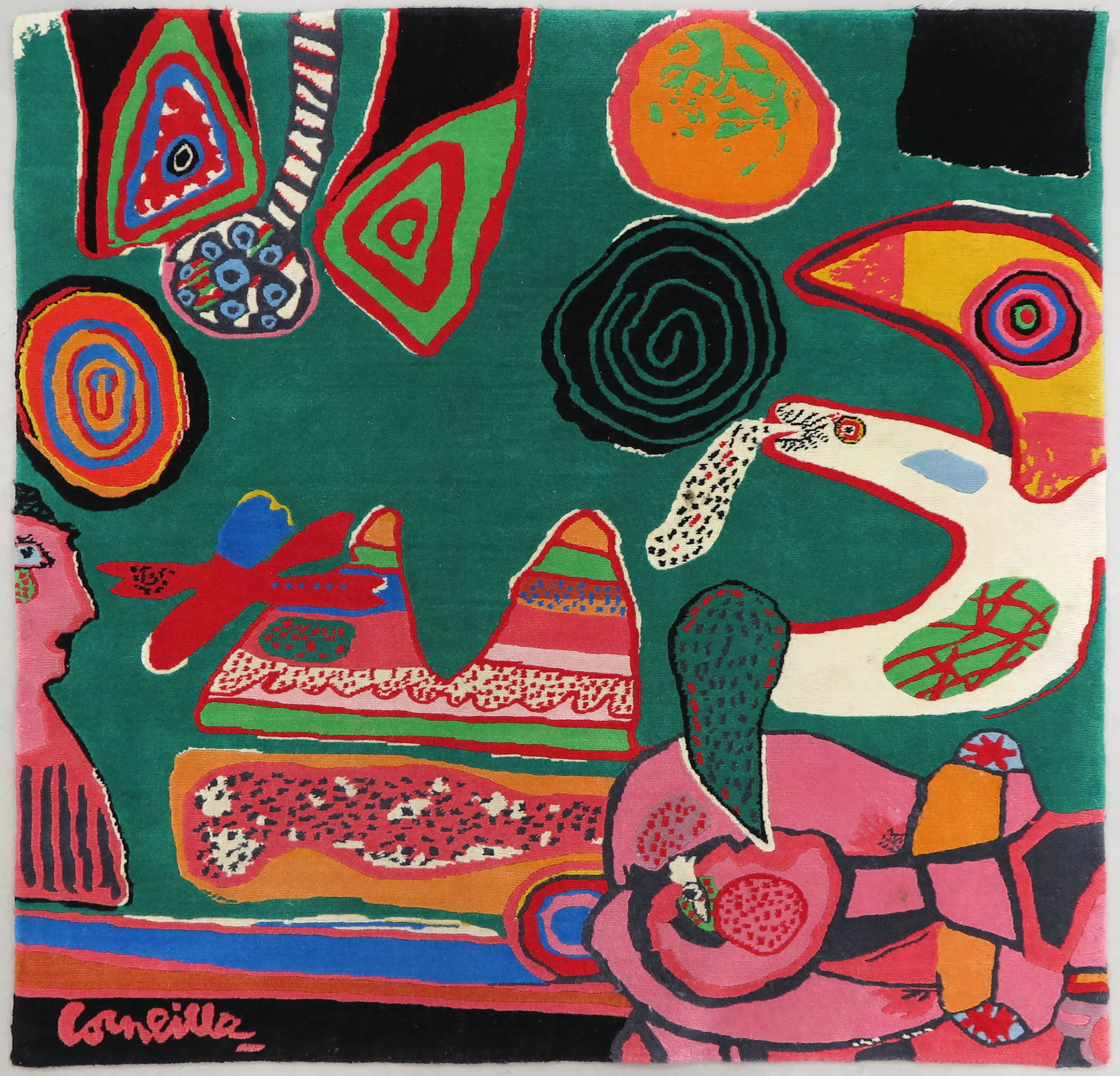 Bij het tapijt zit ook een (geplastificeerd), door Corneille hand gesigneerd en gedateerd, certificaat.