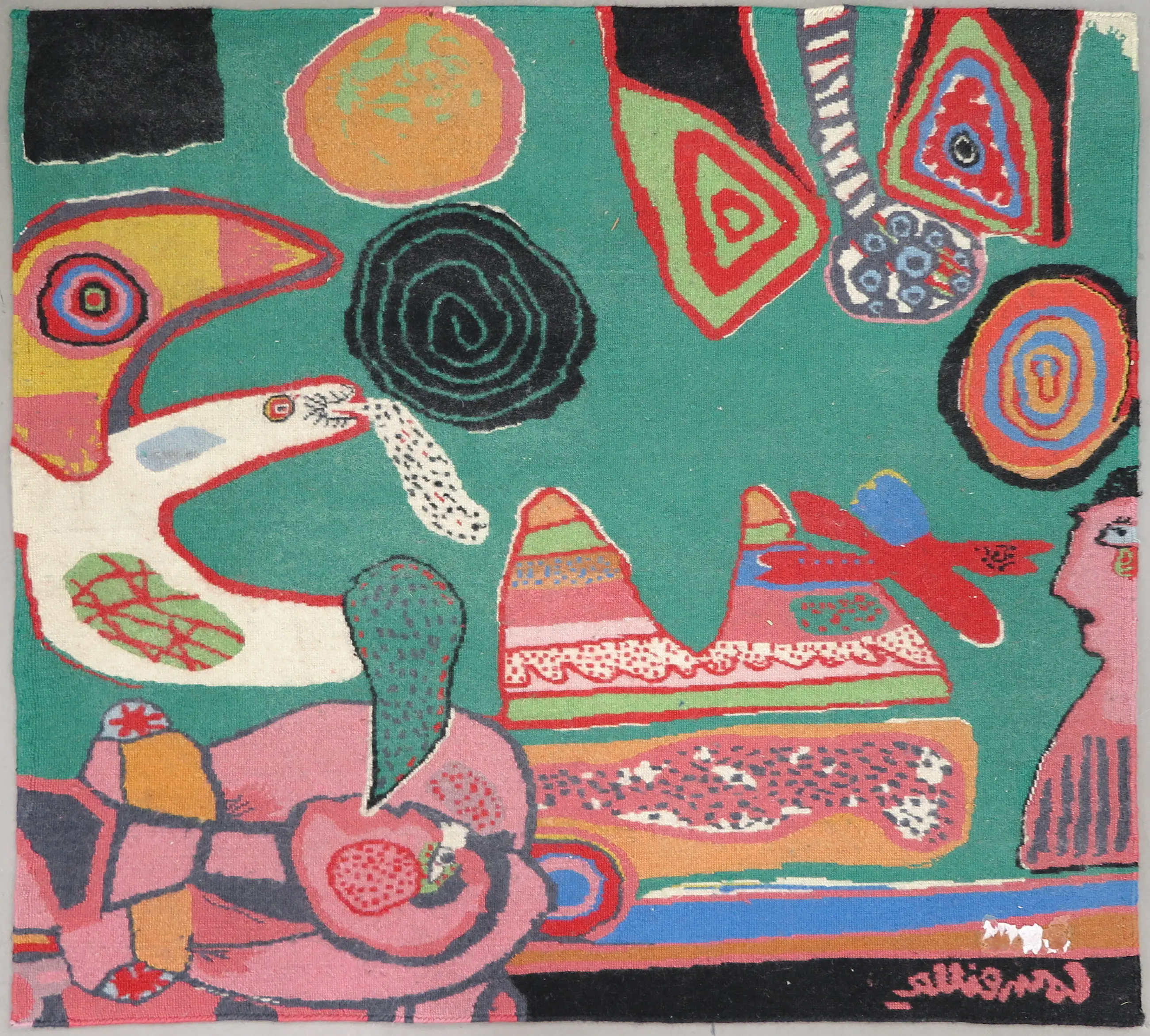 Wollen tapijt, met de afbeelding Bain de soleil. Uitgegeven in een oplage van 80 exemplaren (+ 8 E.A. en 3 H.C.). Dit is exemplaar 7/80.