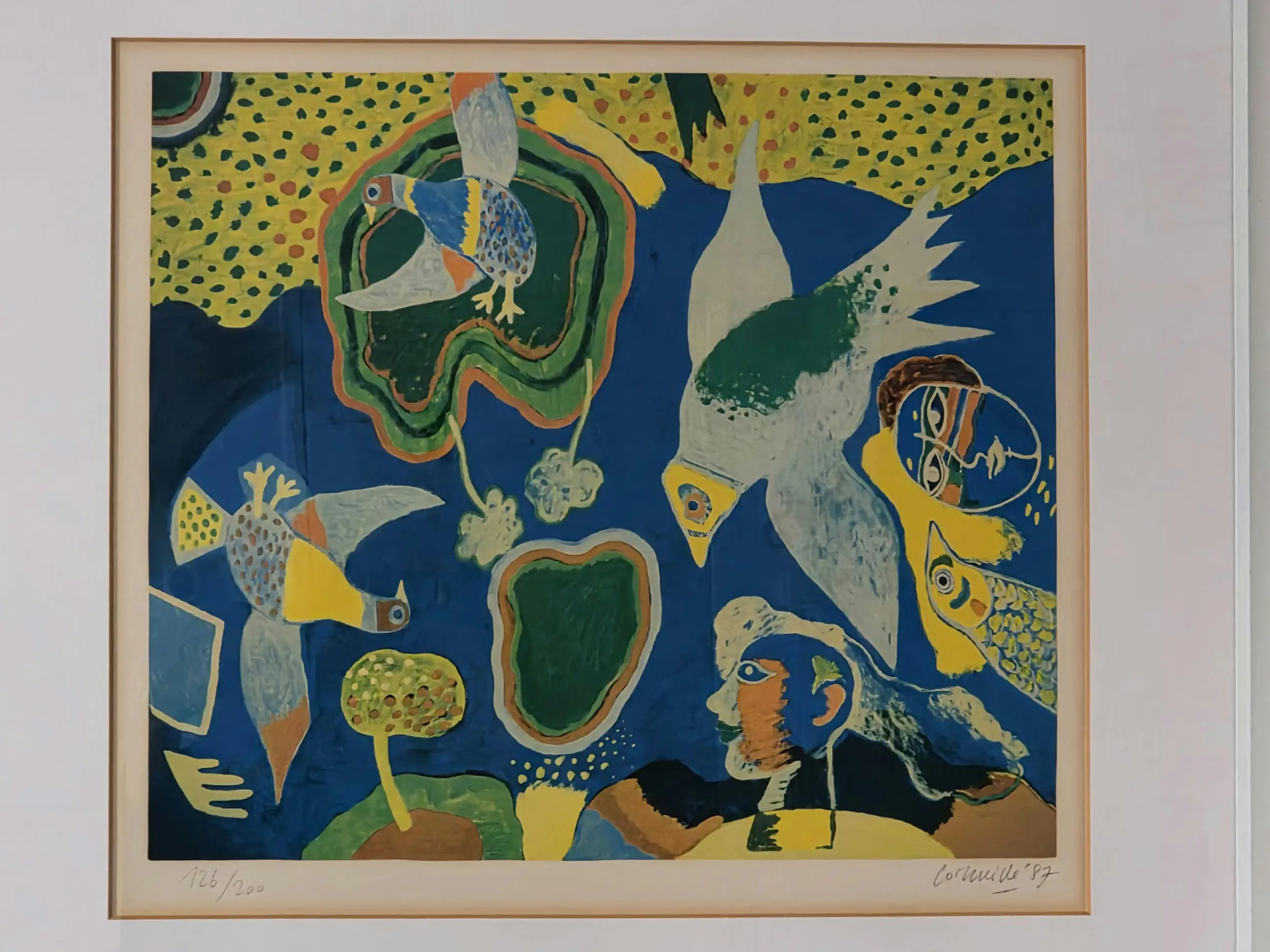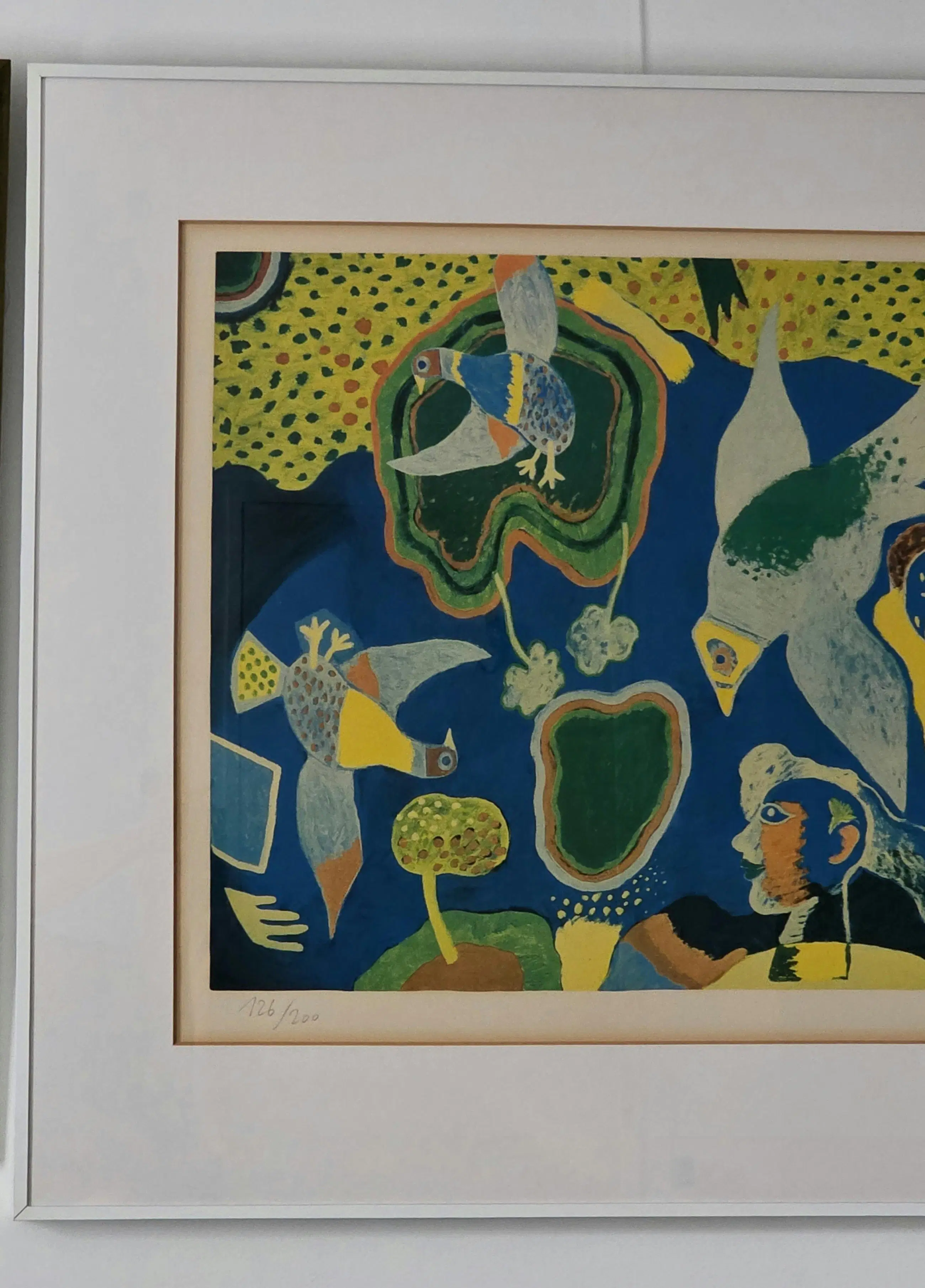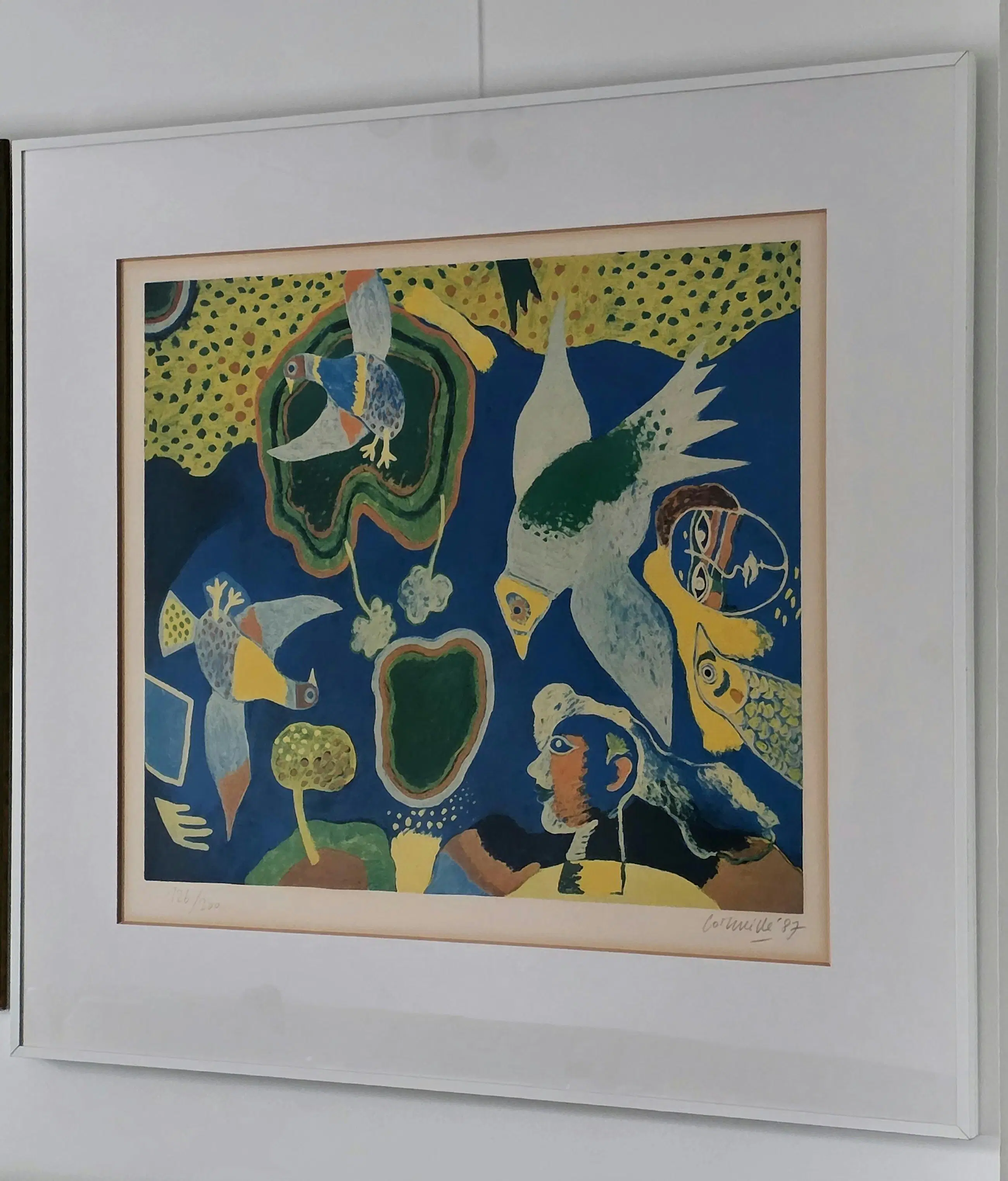 Word geleverd met echtheidscertificaat. Origineel en gelimiteerd werk. Mooie lijst en Passe-partout Handgesigneerd, Genummerd en gedateerd door Corneille. Oplage 126/200. Jaartal 1987.