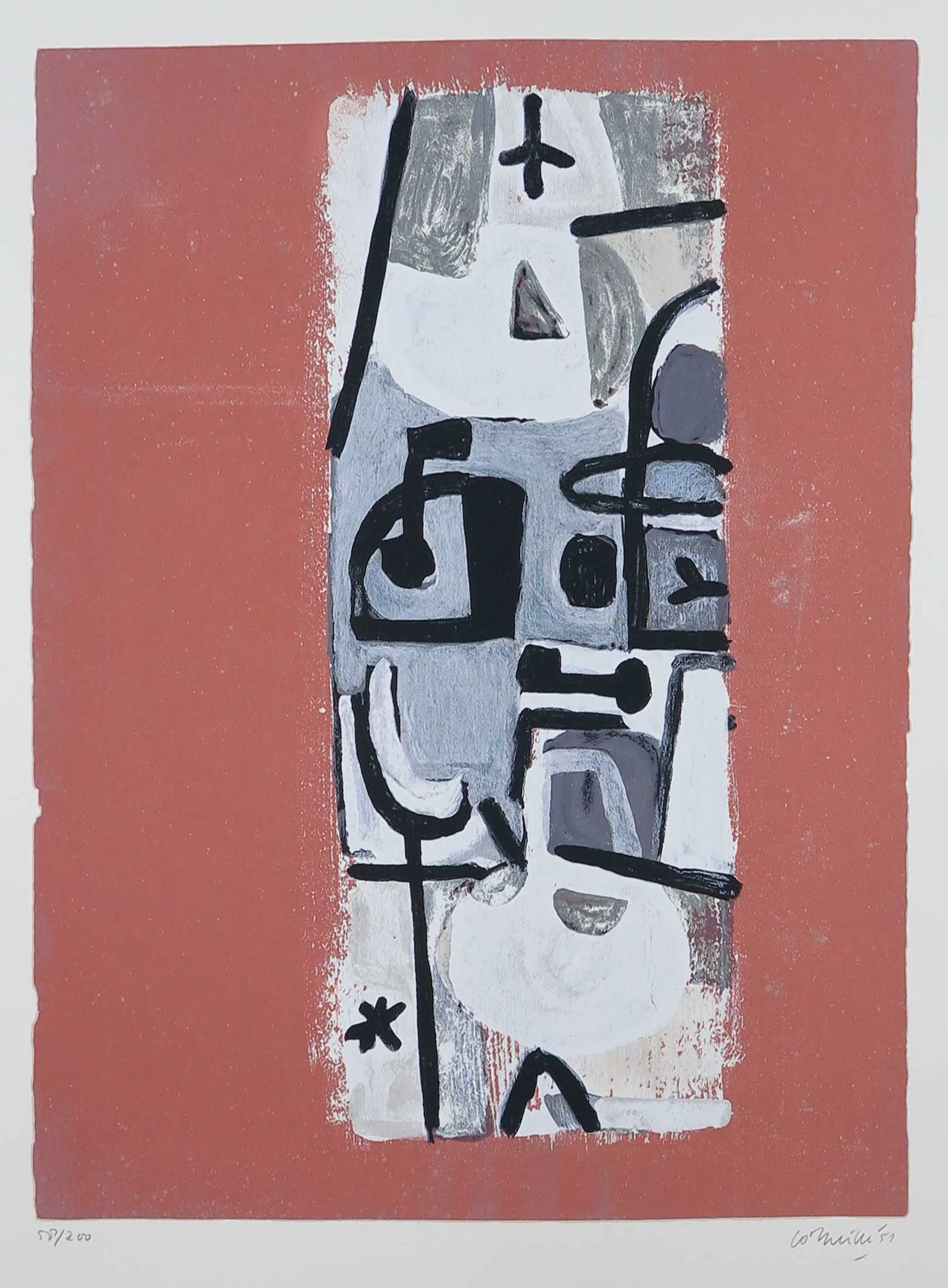 Dit betreft een latere druk van het origineel van 'Charlie Parker'. Het origineel komt uit 1951. Corneille deed dit vaker. De datering is dan van het jaar dat de compositie is gemaakt en niet het jaar van de latere zeefdruk. Dit item is vermoedelijk begin jaren '80 gedrukt.