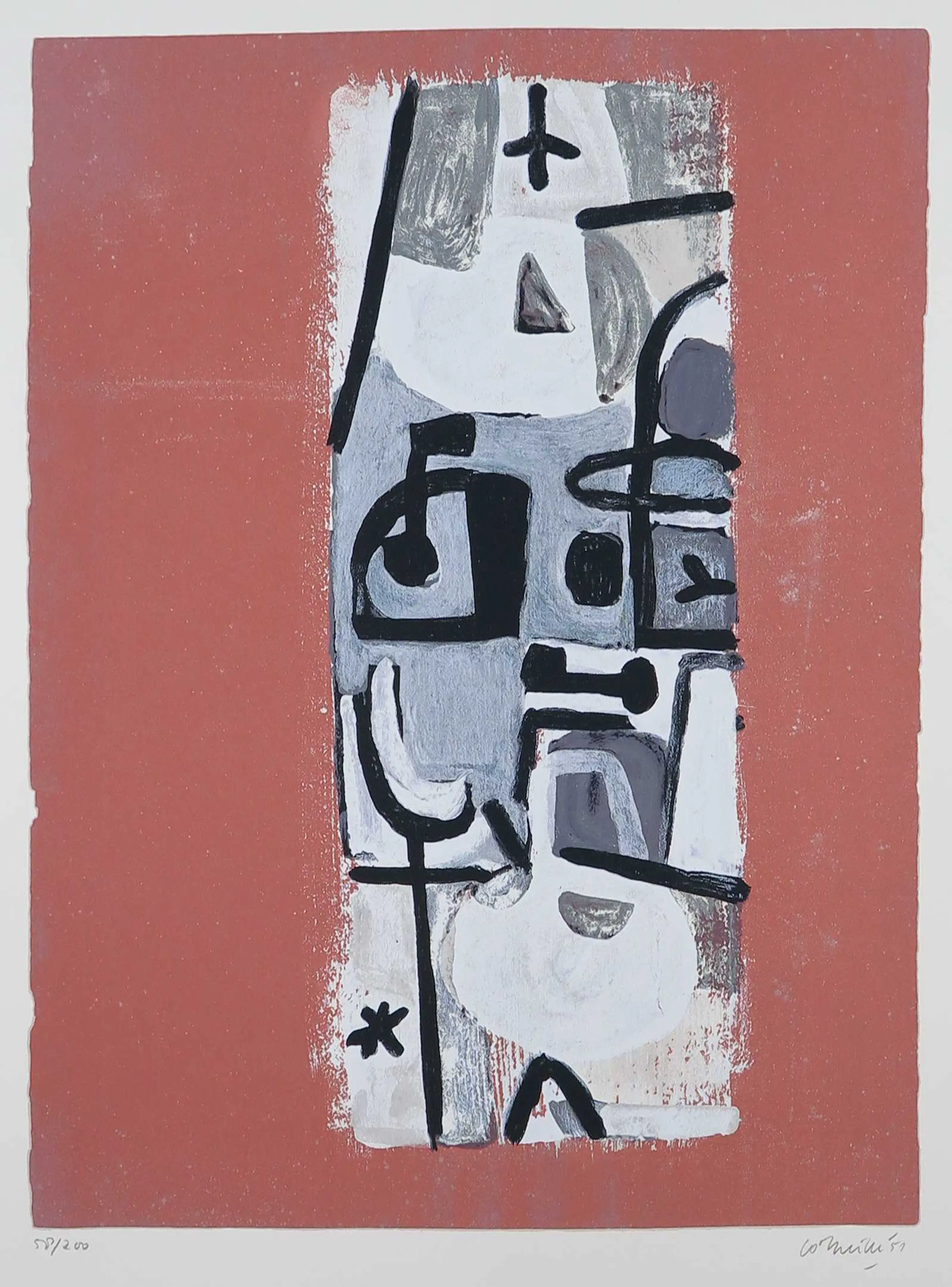 Dit betreft een latere druk van het origineel van 'Charlie Parker'. Het origineel komt uit 1951. Corneille deed dit vaker. De datering is dan van het jaar dat de compositie is gemaakt en niet het jaar van de latere zeefdruk. Dit item is vermoedelijk begin jaren '80 gedrukt.