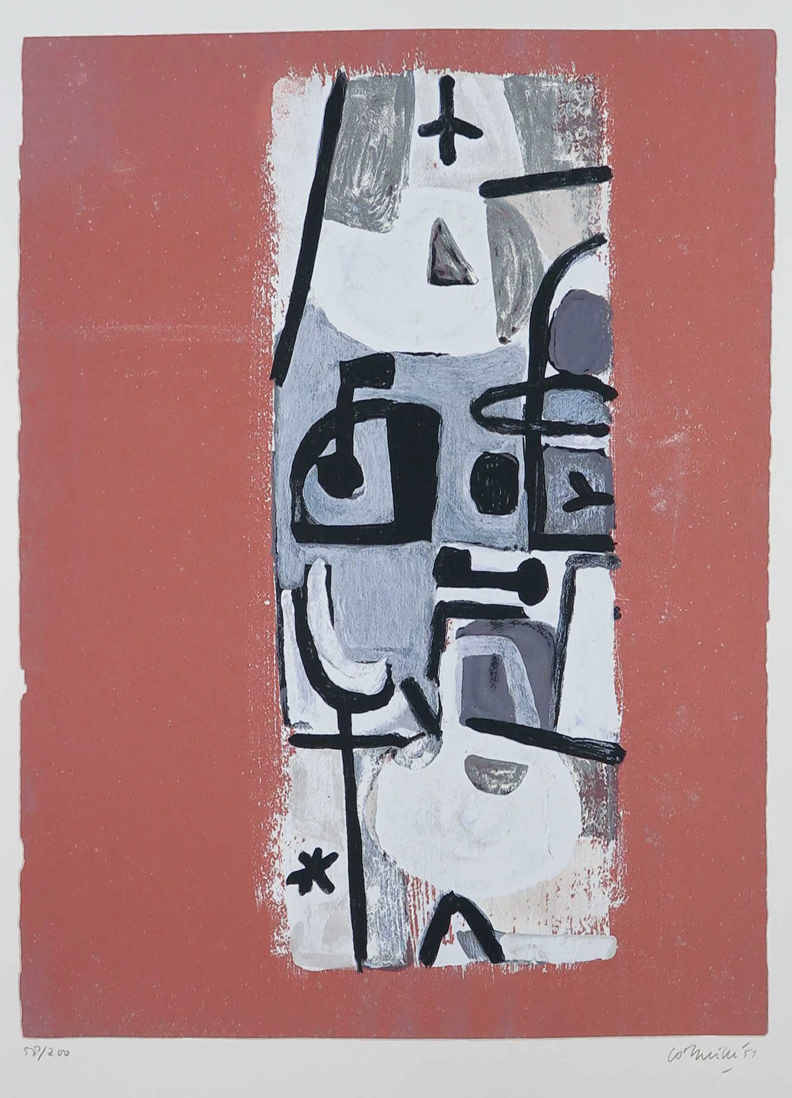 Dit betreft een latere druk van het origineel van 'Charlie Parker'. Het origineel komt uit 1951. Corneille deed dit vaker. De datering is dan van het jaar dat de compositie is gemaakt en niet het jaar van de latere zeefdruk. Dit item is vermoedelijk begin jaren '80 gedrukt.
