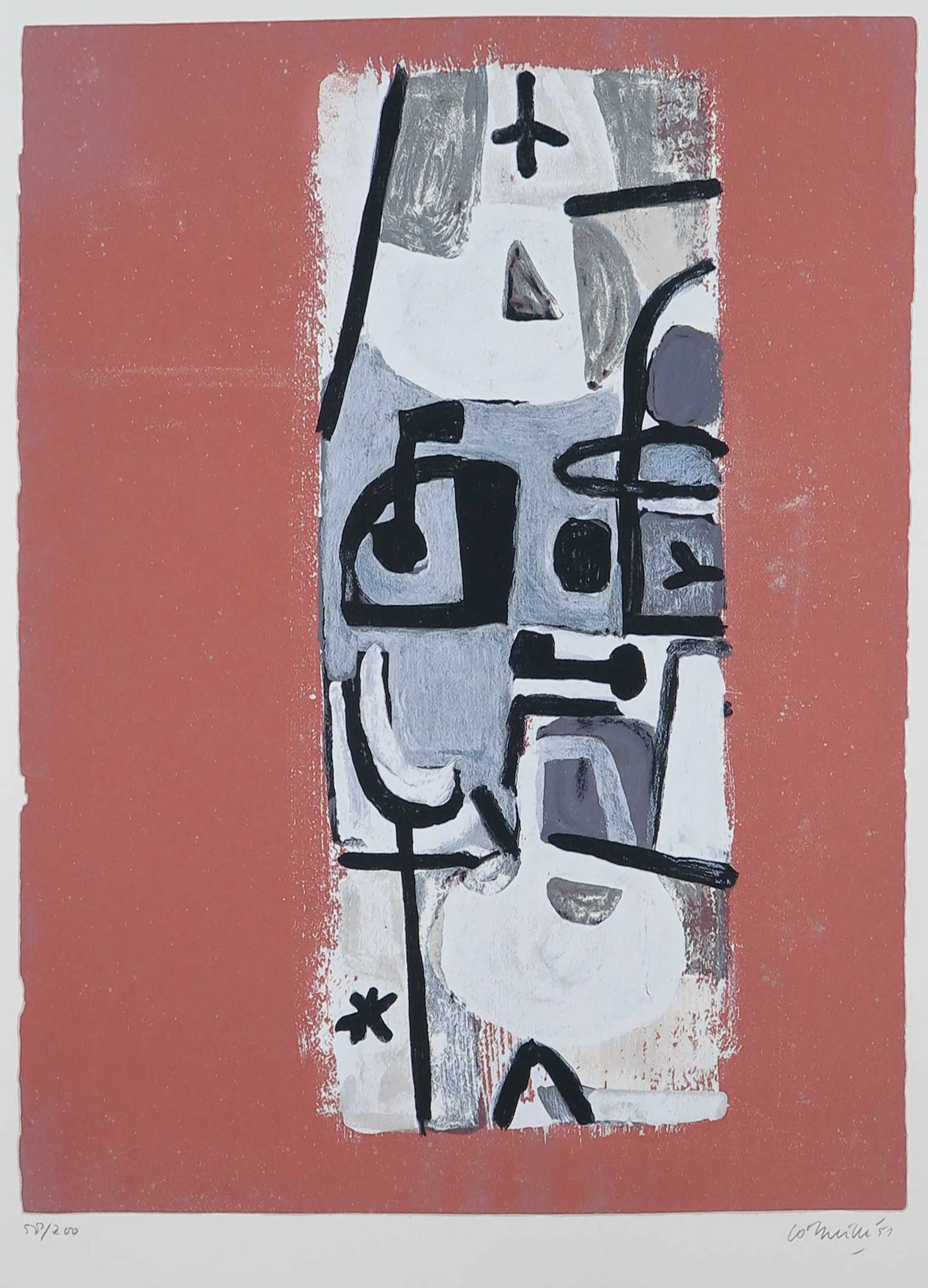Dit betreft een latere druk van het origineel van 'Charlie Parker'. Het origineel komt uit 1951. Corneille deed dit vaker. De datering is dan van het jaar dat de compositie is gemaakt en niet het jaar van de latere zeefdruk. Dit item is vermoedelijk begin jaren '80 gedrukt.