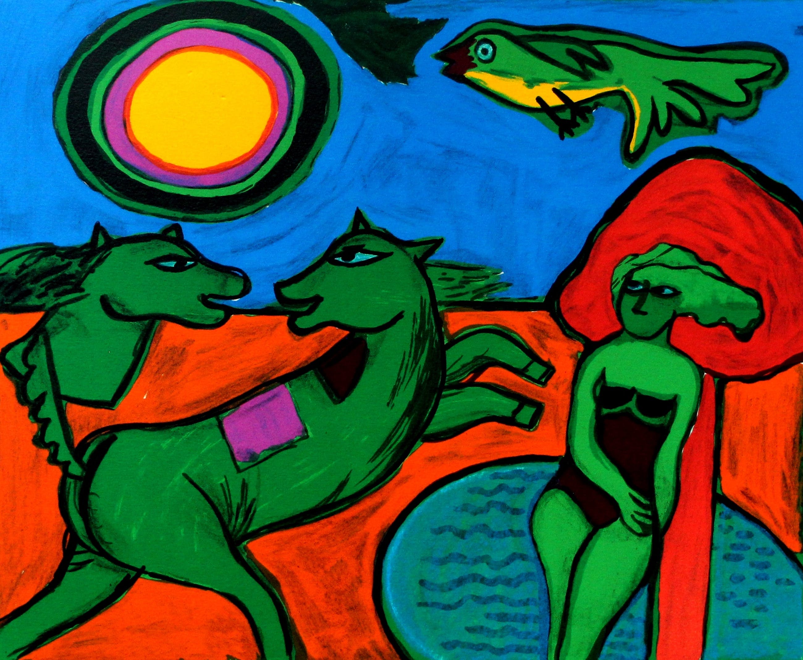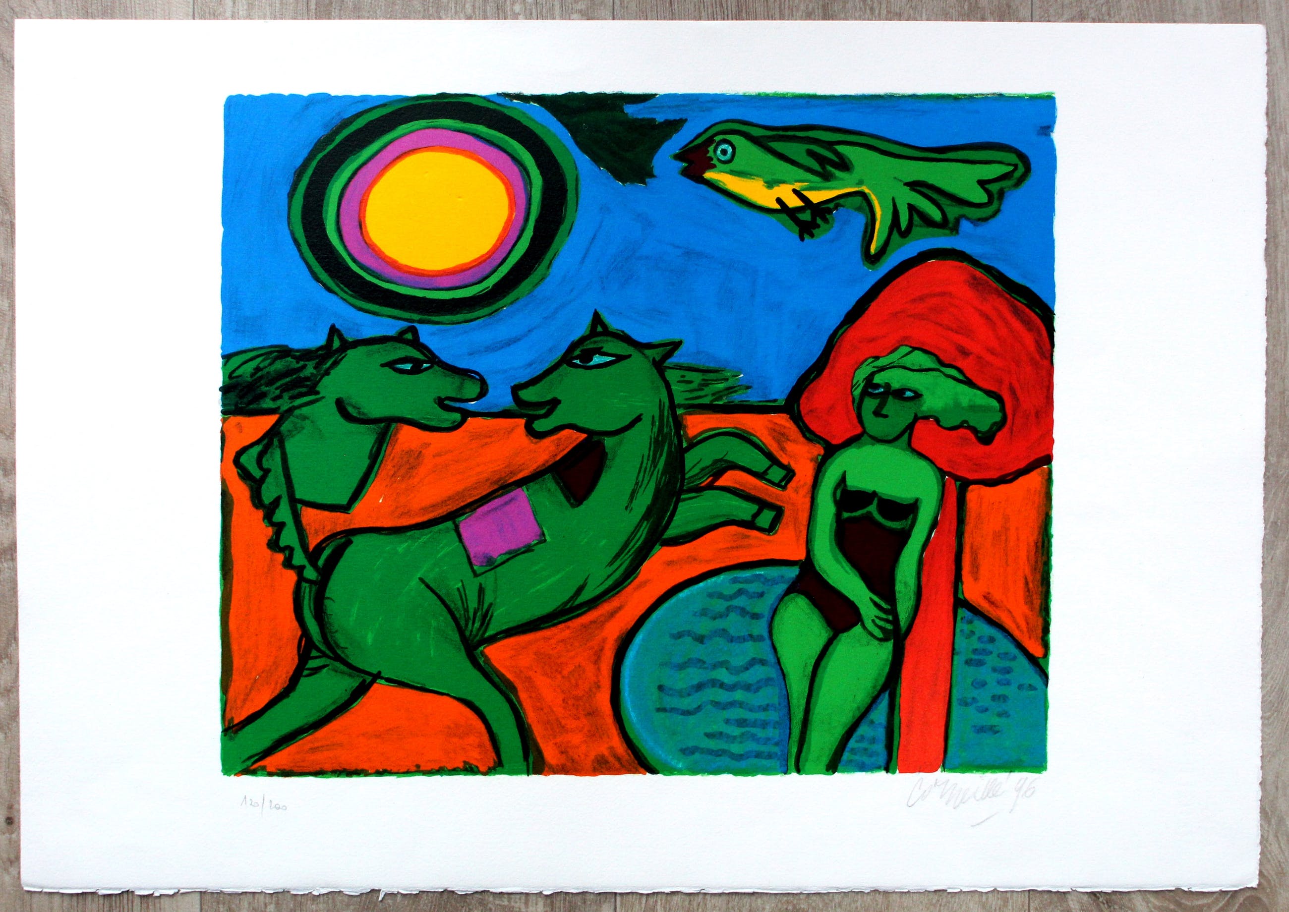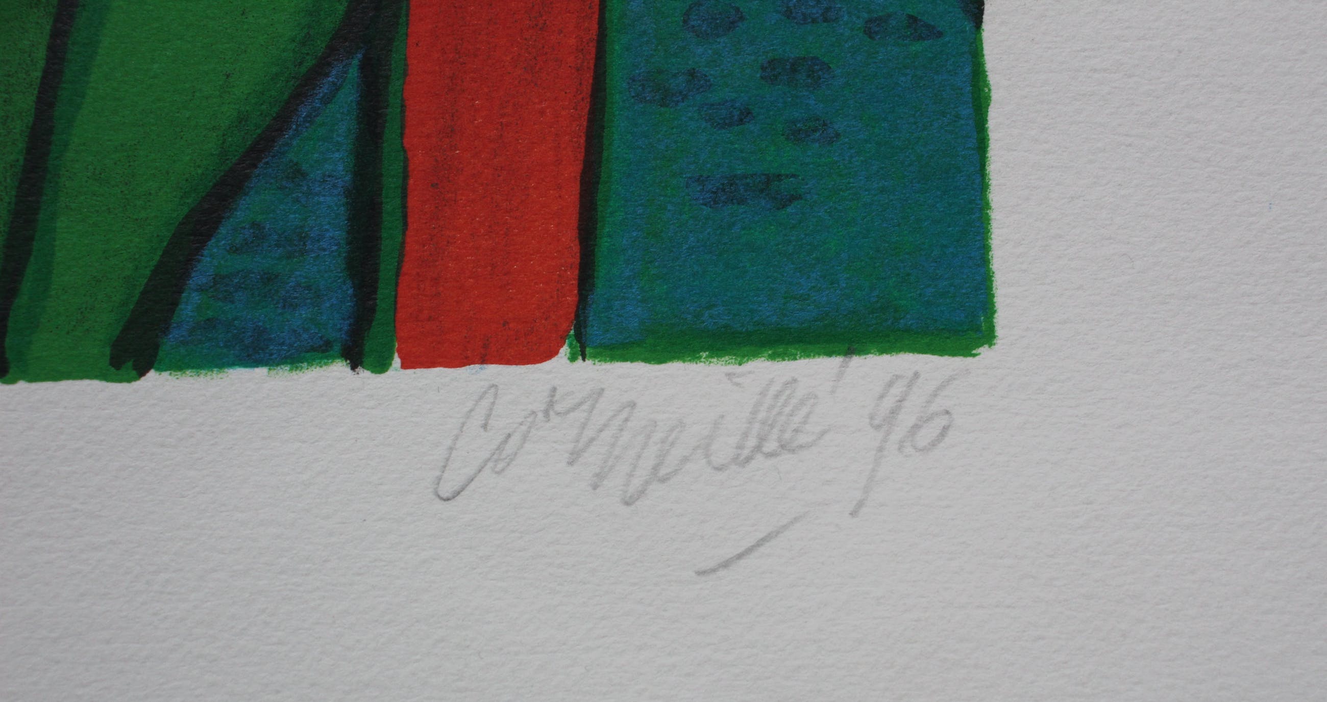 Zeefdruk van Corneille uit 1996. Afmetingen voorstelling: H32,5 x b40 cm. Het werk is rechtsonder, met potlood, gesigneerd door de kunstenaar. De authenticiteit van het aangeboden werk wordt voor 100% gegarandeerd. Een certificaat van echtheid kan, op aanvraag, worden meegestuurd.
