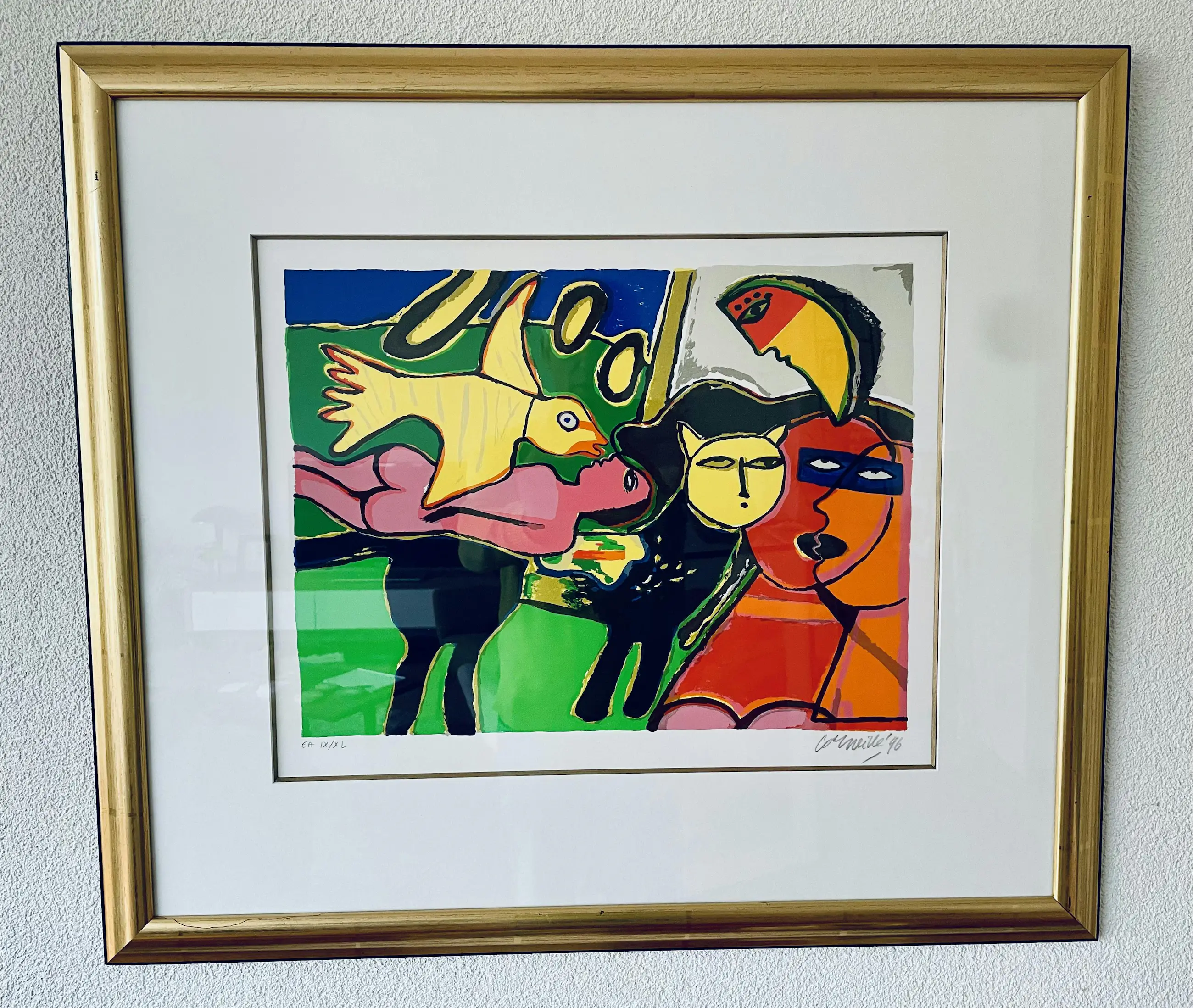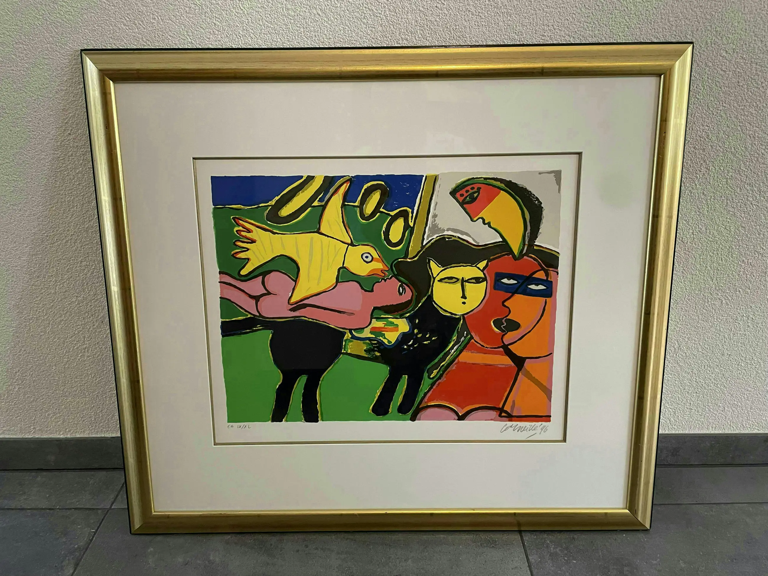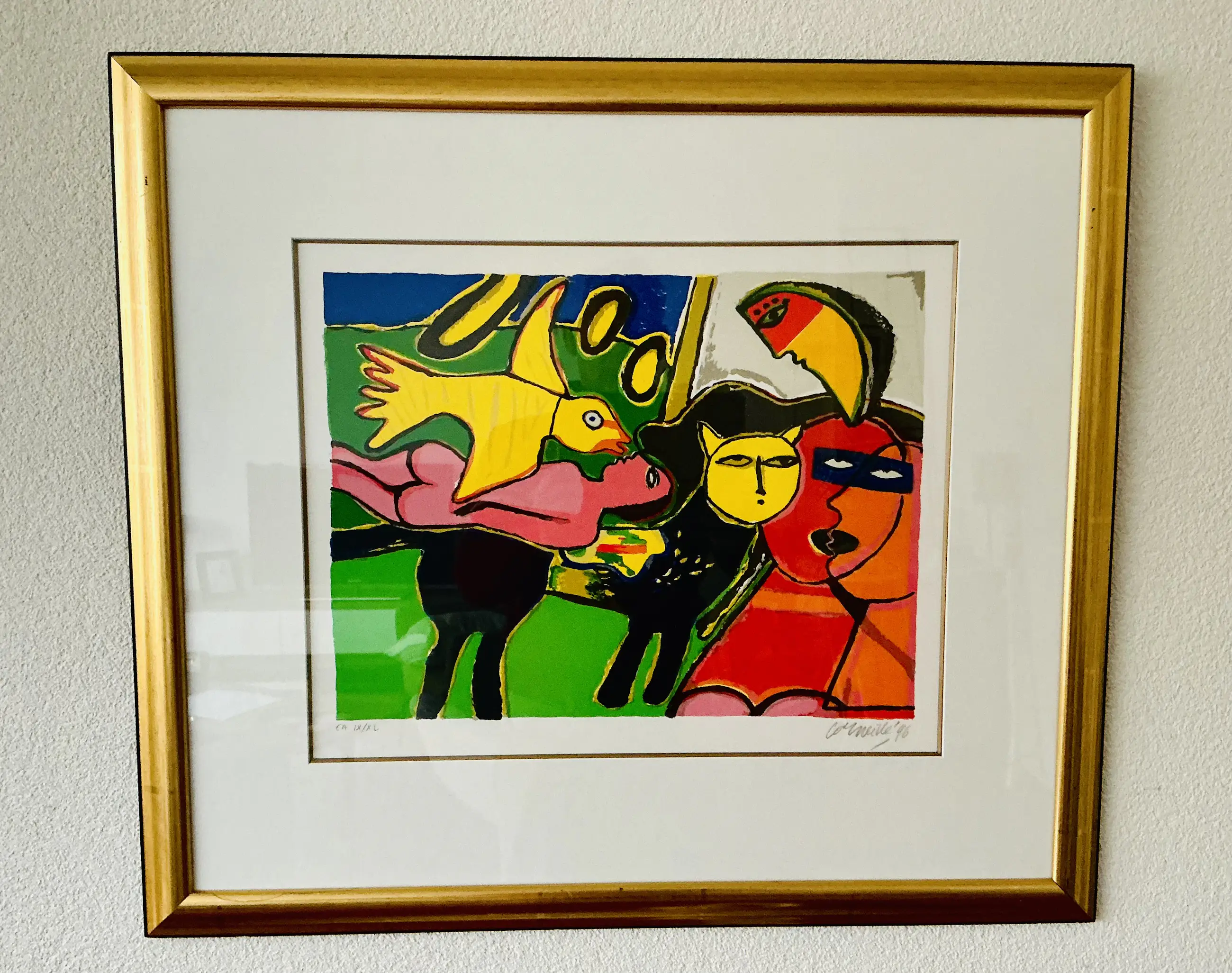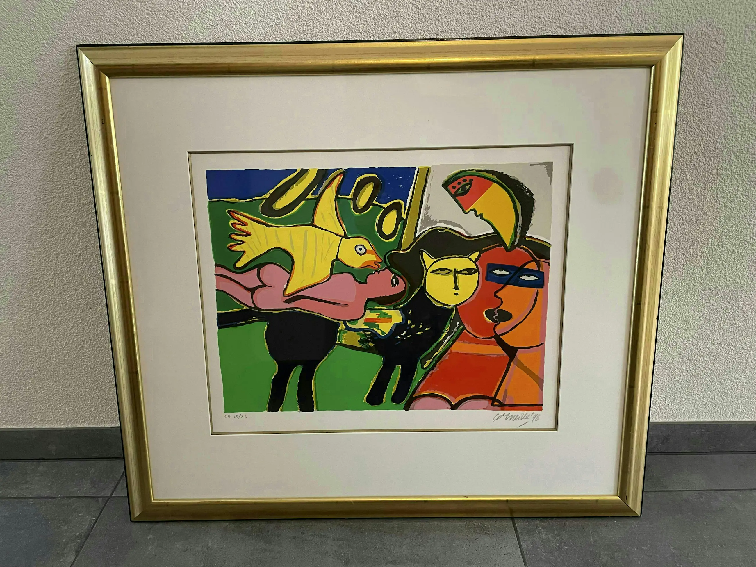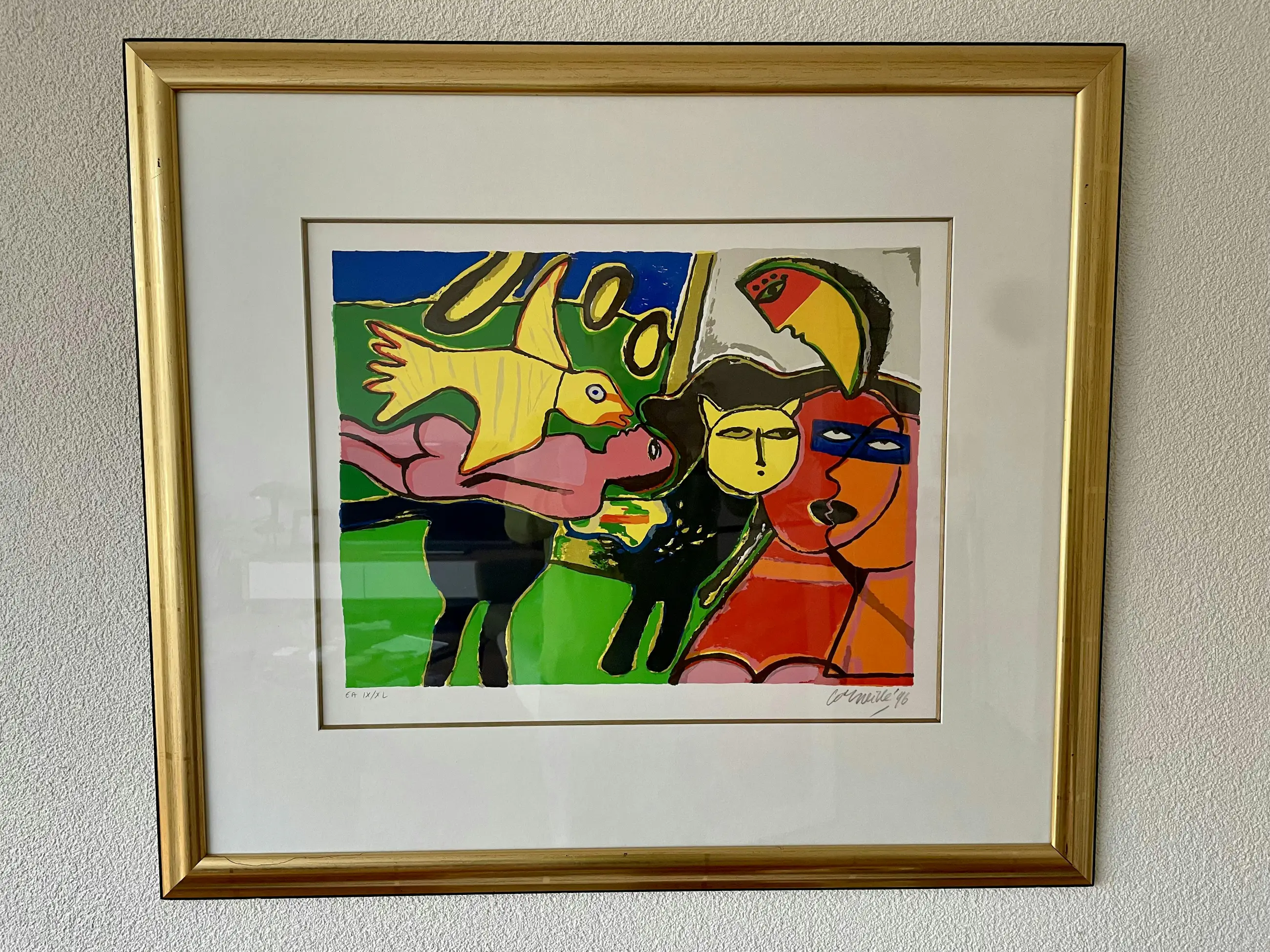 Corneille - Zeefdruk EAIX/XL - Vrouw met vogel - Ingelijst