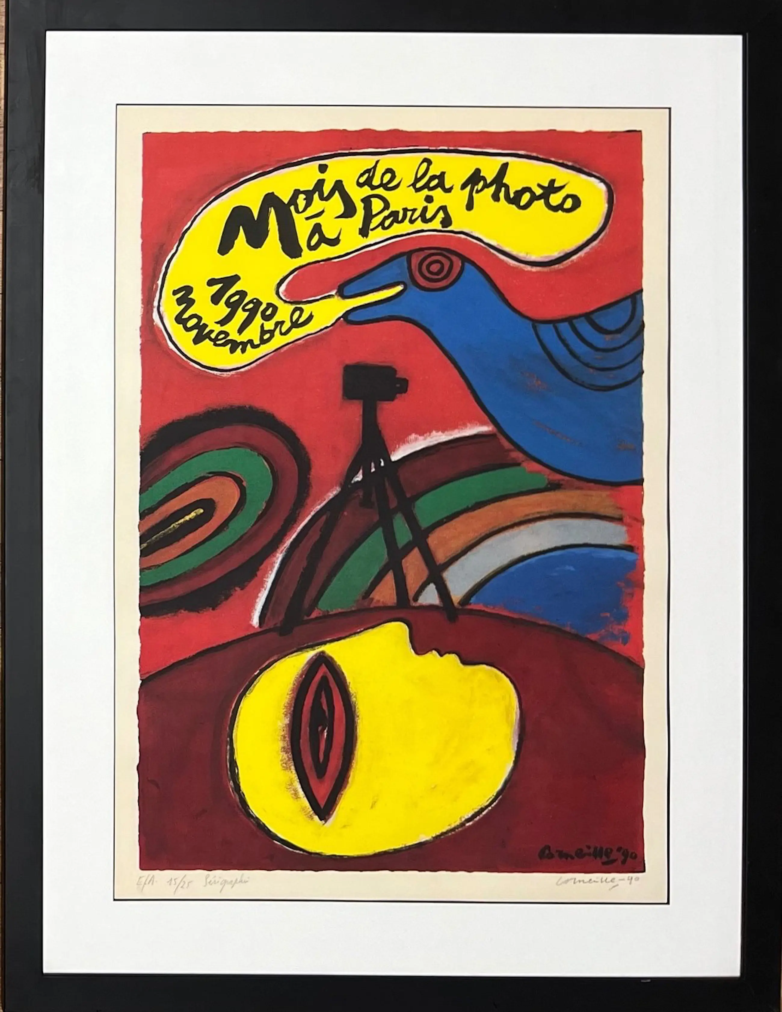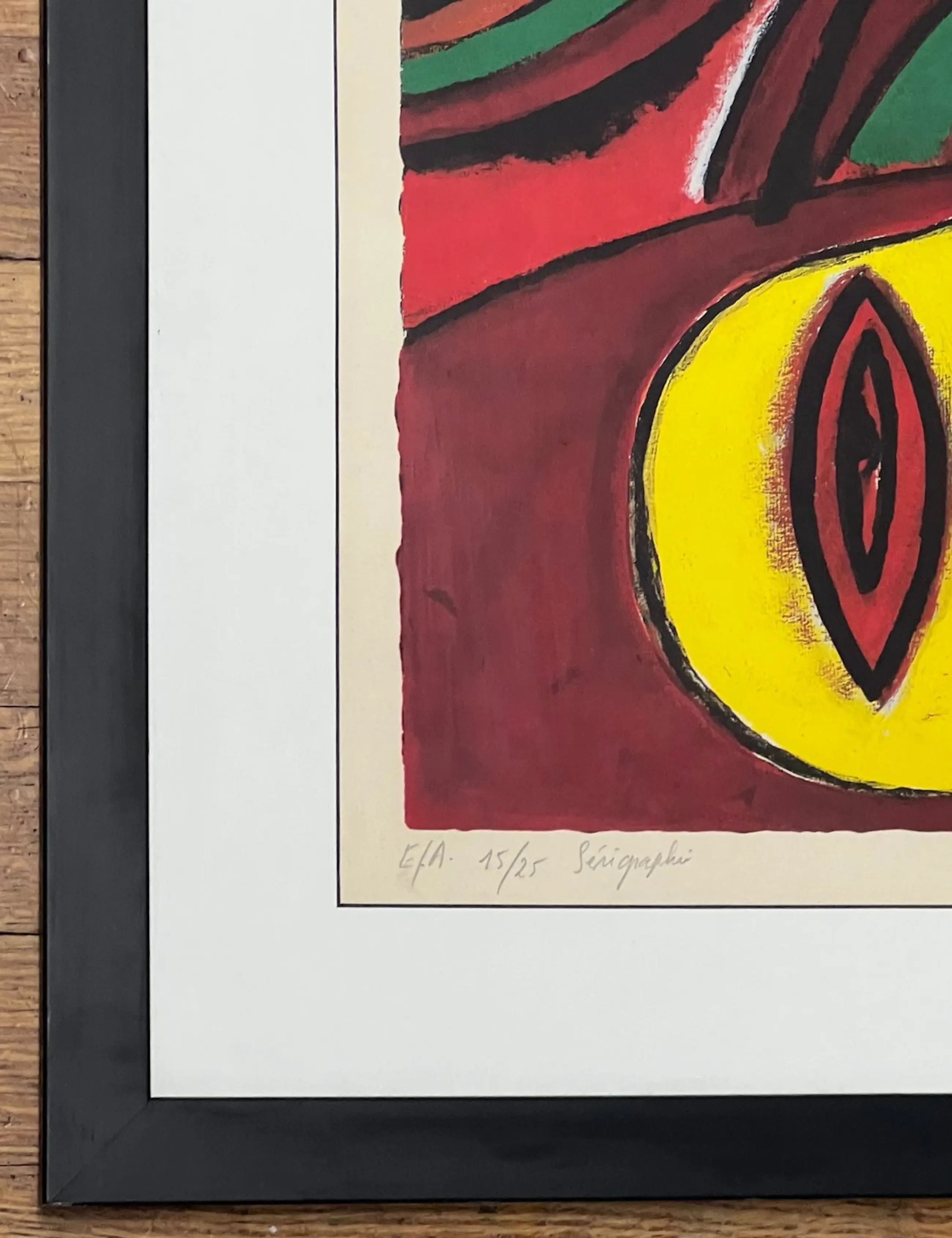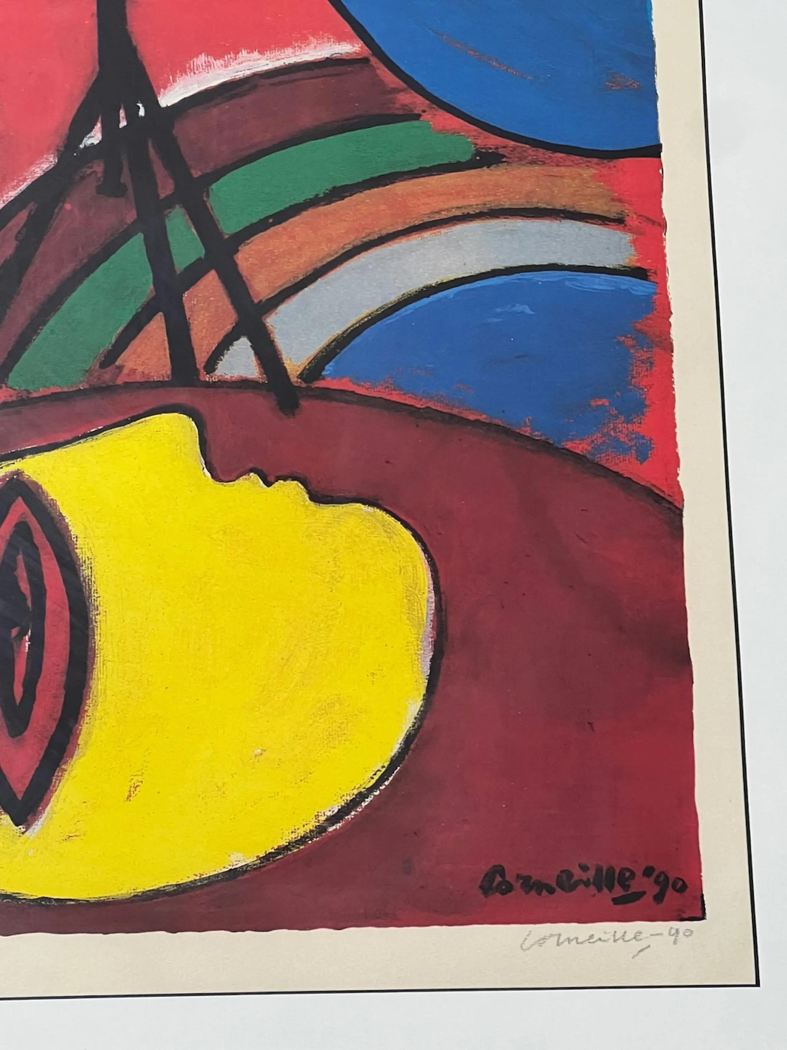 Originele zeefdruk van de schilder Guillaume Corneille, geboren in Luik van Nederlandse ouders en een van de oprichters van de Cobra-groep.