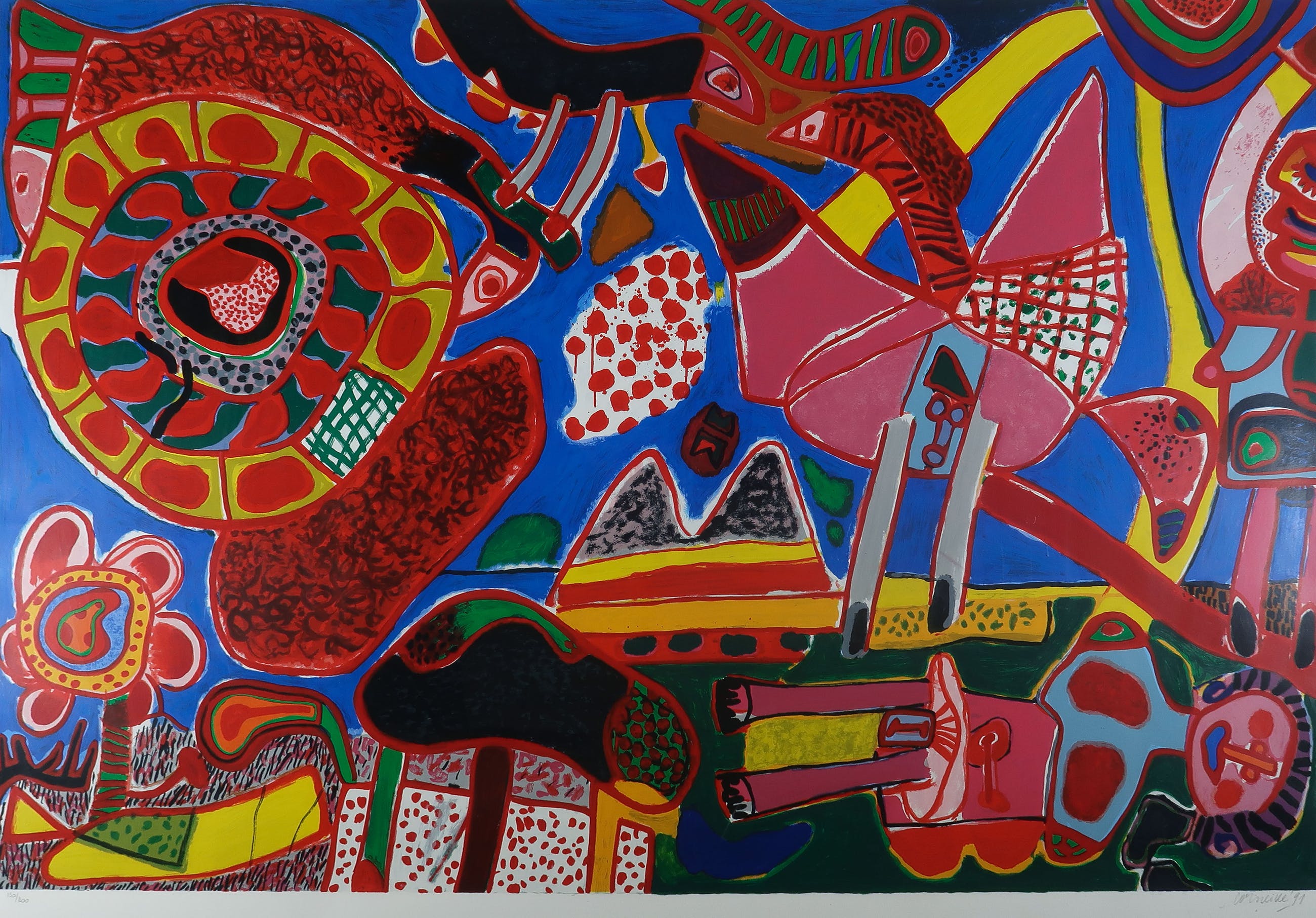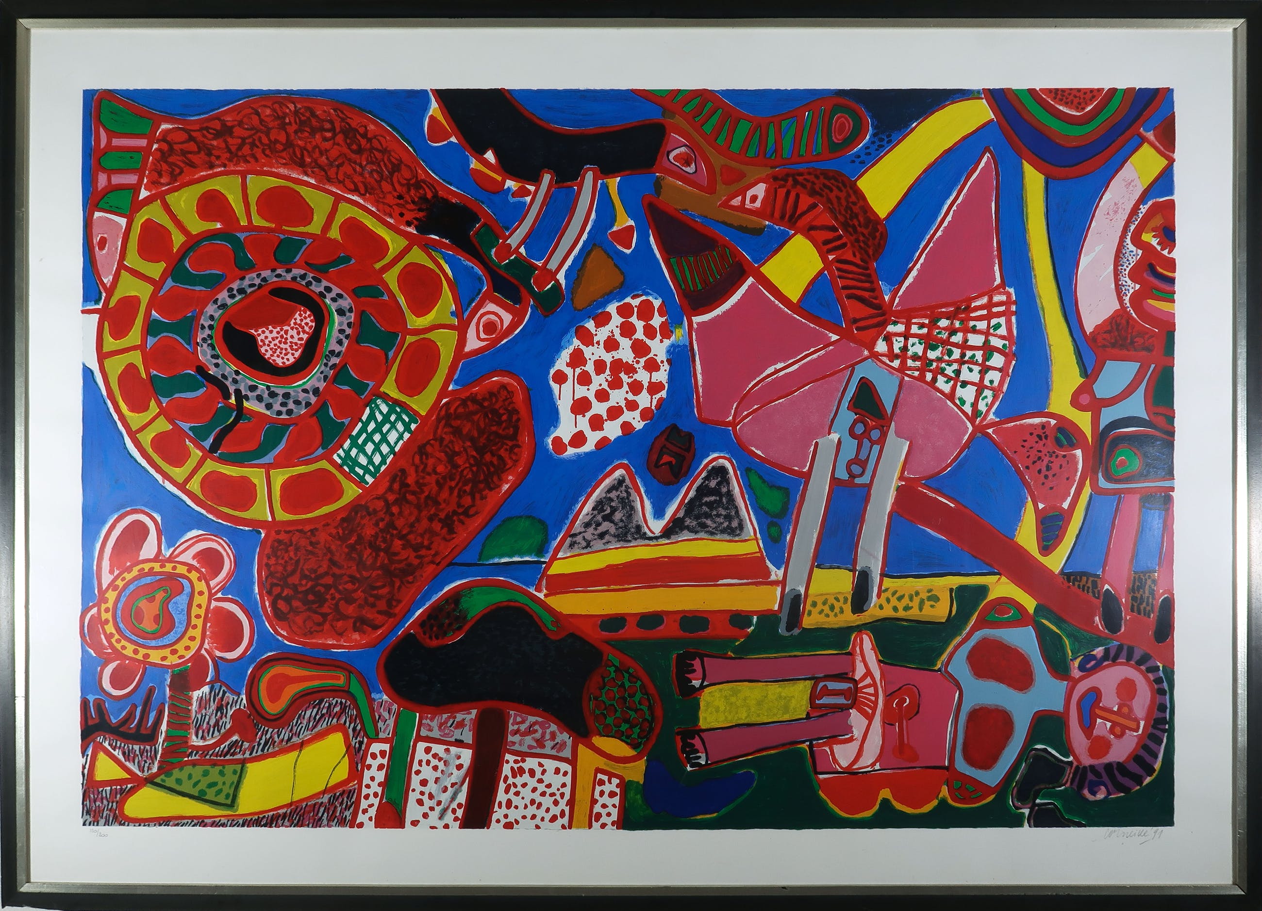 Kapitale zeefdruk ''Le Jardin des Délices'' van Corneille. Deze zeefdruk is nummer 130 uit een oplage van 200, handgesigneerd rechtsonder.