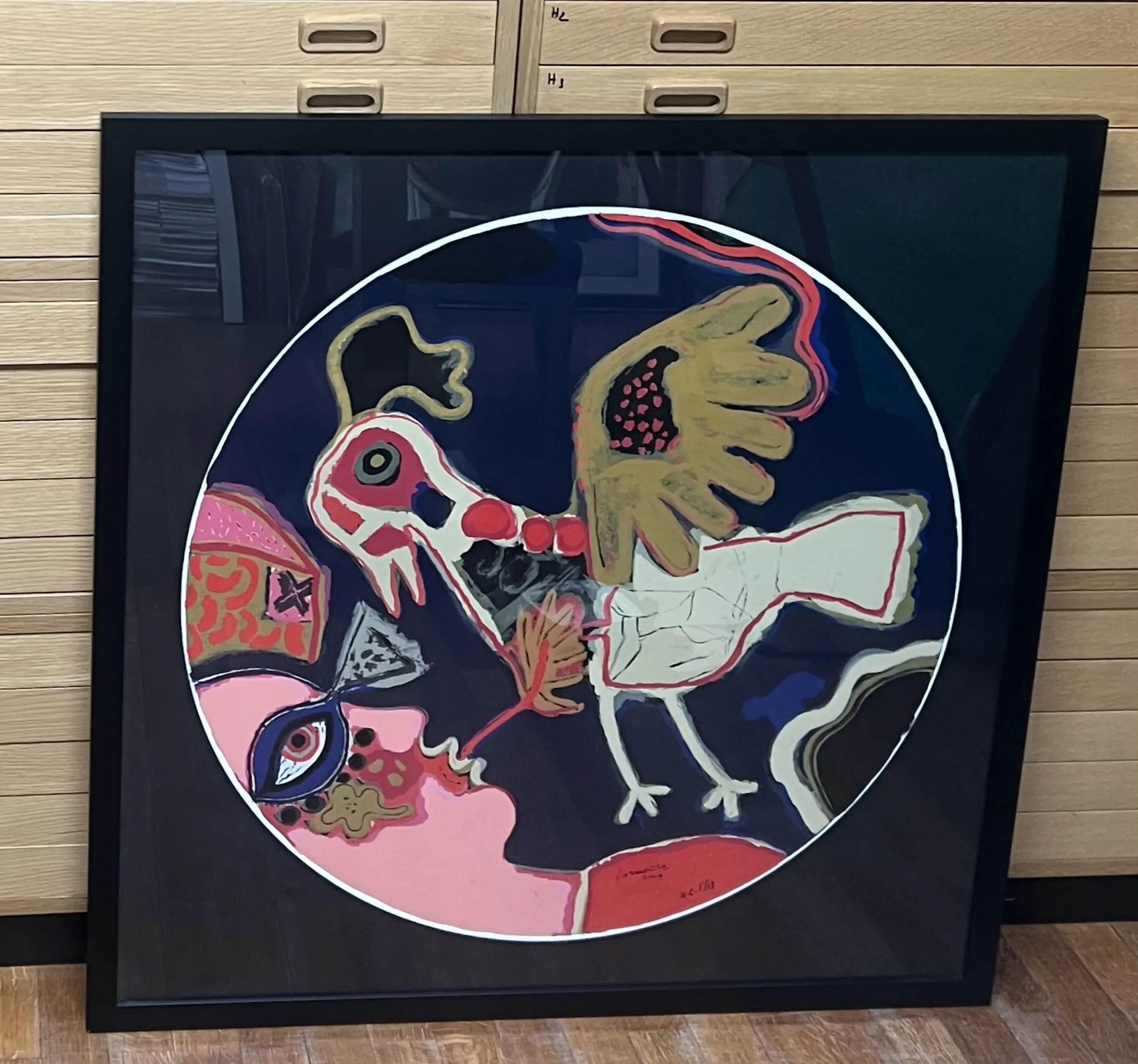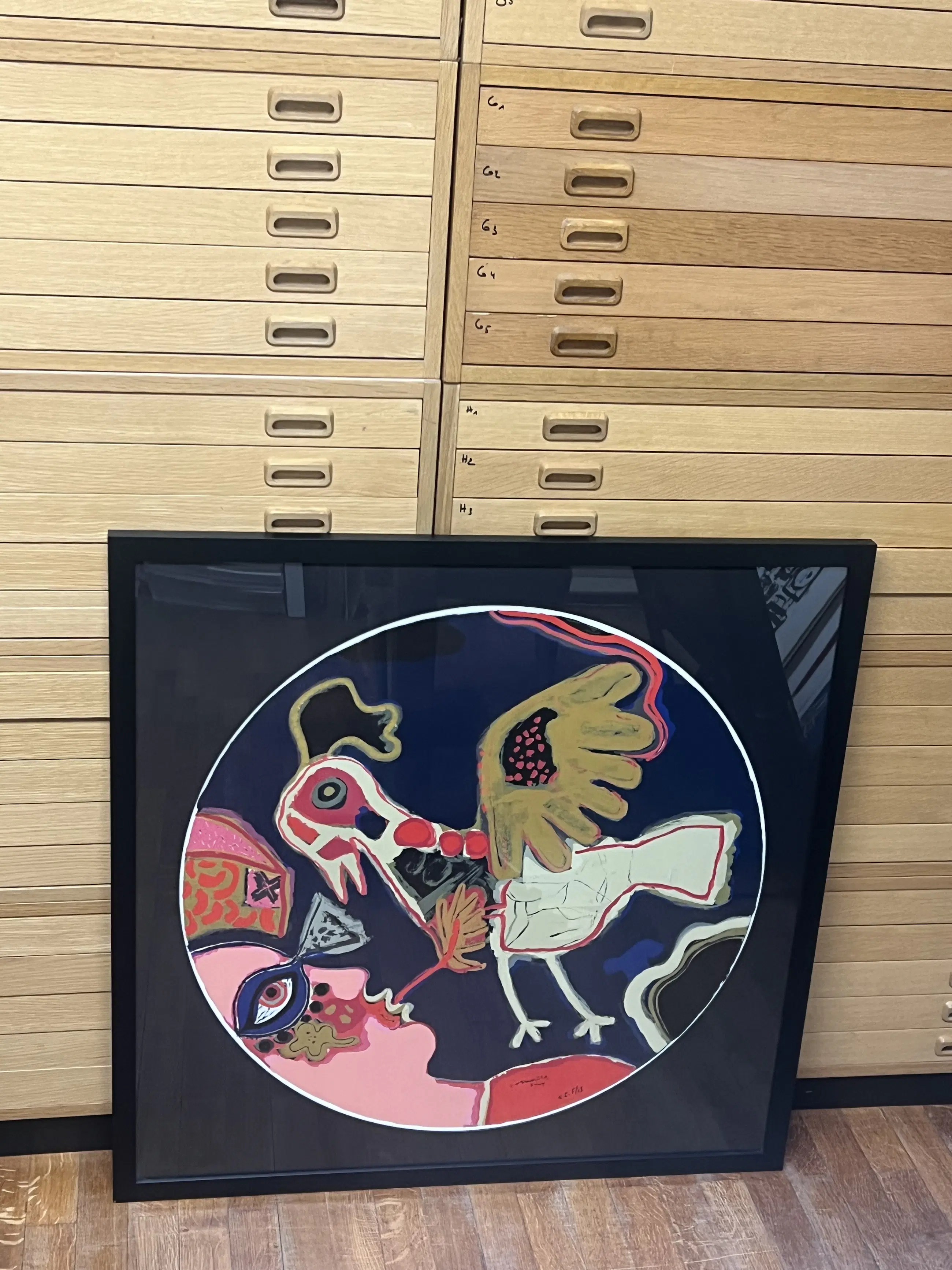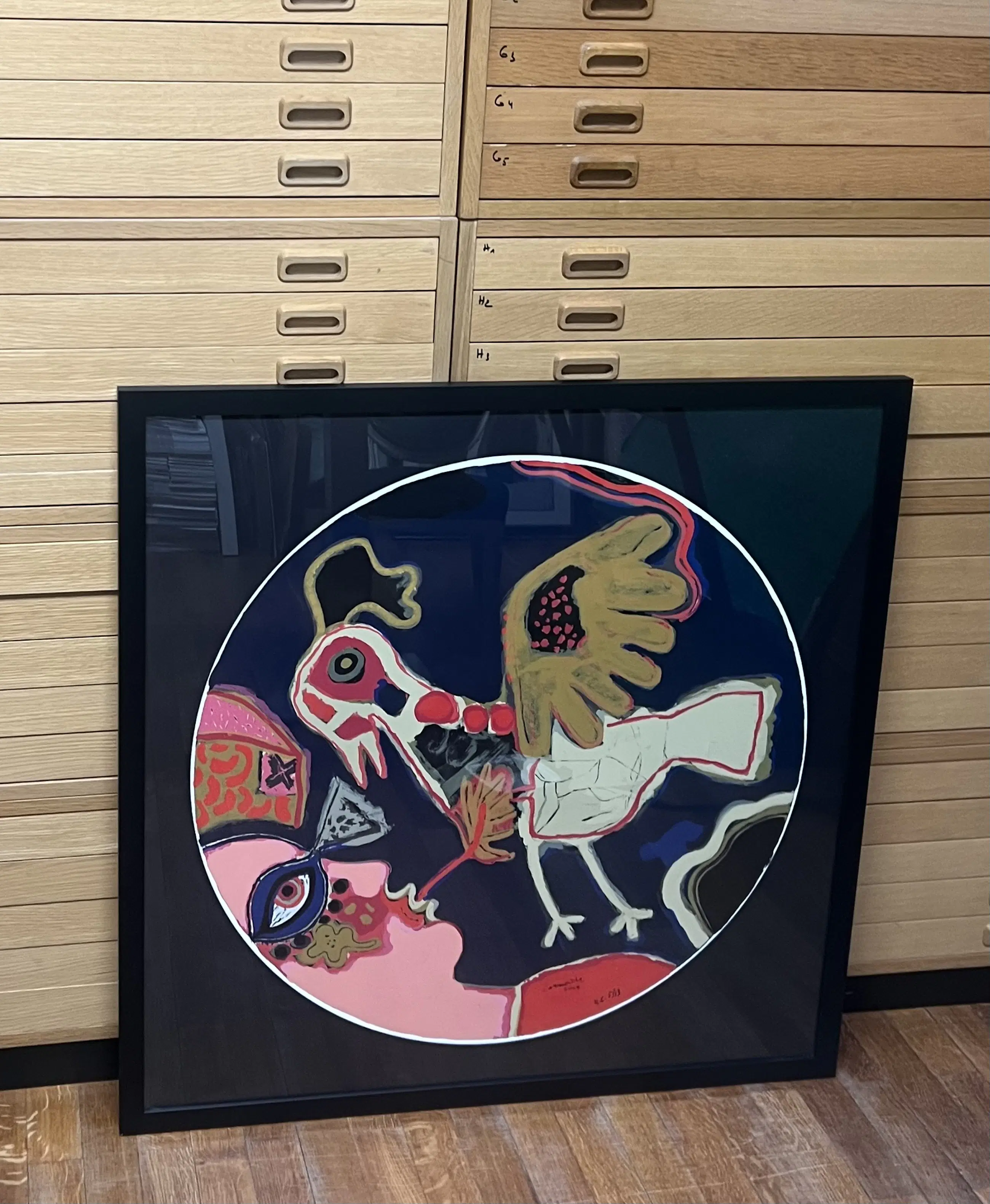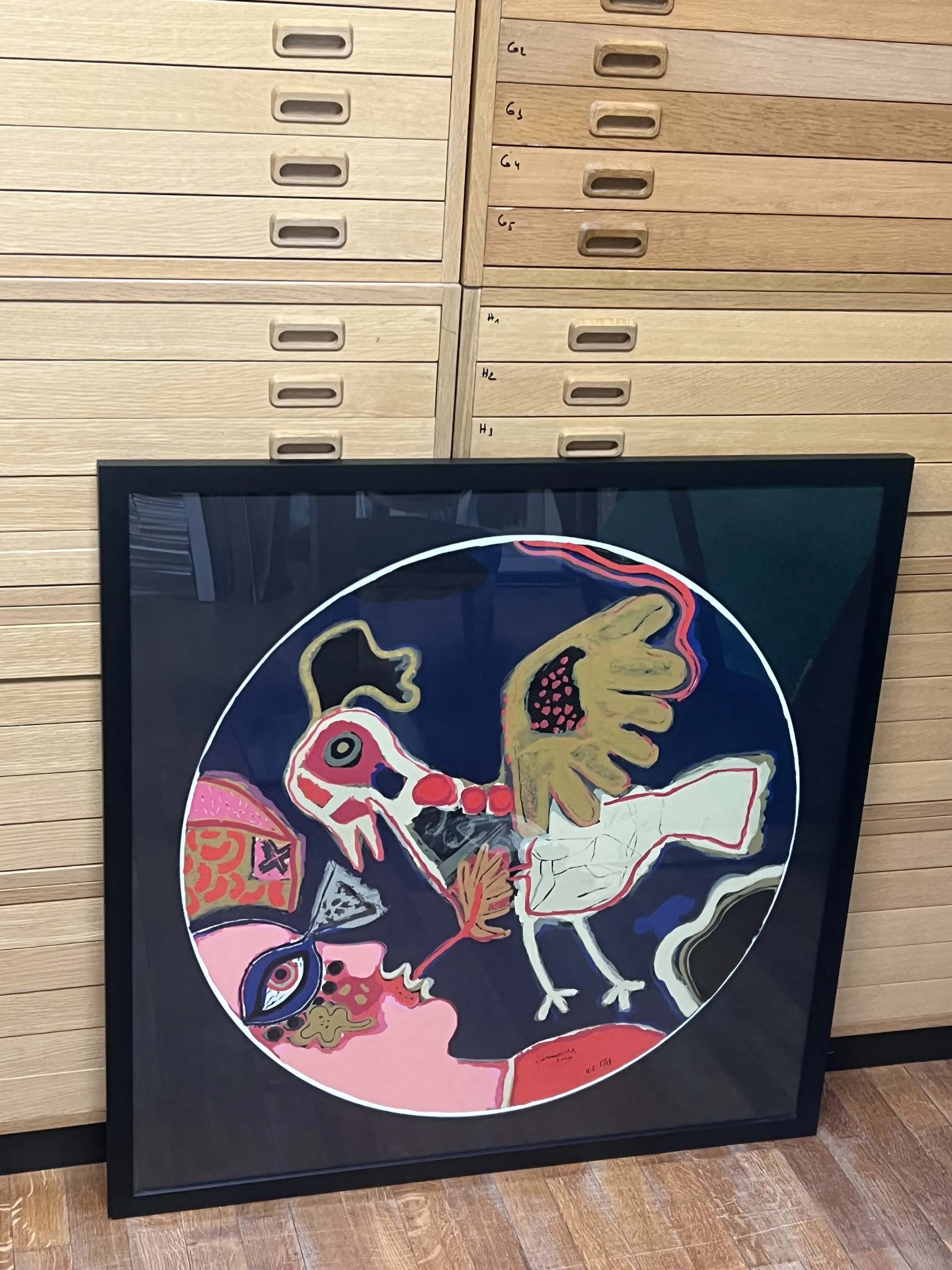 Prachtig grootformaat werk van Guillaume Corneille in de vorm van een tondo. .