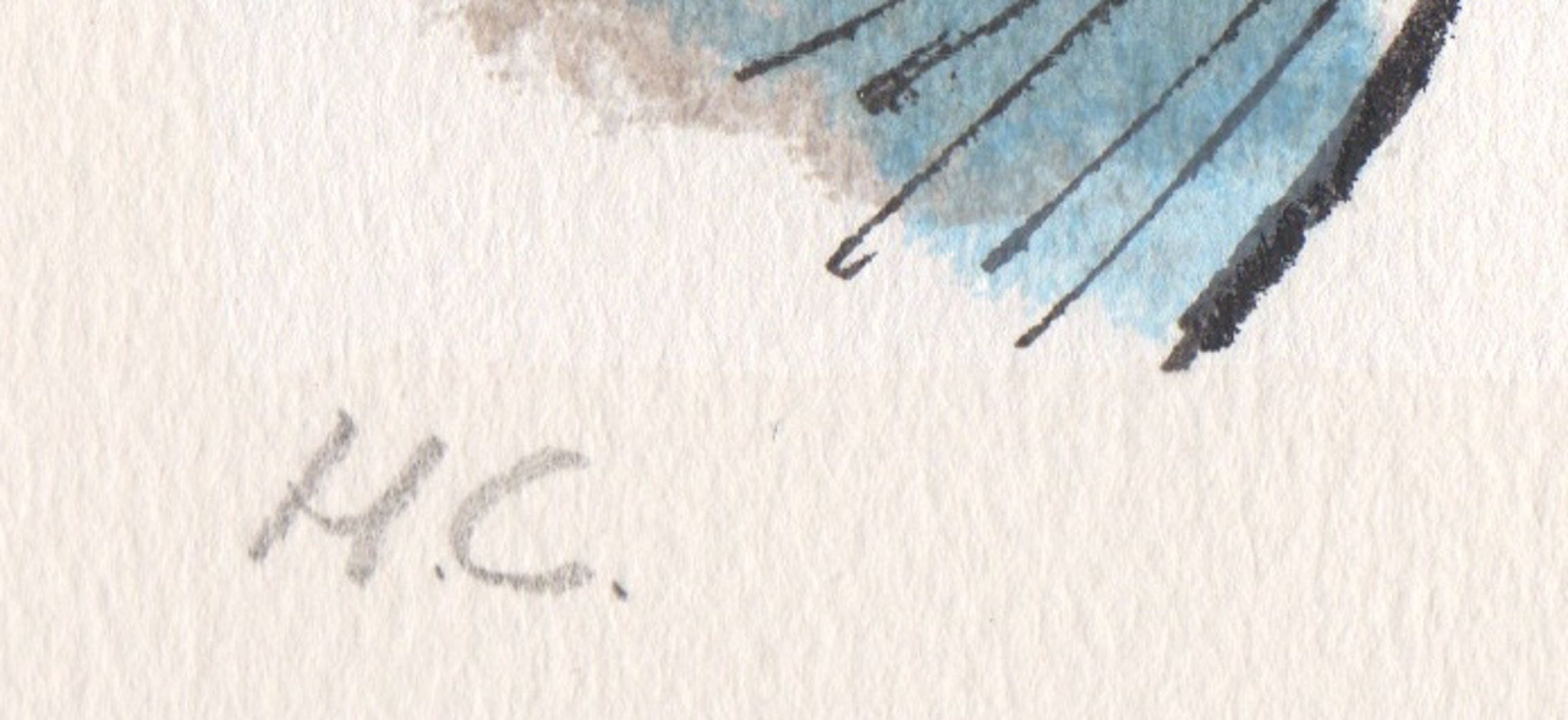 Afmeting van het blad is 26 x 33cm. Afmeting van het beeld is 15 x 21cm.