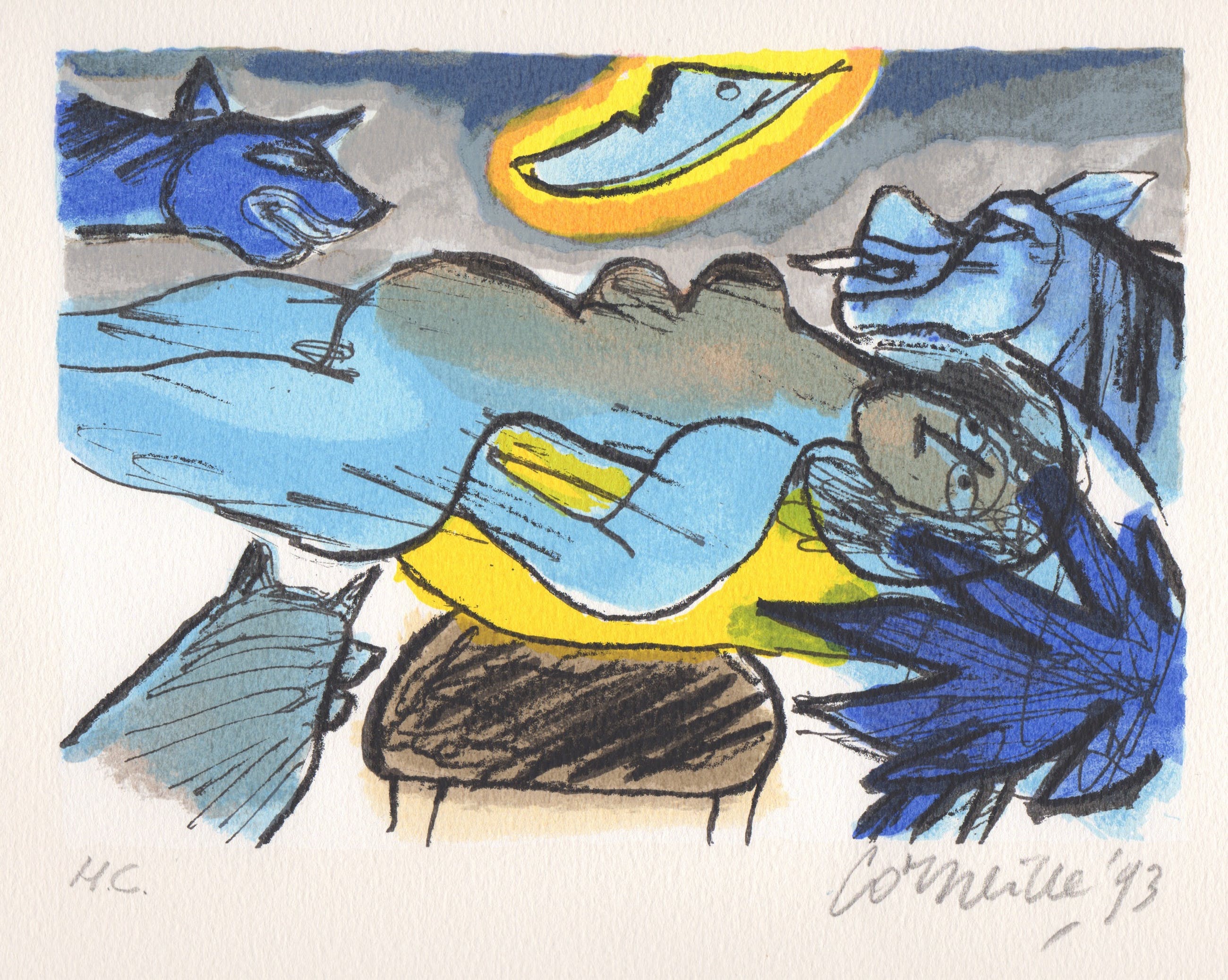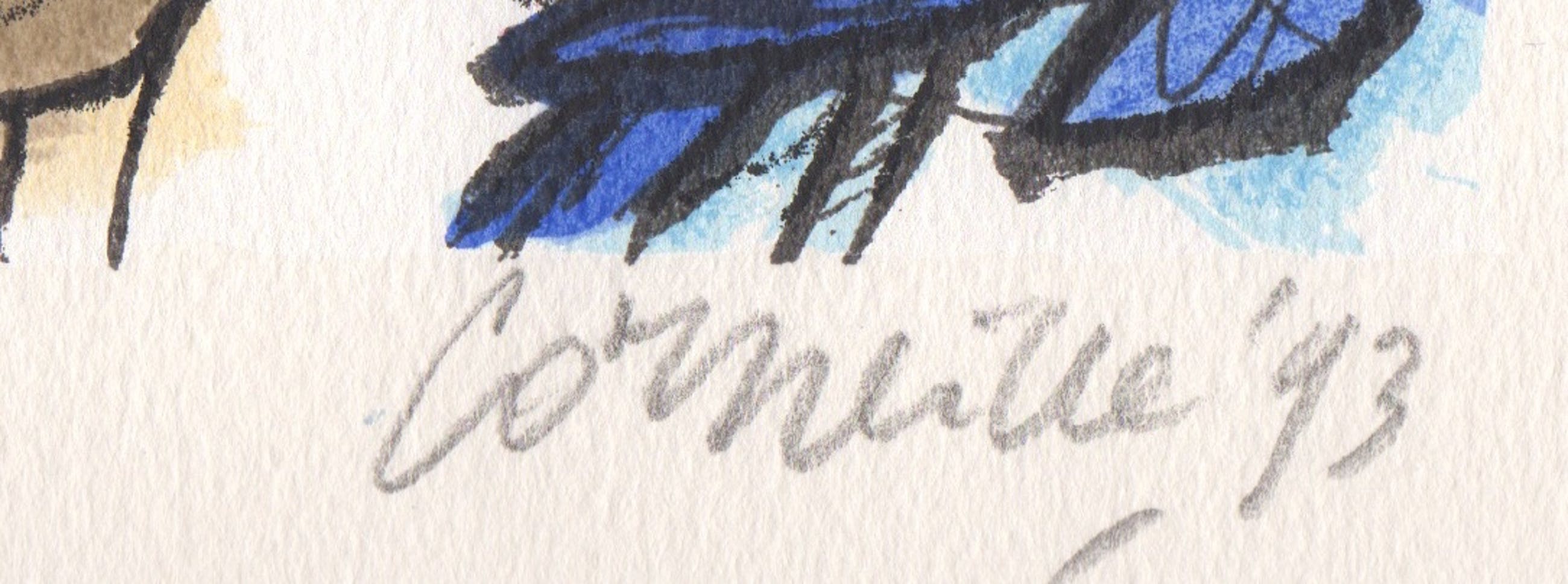 Mooie kleurrijke zeefdruk van de hand van Corneille. Door hem gemaakt naar aanleiding van één van zijn reizen naar het eiland Bali.