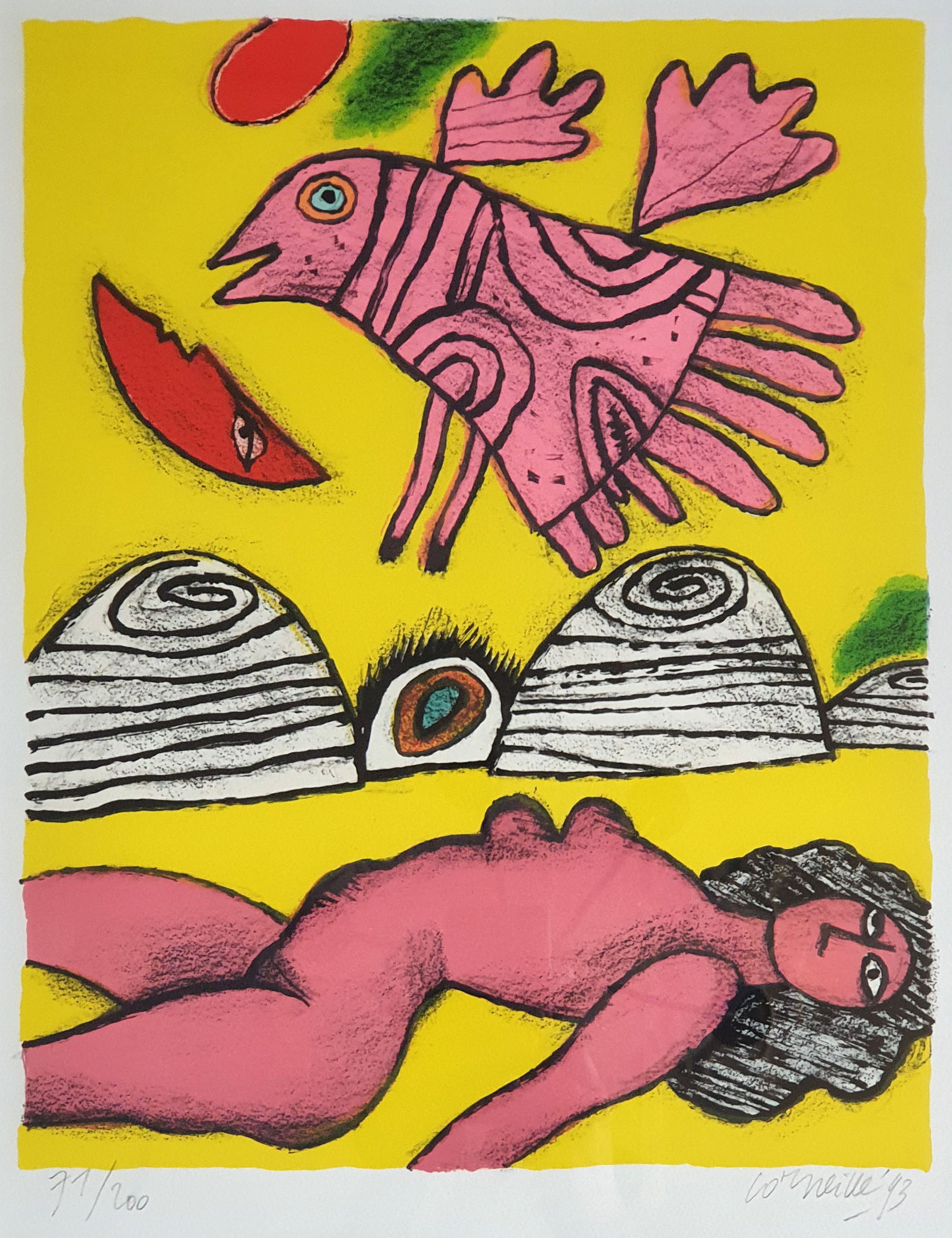 Zeer fraaie litho van Corneille uit 1993. Het werk is rechts onderaan, met potlood, gesigneerd door de kunstenaar.