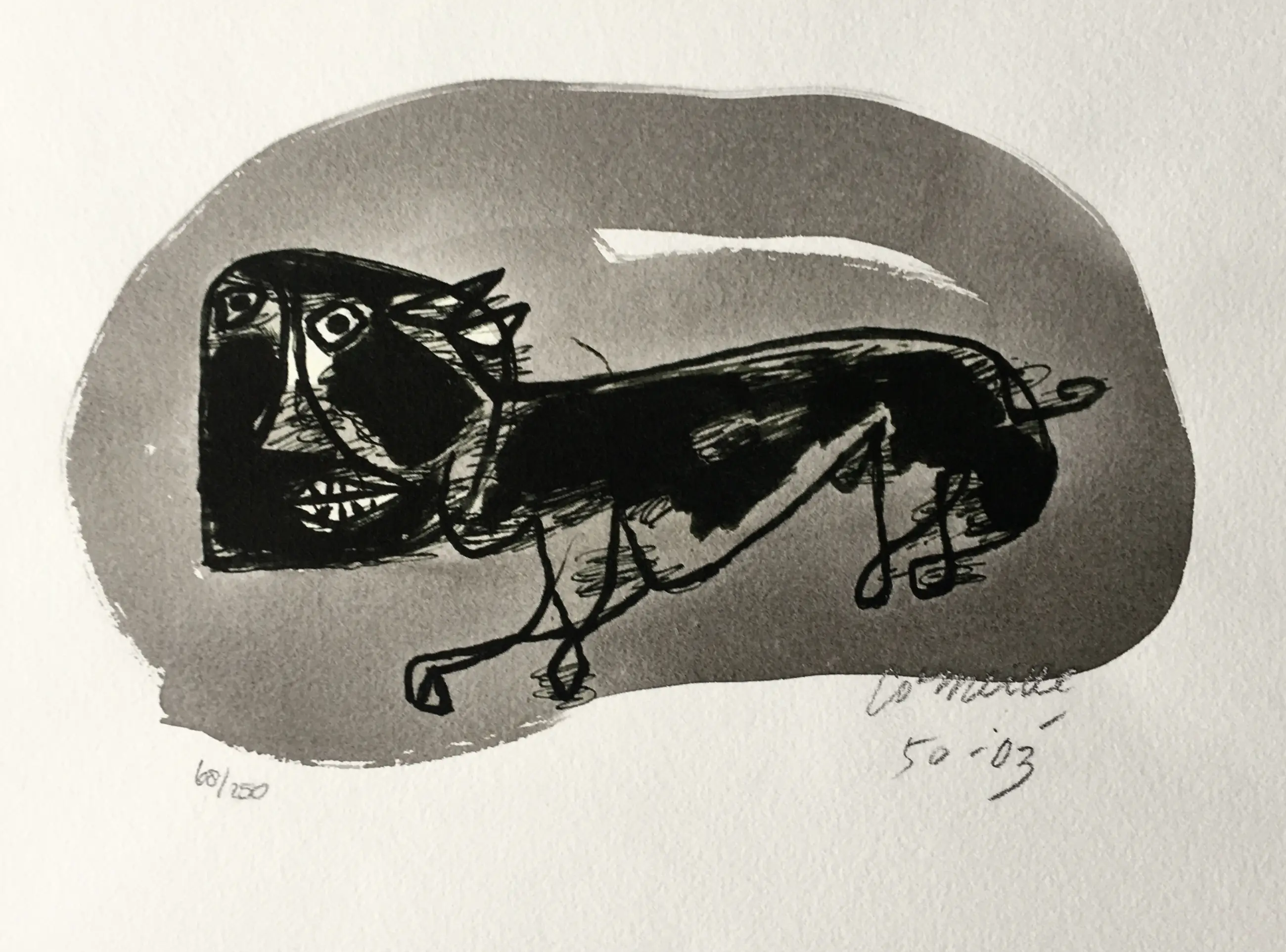 Een fraaie zeefdruk van Corneille met aquarel ondergrond. Uitgebracht naar in 2003,?naar het origineel uit 1950. Het werk is gesigneerd en genummerd, oplage 200.