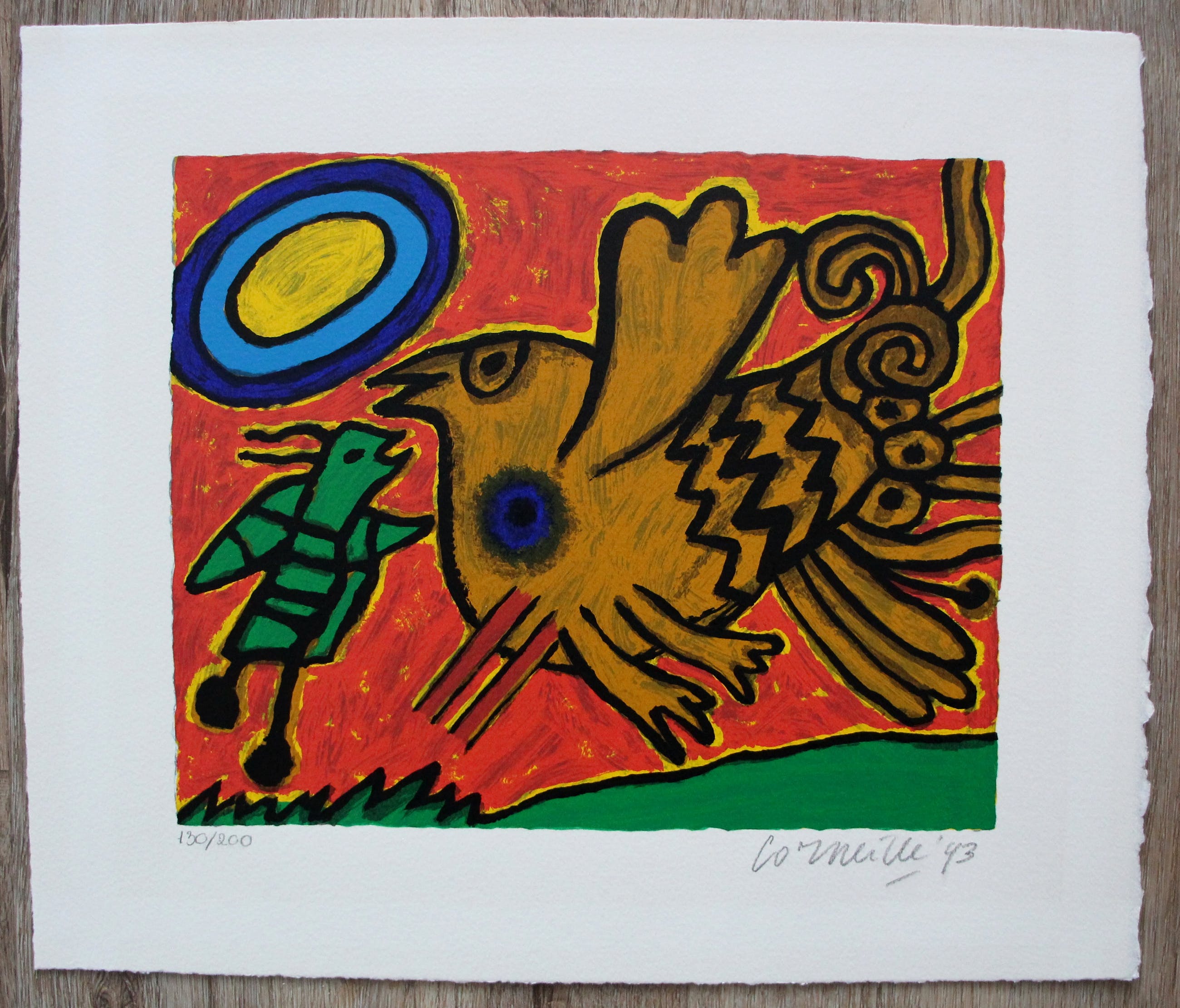 Zeefdruk van Corneille uit 1993. Nummer: 130/200. Afmeting voorstelling: H22 x b 27 cm. De authenticiteit van het aangeboden werk wordt volledig gegarandeerd. Een certificaat van echtheid kan, op aanvraag, worden gemaild.
