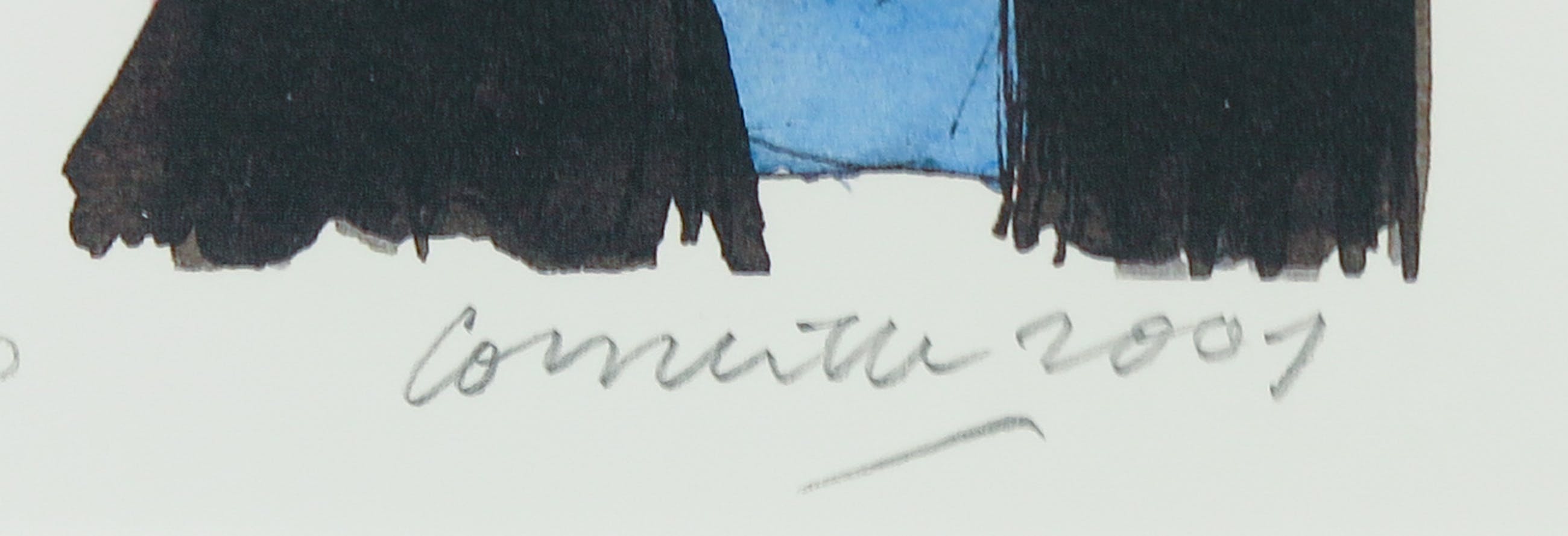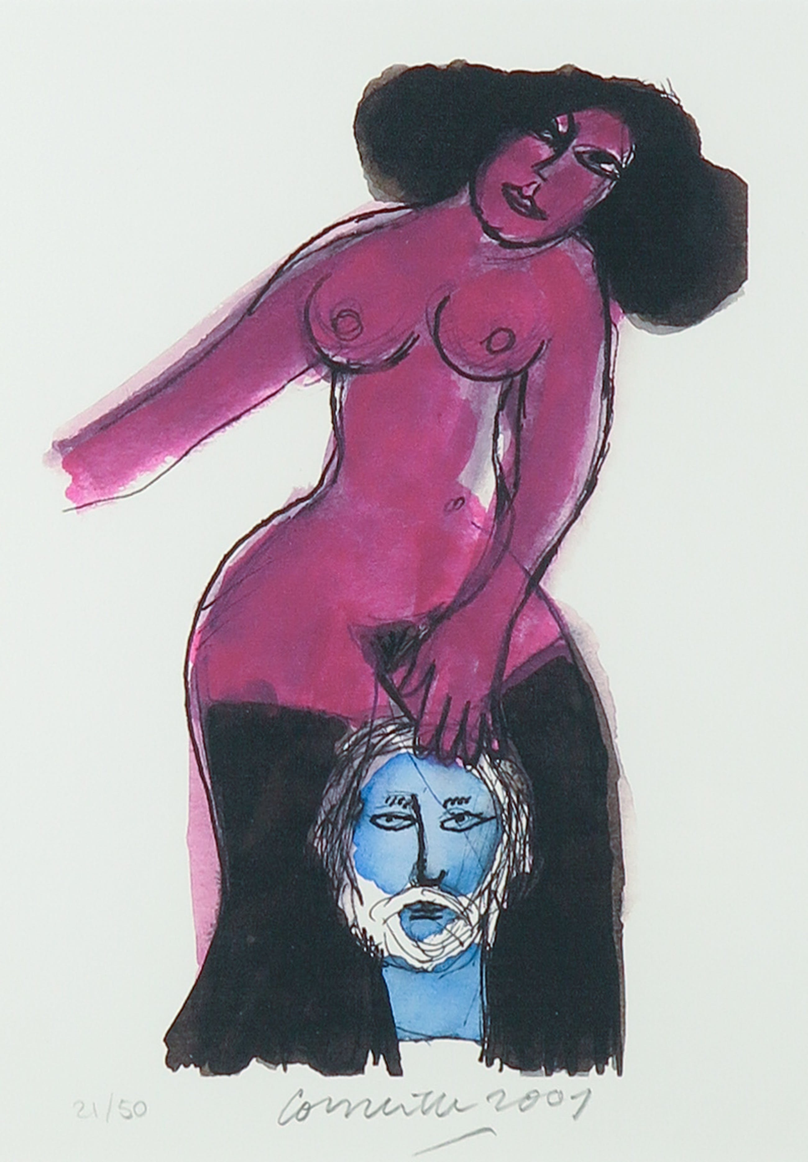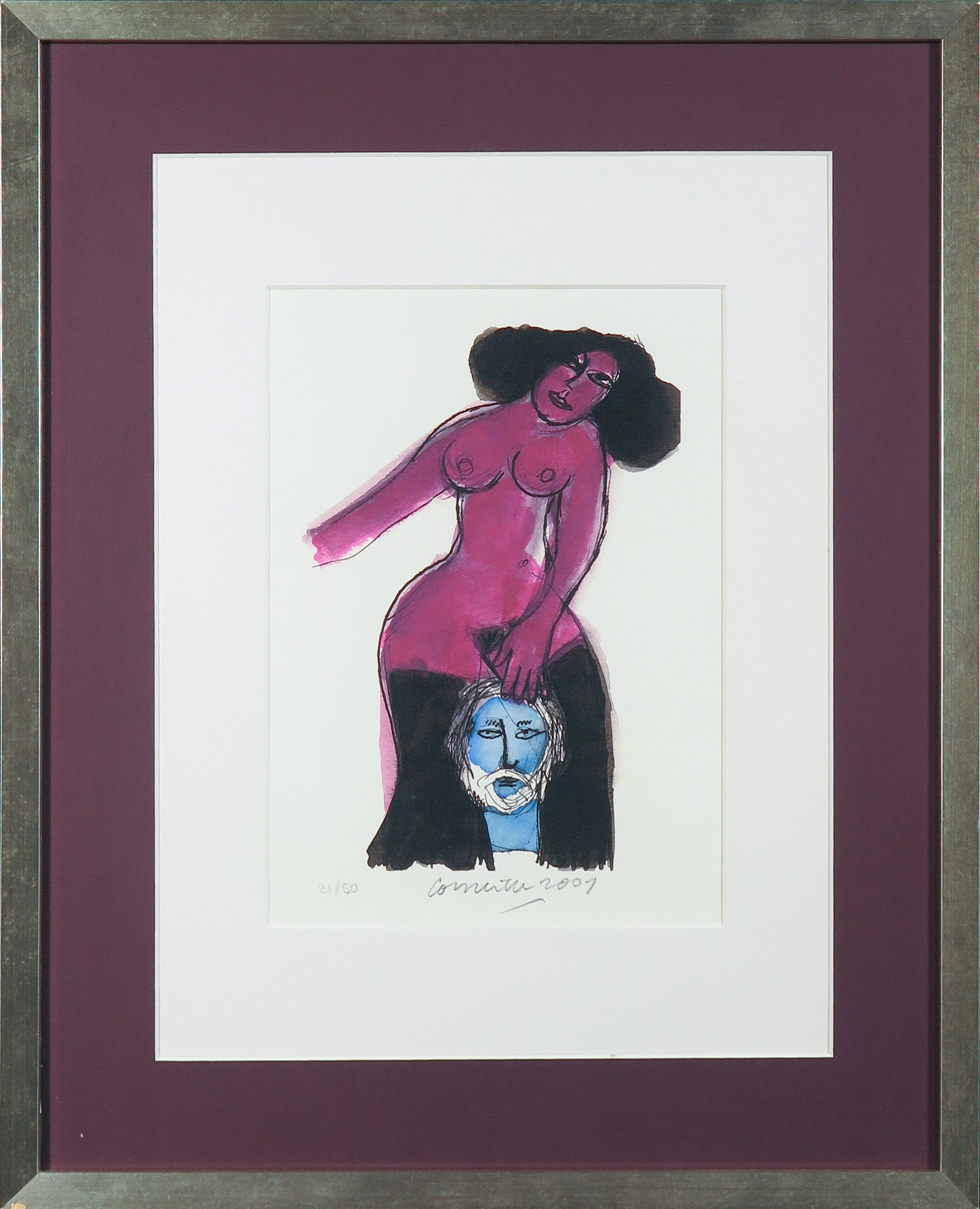 Ingelijste zeefdruk van Corneille met bijpassend paars passe-partout.