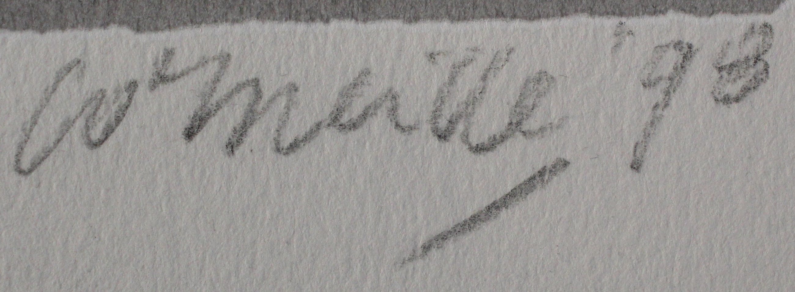 In goede staat. Onderin de beide hoeken zit een kleine vouw. Goed ingelijst, valt dit in de lijst/onder de passepartout.