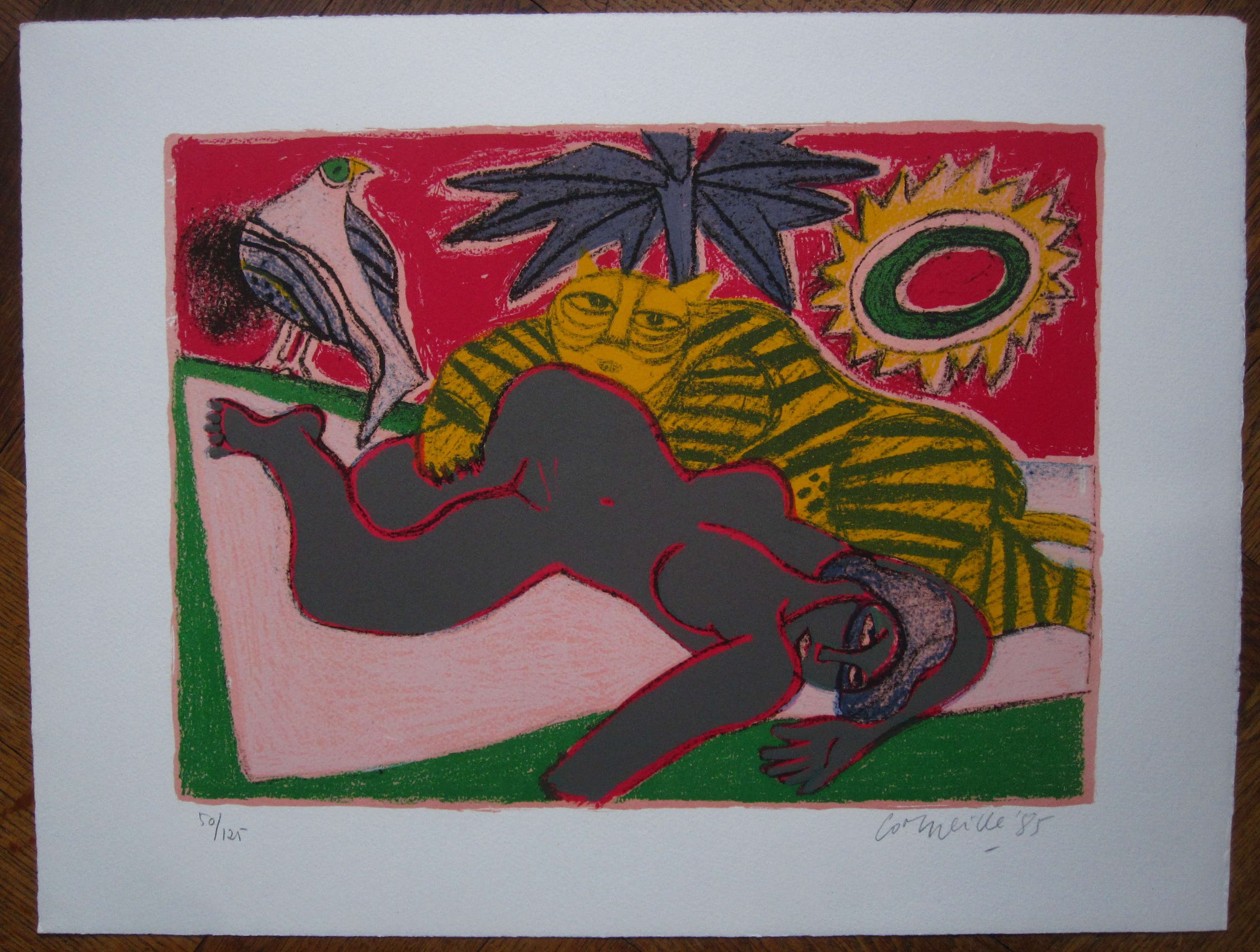 Corneille, zeefdruk titel Tigres Amoureux beeldfomaat 28.5 X 38 cm. bladformaat 38 /50 cm. kosten verzending in NL € 10.00