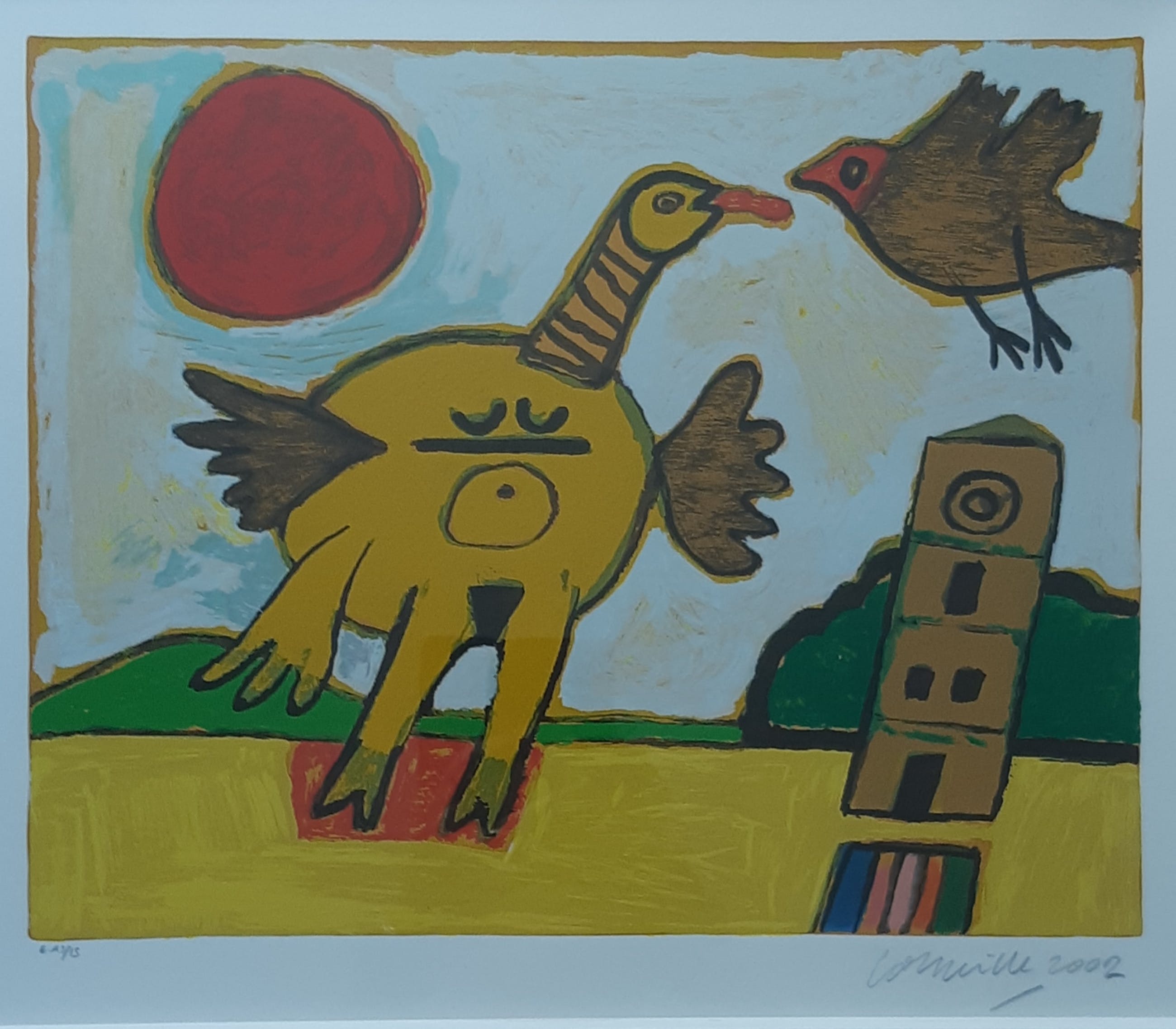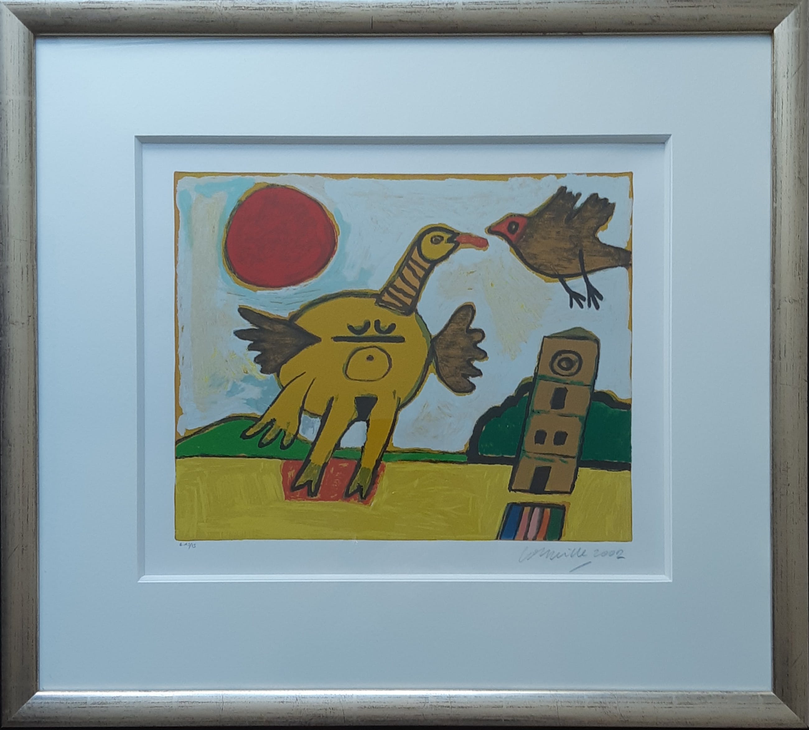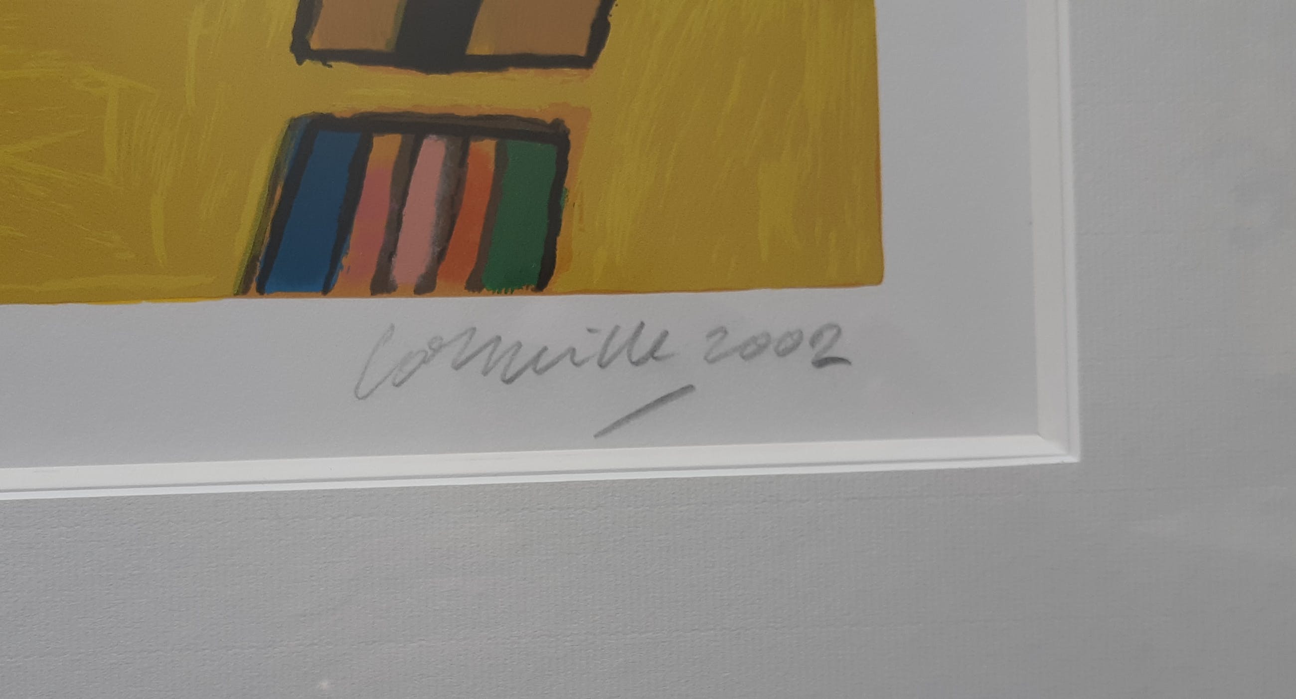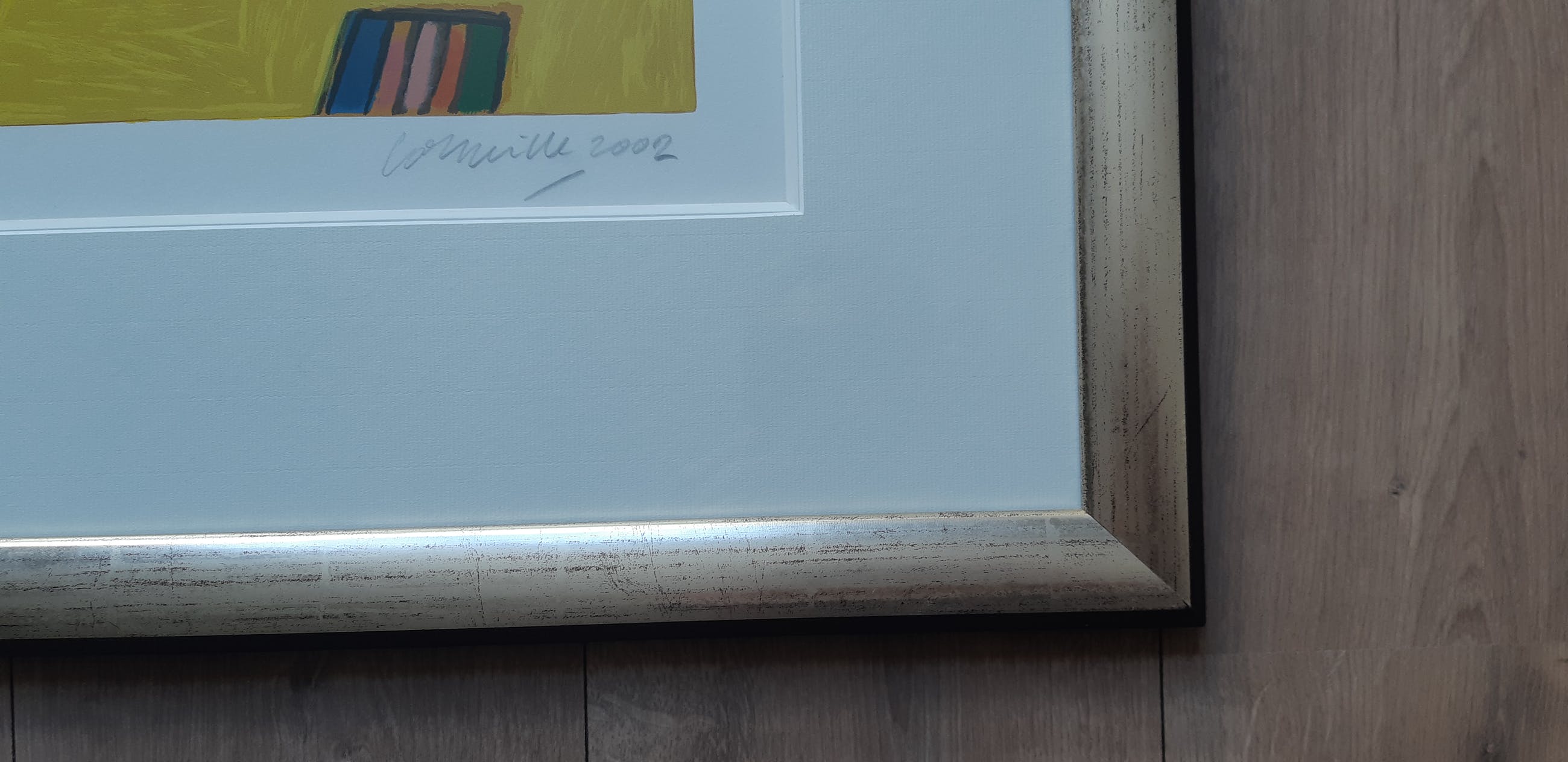Professioneel en smaakvol ingelijste zeefdruk van Corneille uit 2002. Het geheel is voorzien van een verdiept Passe-partout. Gesigneerd en genummerd in potlood door de kunstenaar. Dit is een Epreuve D'artiste en nummer 3 van 15. De reguliere oplage bestond uit slechts 75 exemplaren. Erg fraai geheel!!