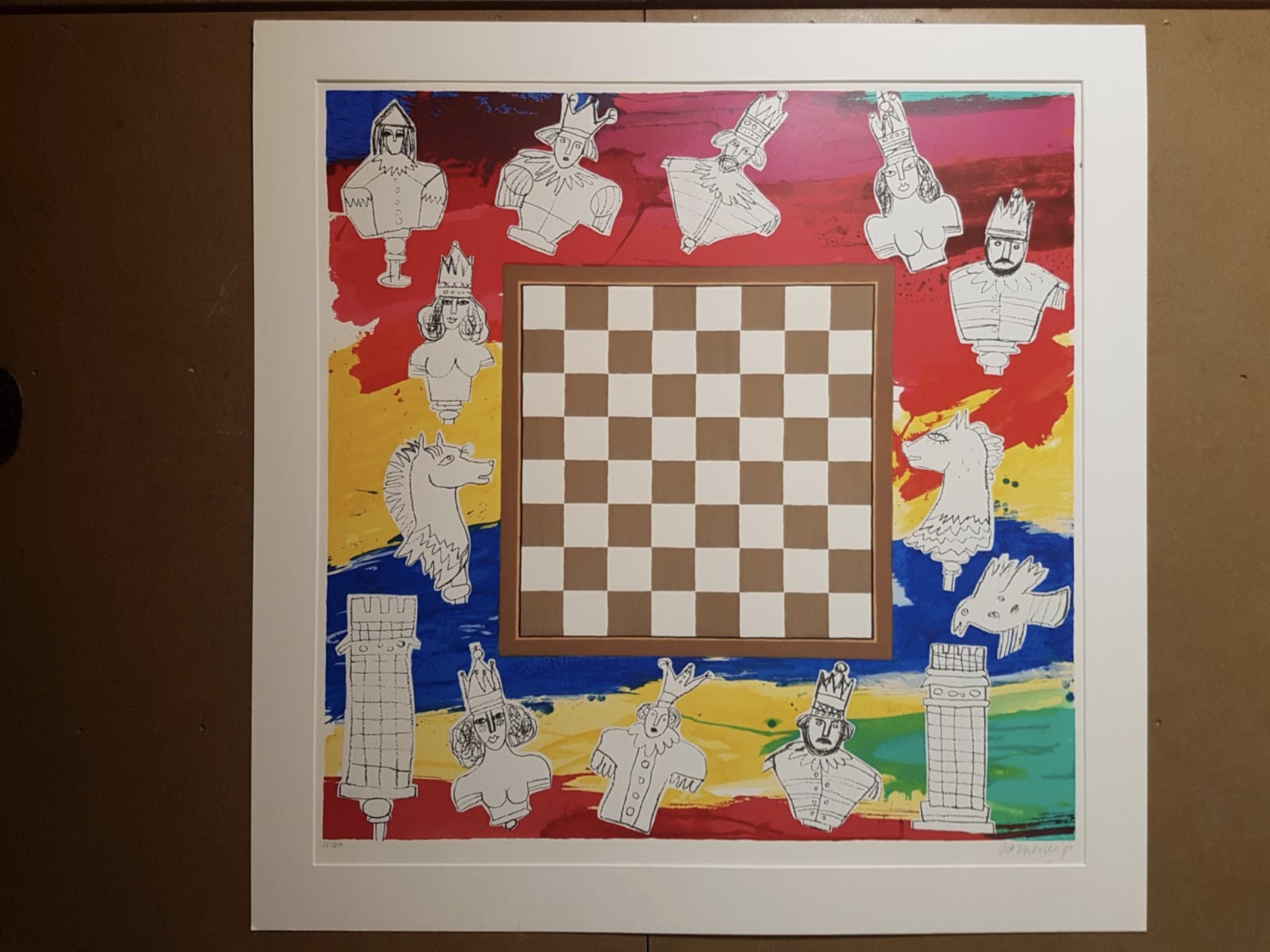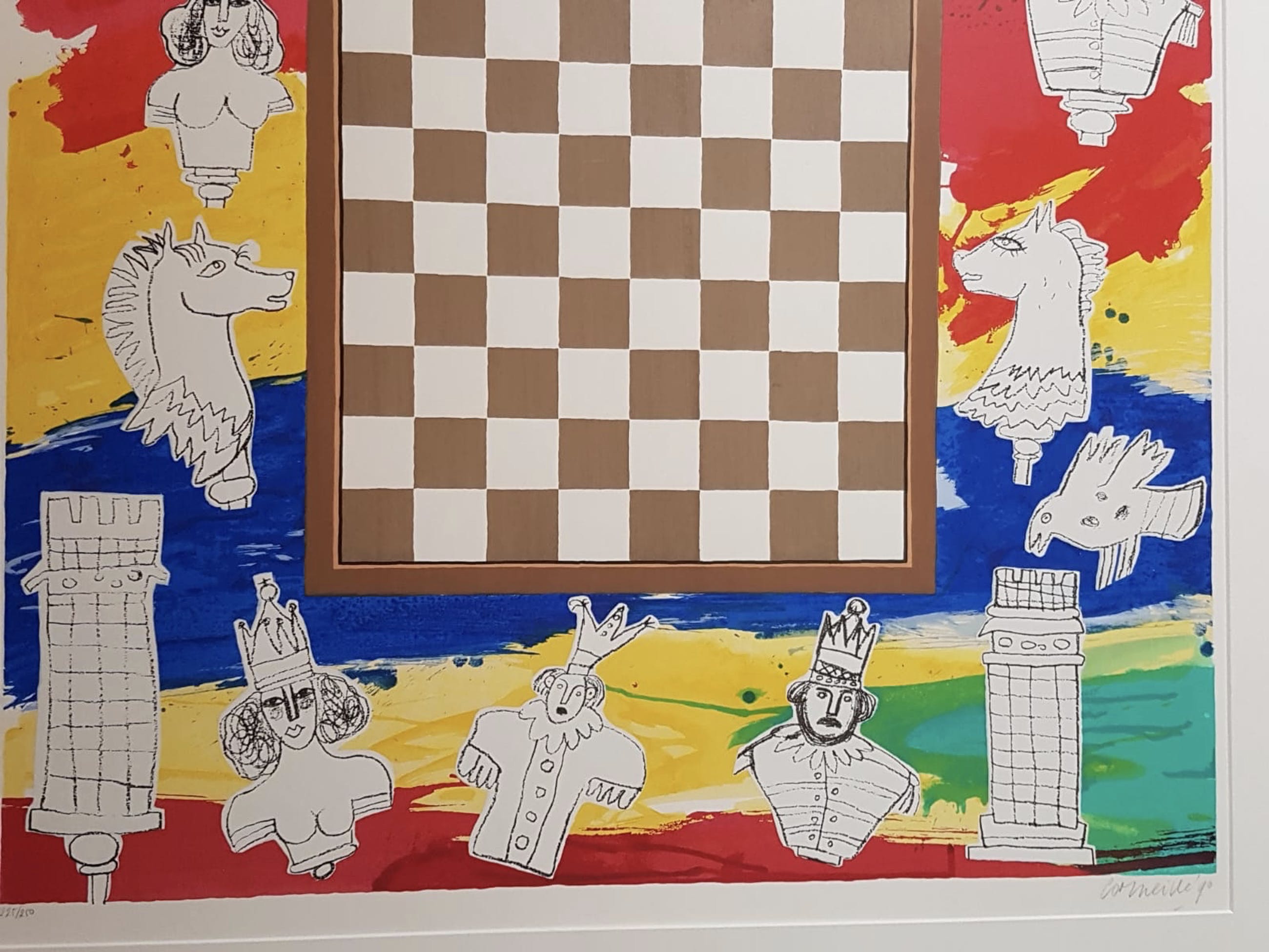 Corneille 1922-2010 (Guillaume Corneille van Beverloo) Lid van de Cobra Groep Zeer grote kleurenlitho handgesigneerde gedateerd 1990 en genummerd 225/250 Genaamd: Schaakbord Prachtige staat Gezien de grootte van de litho graag ophalen.