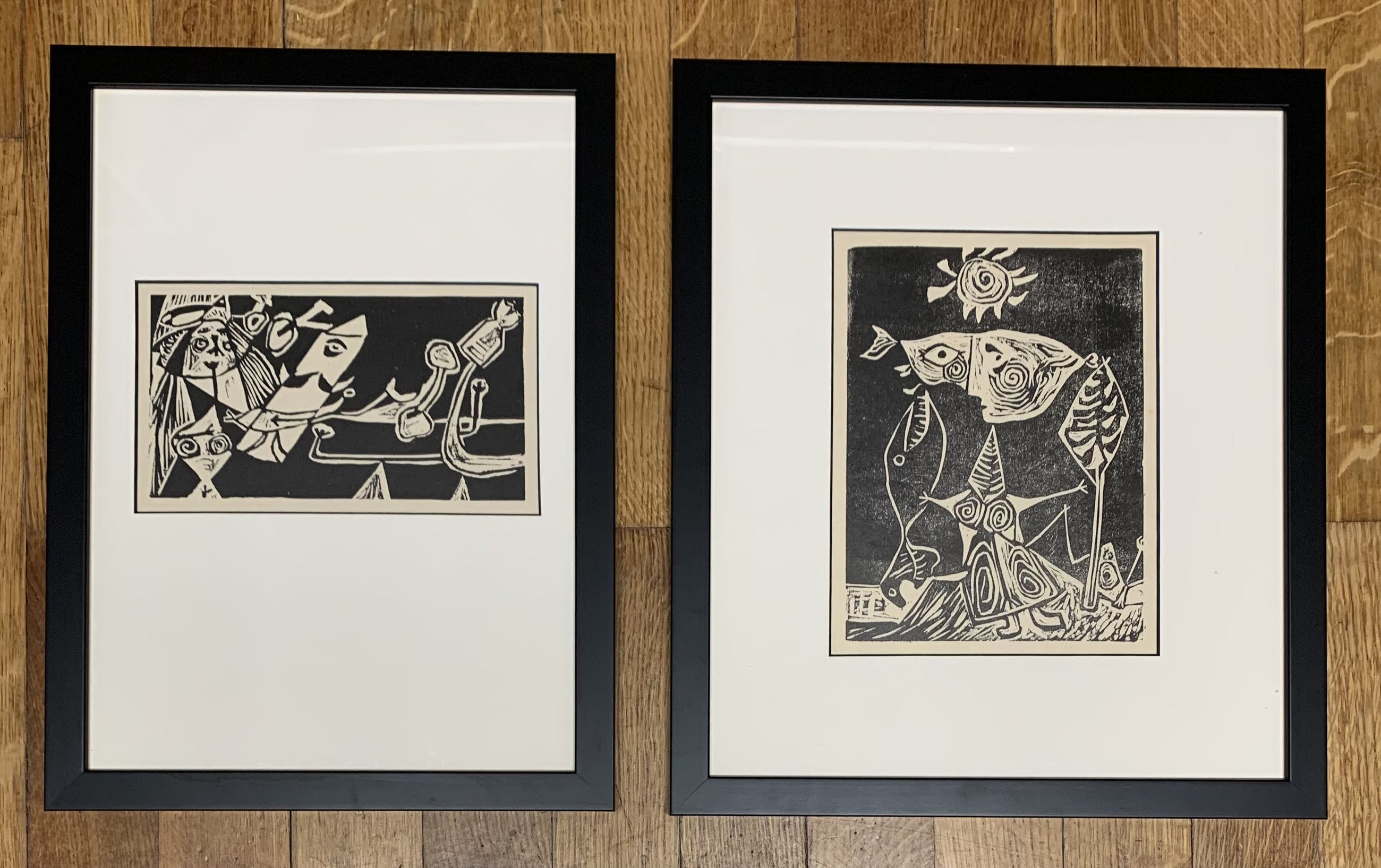 Lot van twee ingelijste linoleumsneden - stempel Atelier Corneille op de achterzijde - geleverd met een certificaat van echtheid, ondertekend door de echtgenote van de schilder.