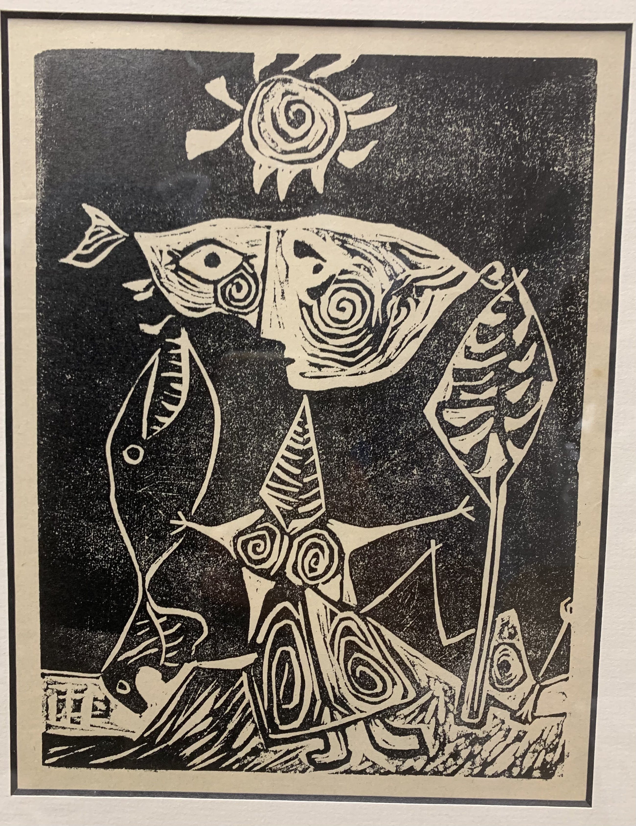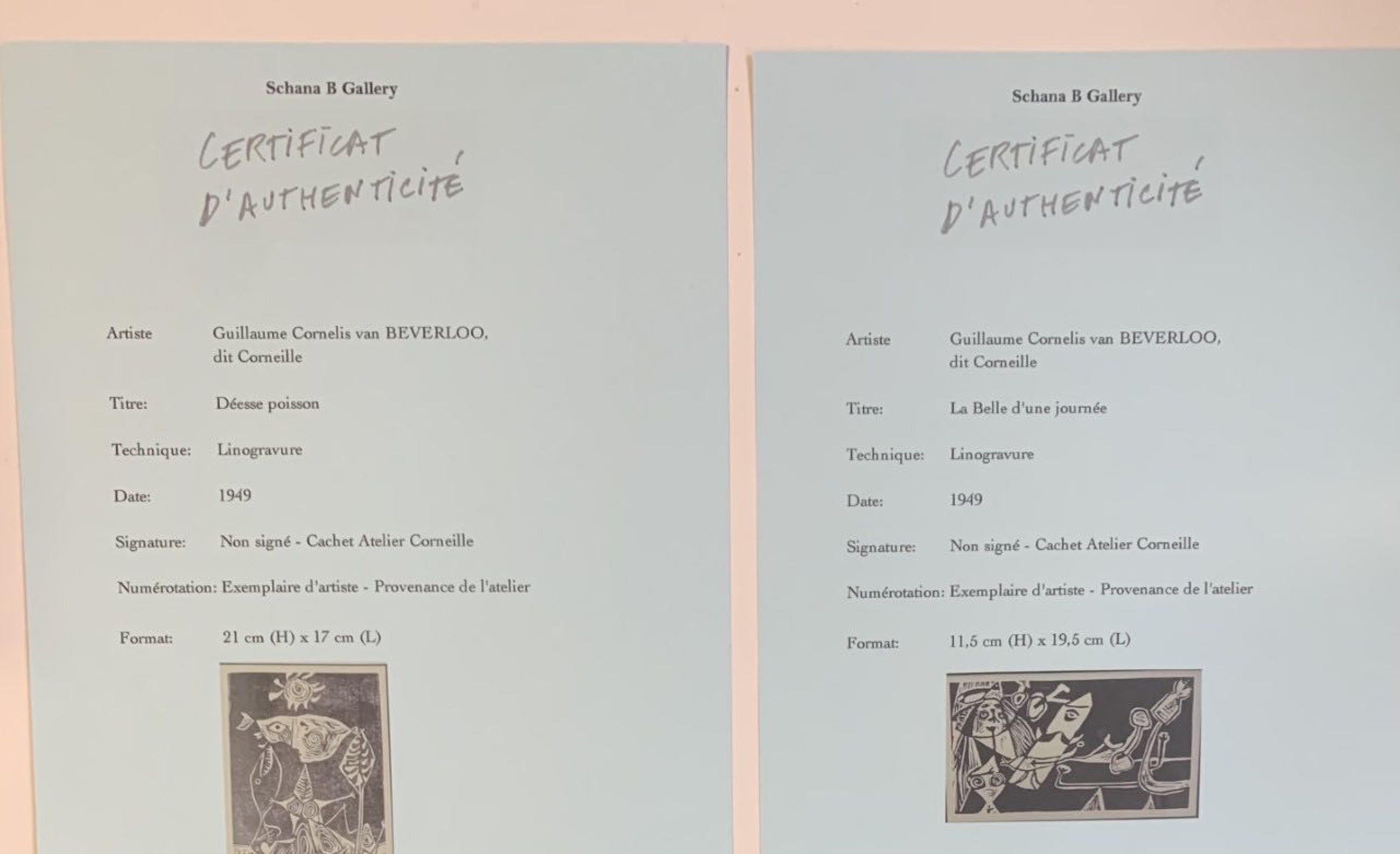 Zeldzaam - Twee linoleumsneden uit 1949 : Déesse Poisson + La Belle d'une journée - met certificaat