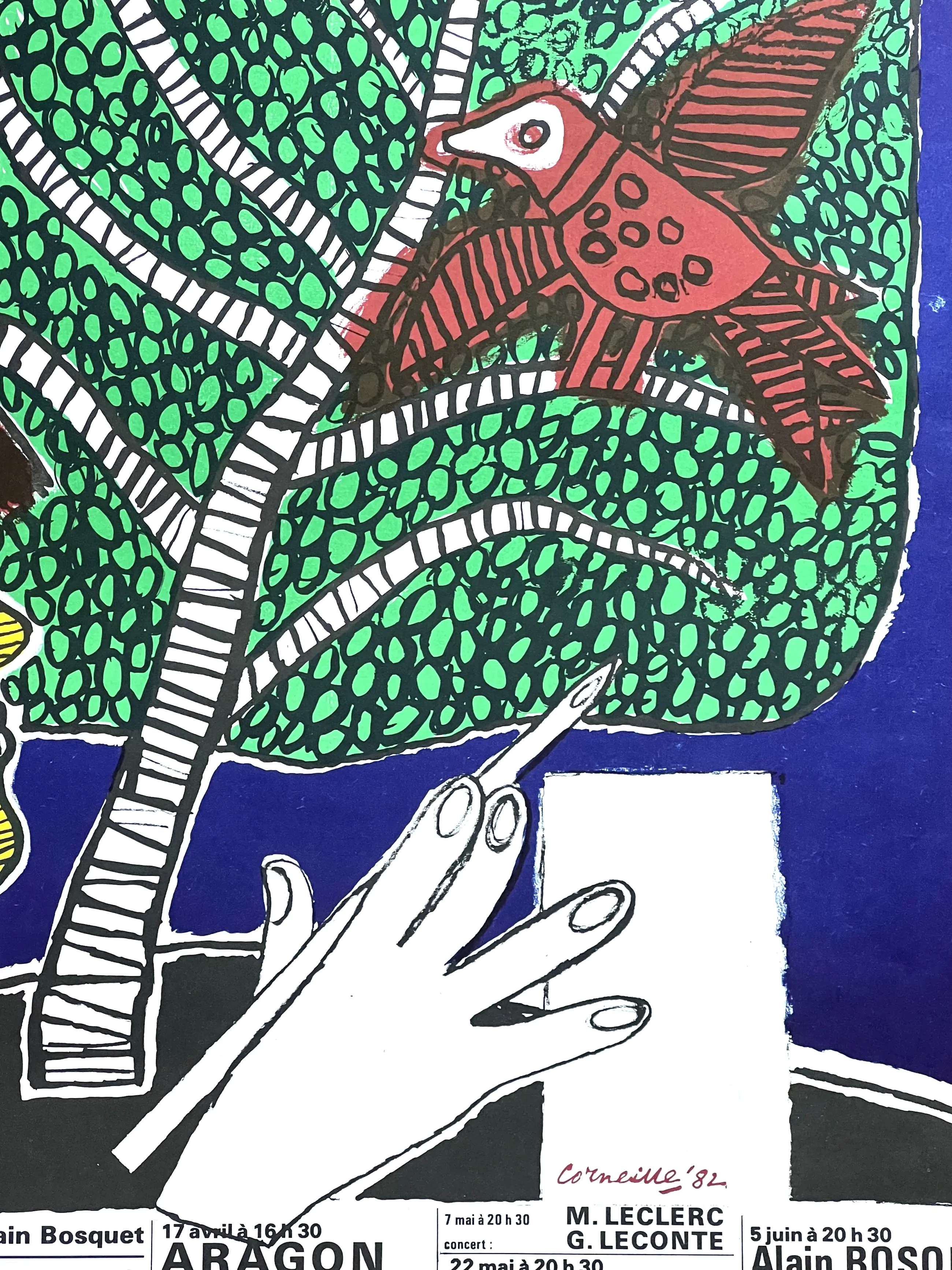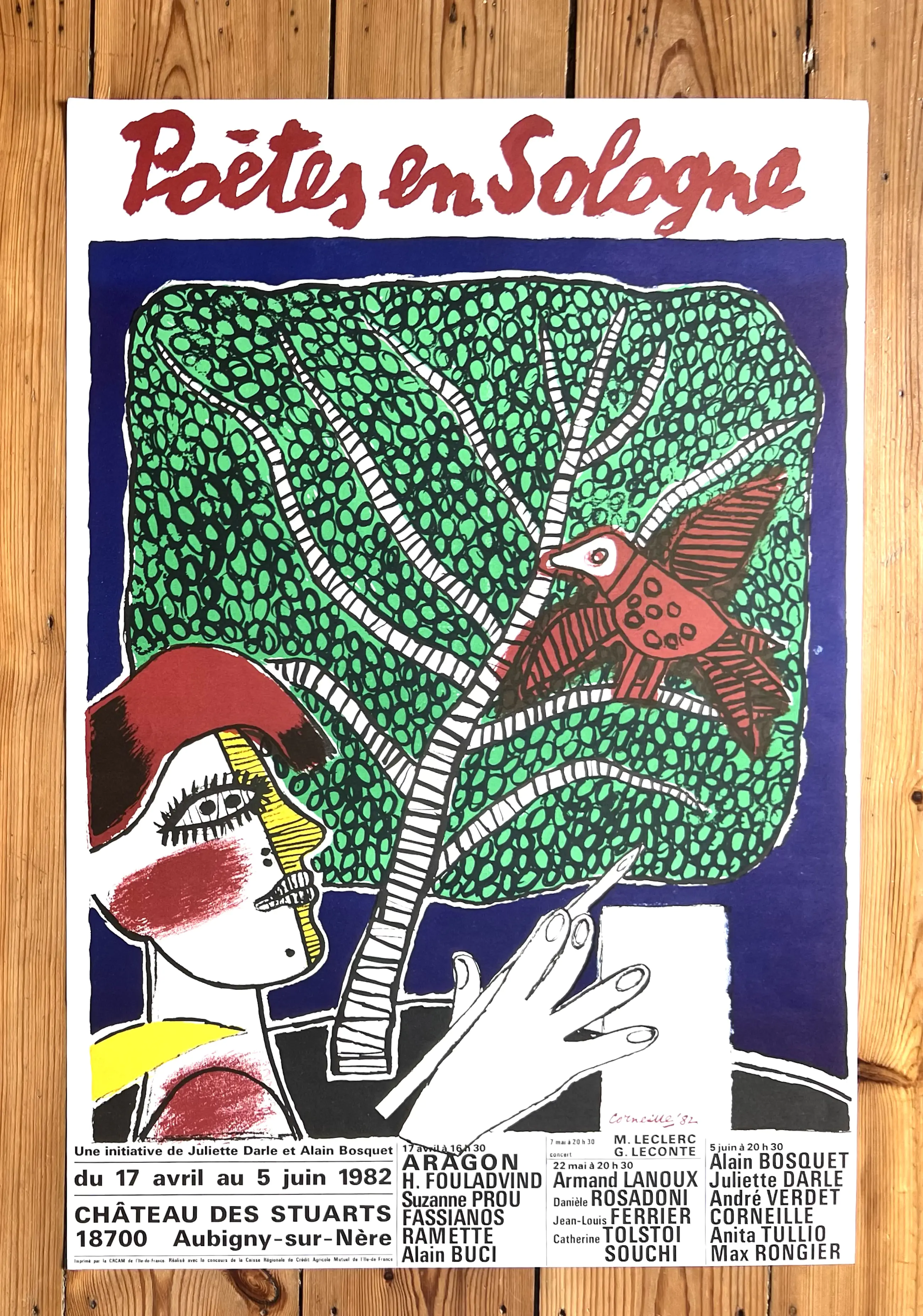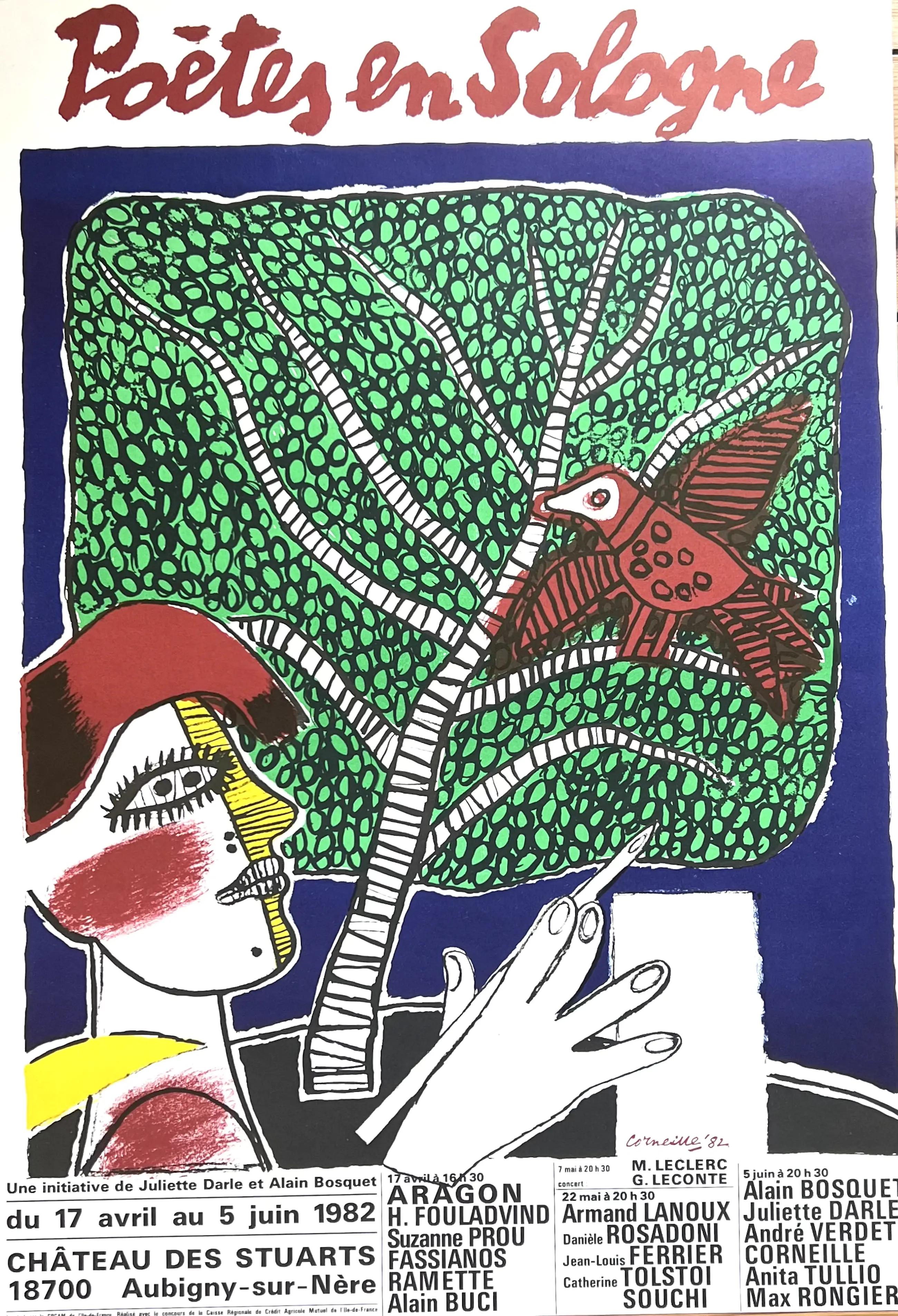 Schitterende poster met handtekening in de plaat. 1982 "Les Poètes en Sologne" - 63 x 43 cm