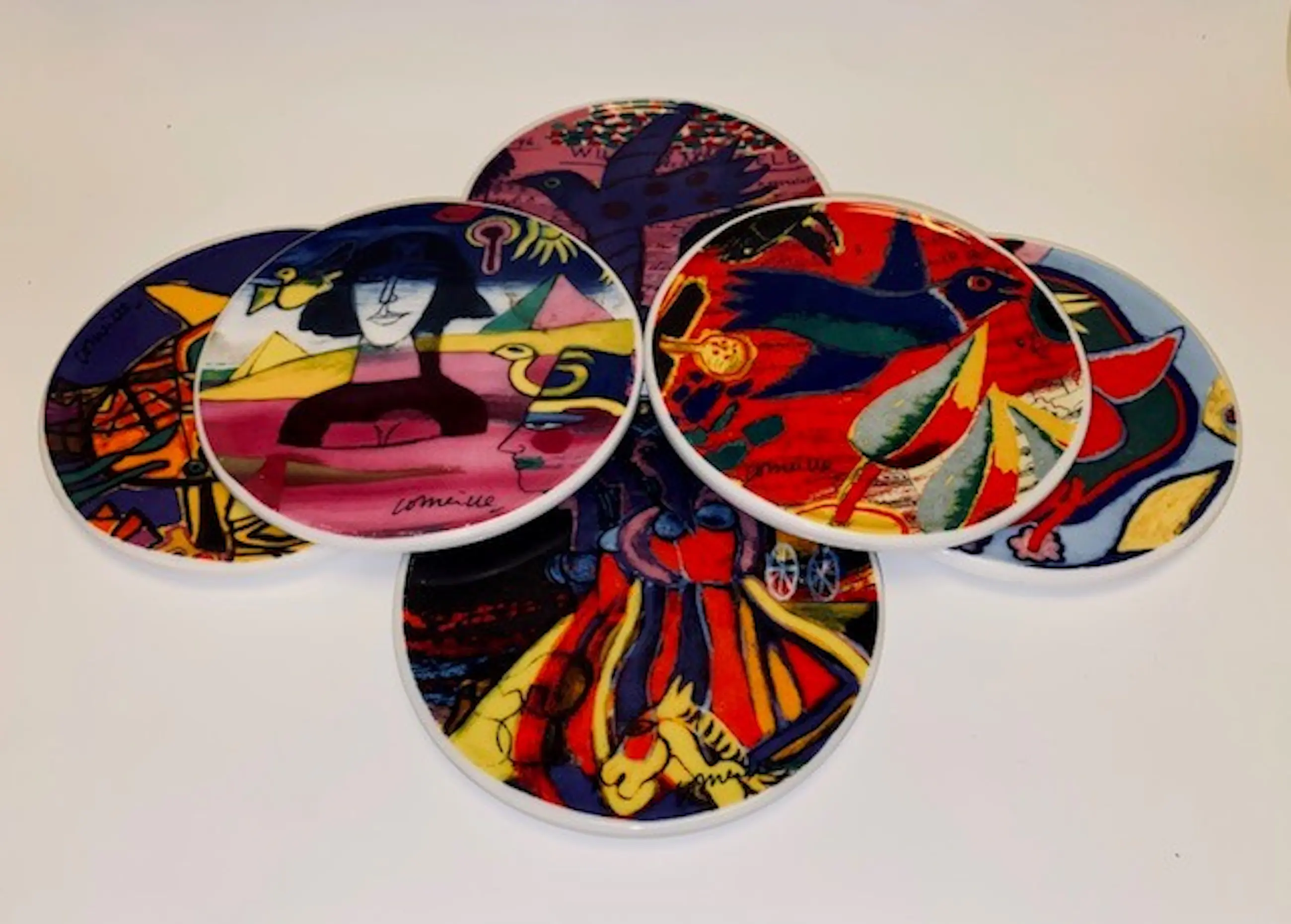 Corneille – Set van zes keramische onderzetters (gesigneerd)